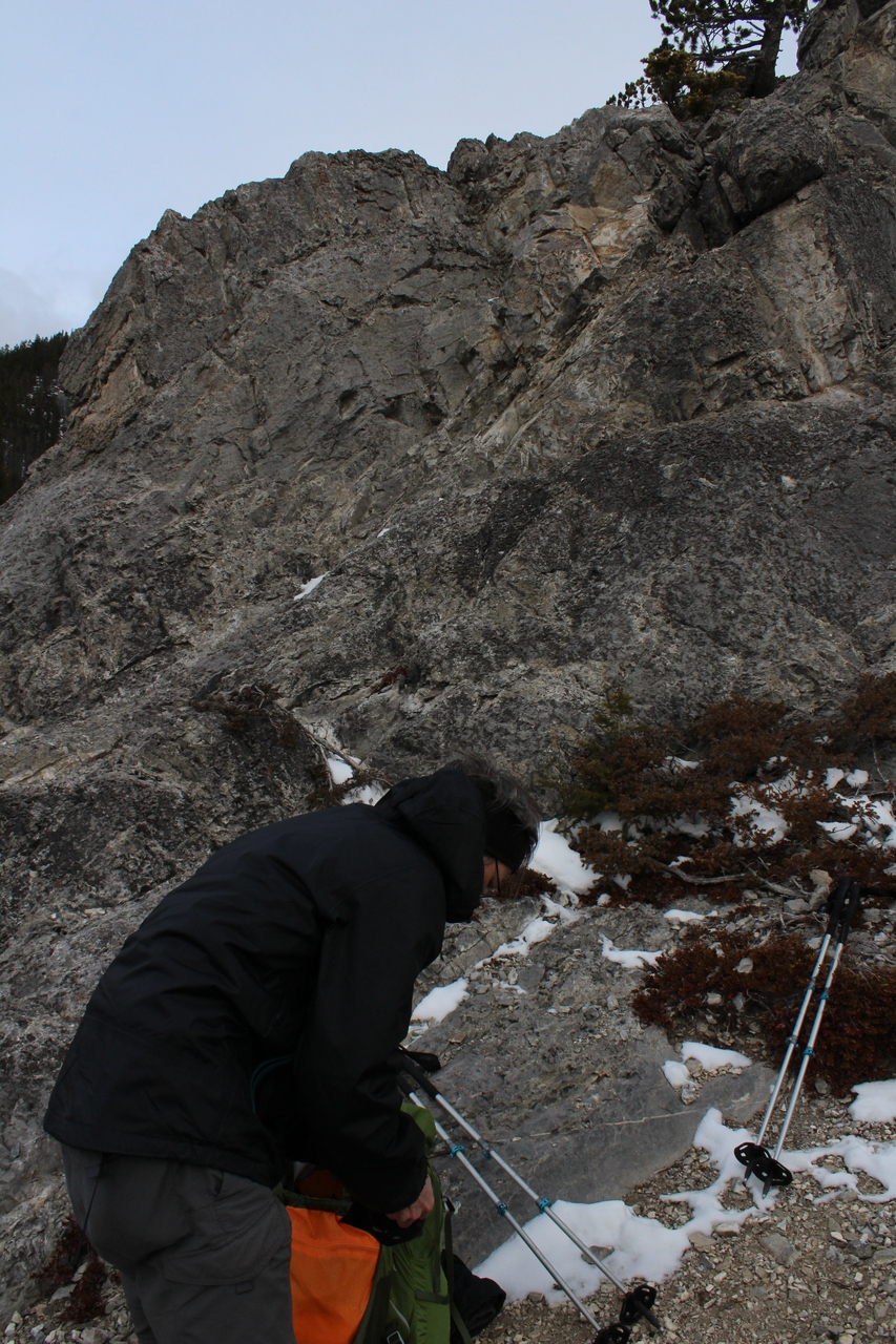 Gearing up (or more like gearing down), as we removed our microspikes for the hands-on scrambling ahead!
