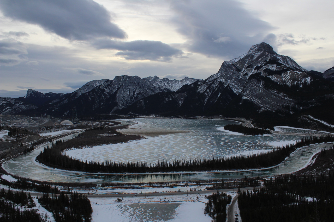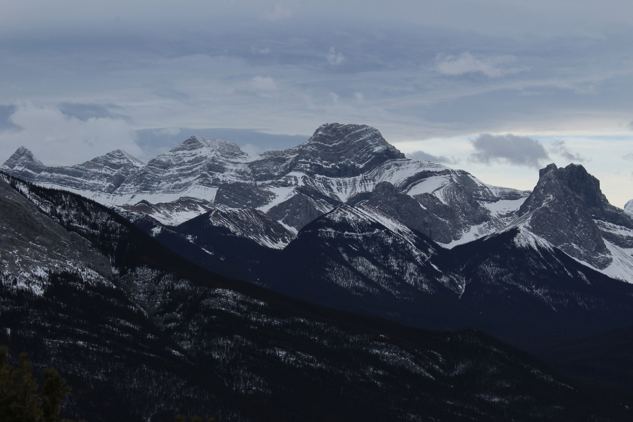 Another horseshoe loop, Heart Mountain to Grant MacEwan Peak sits to the other side of the highway, with Twin Towers rising beyond.
