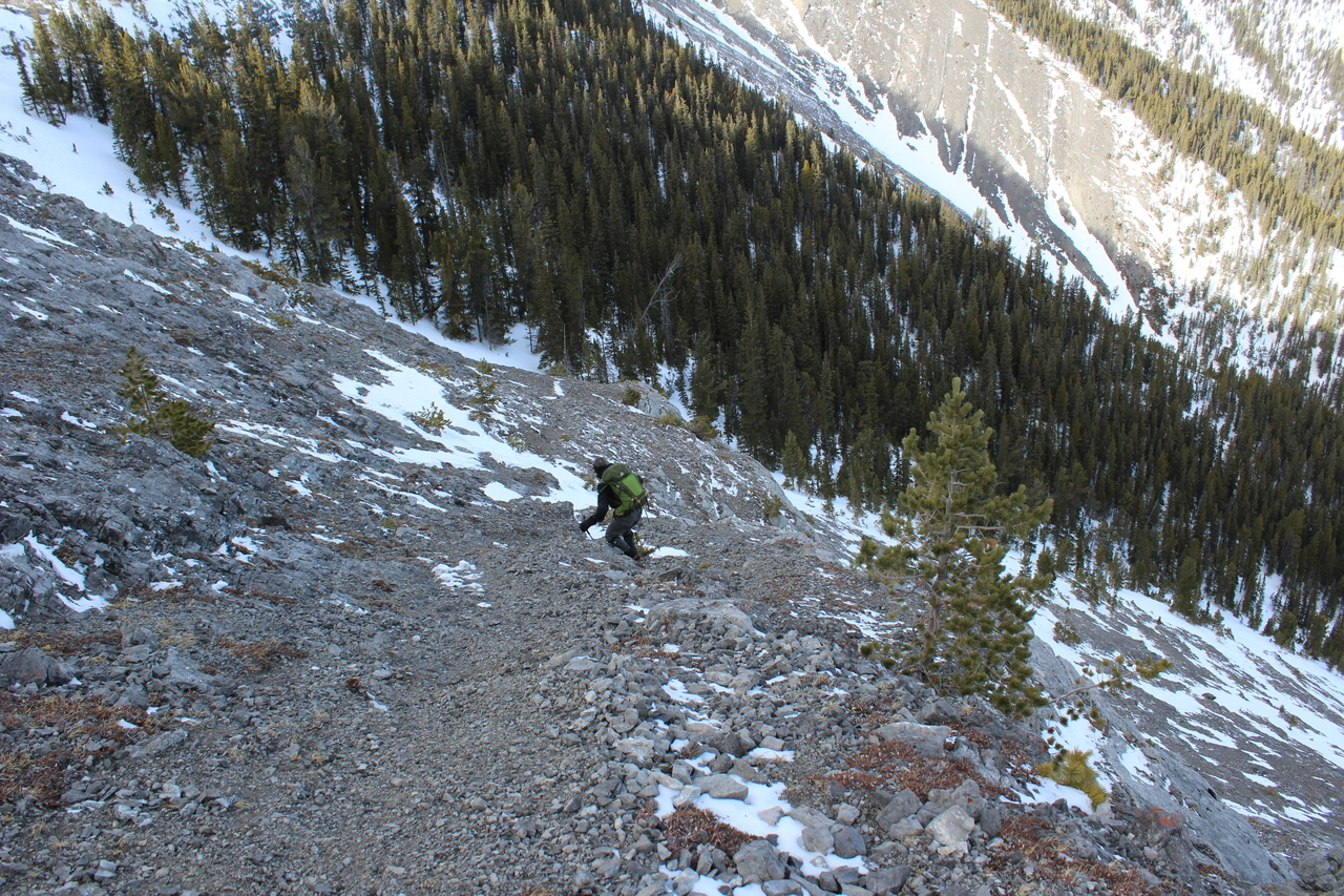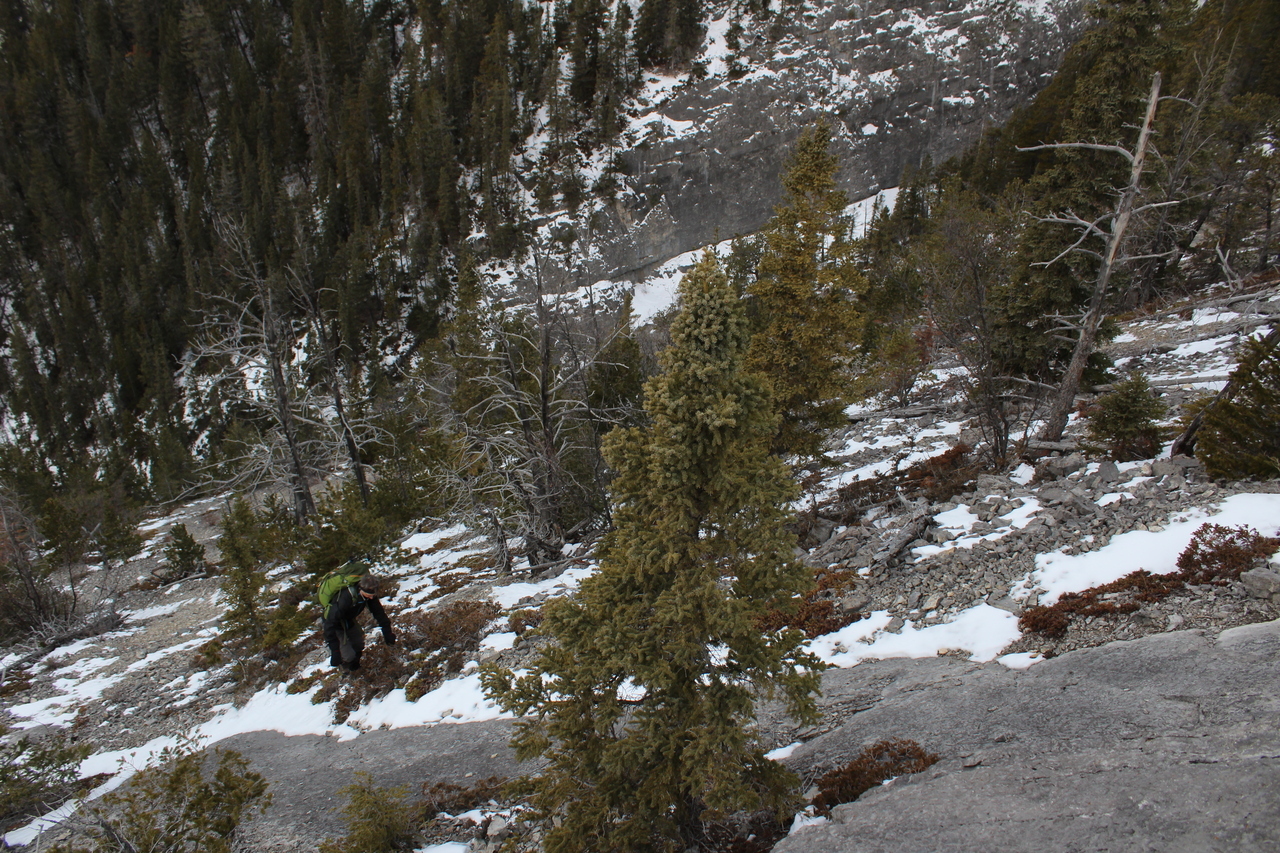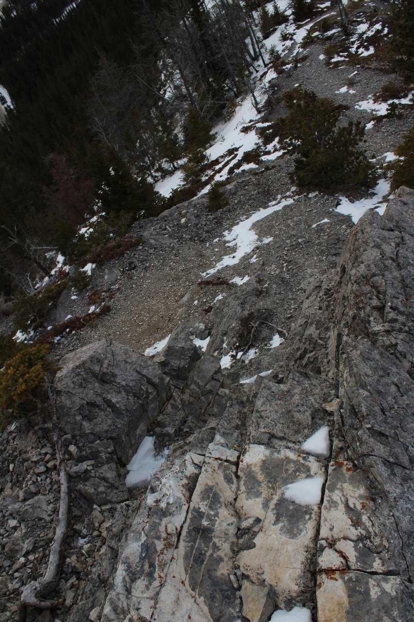 Luckily for us, we did! The cliff band soon peters out, and we were able to easily descend around it!