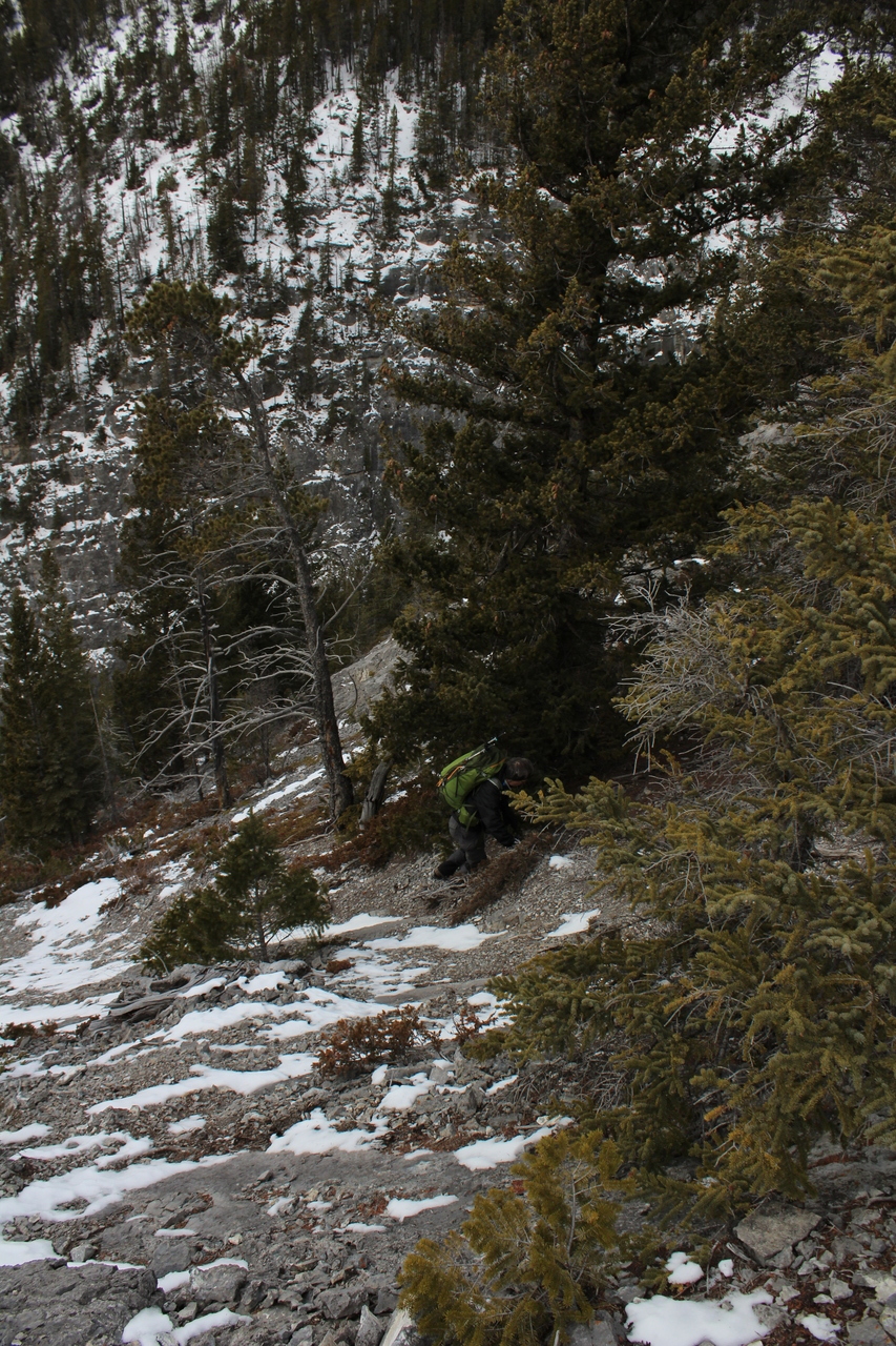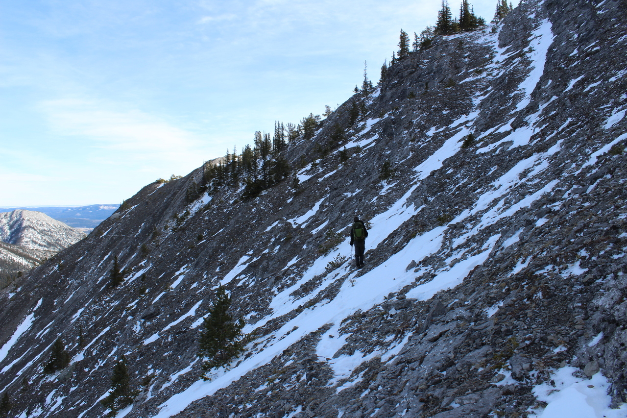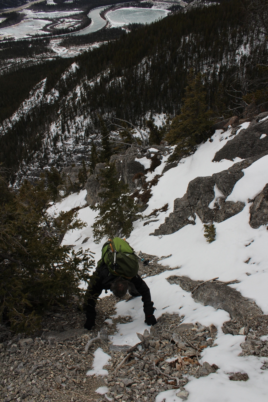 Luckily for us, we did! The cliff band soon peters out, and we were able to easily descend around it!