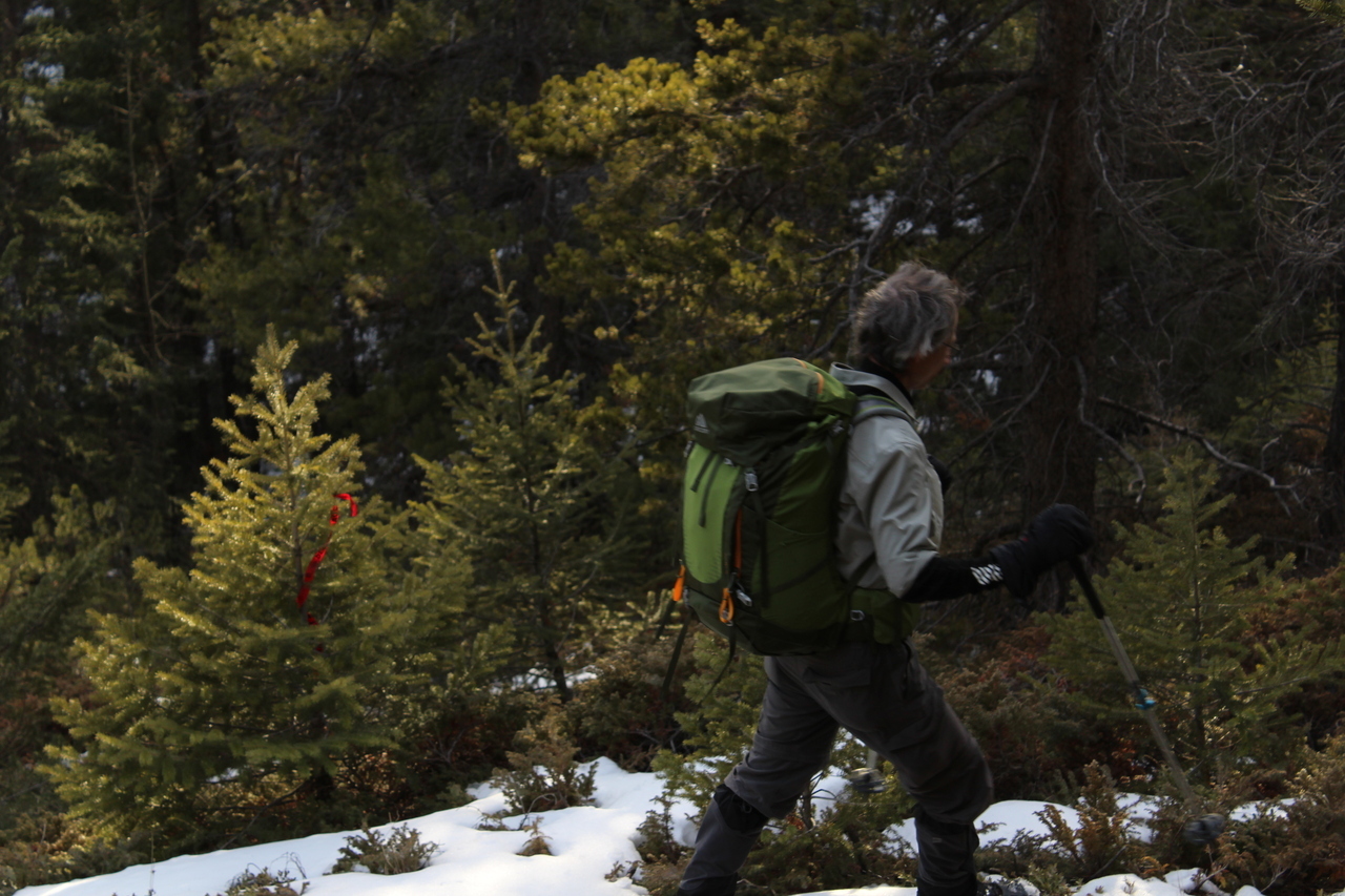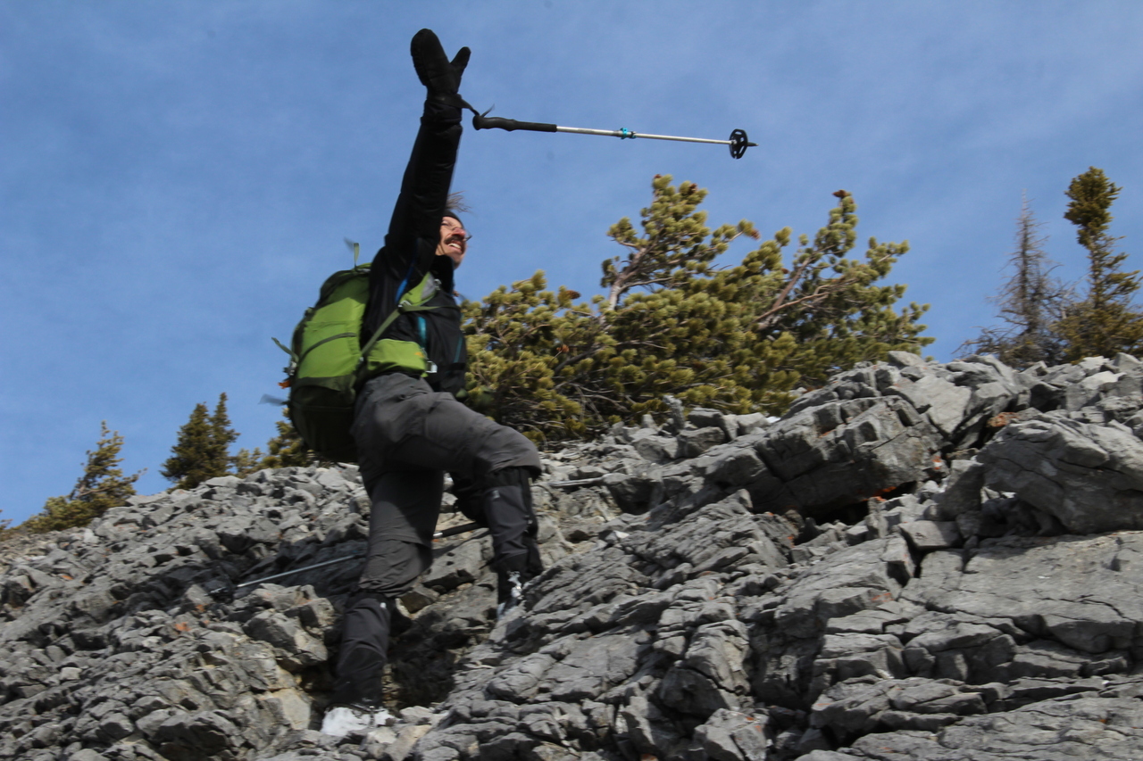 After a little sheltered nap, he slowly crawled out from under his tree (even though he really didn't want to), and we continued up the ridge. Stubborn patches of remaining snow and ice added some extra excitement along the way!