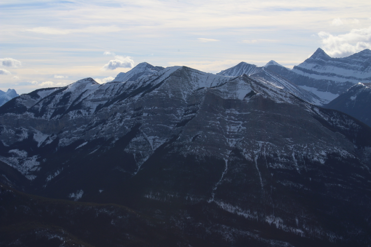 A window to Kananaskis! Mount Denny rises center, to the left of The Wedge, with Evan-Thomas East sitting more left!...Also check out the neat sky!