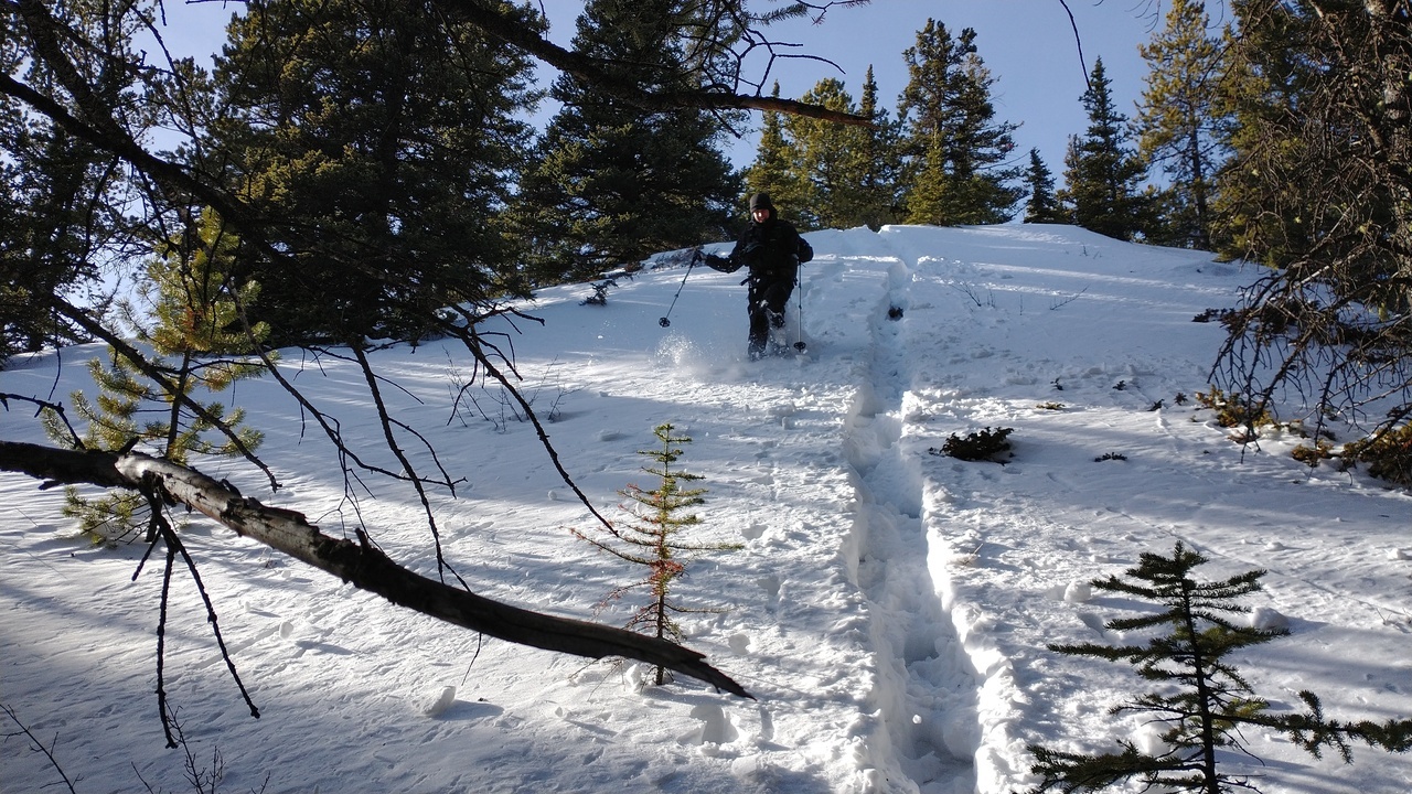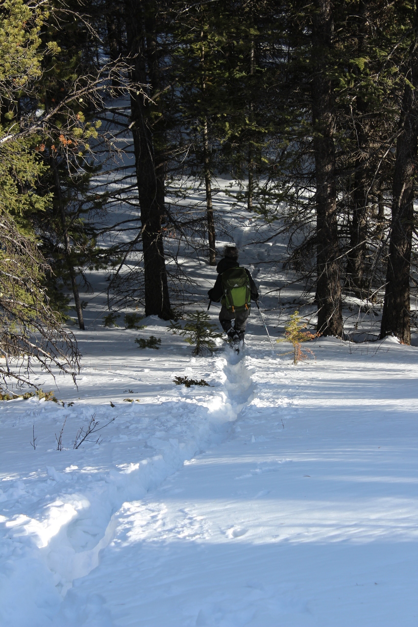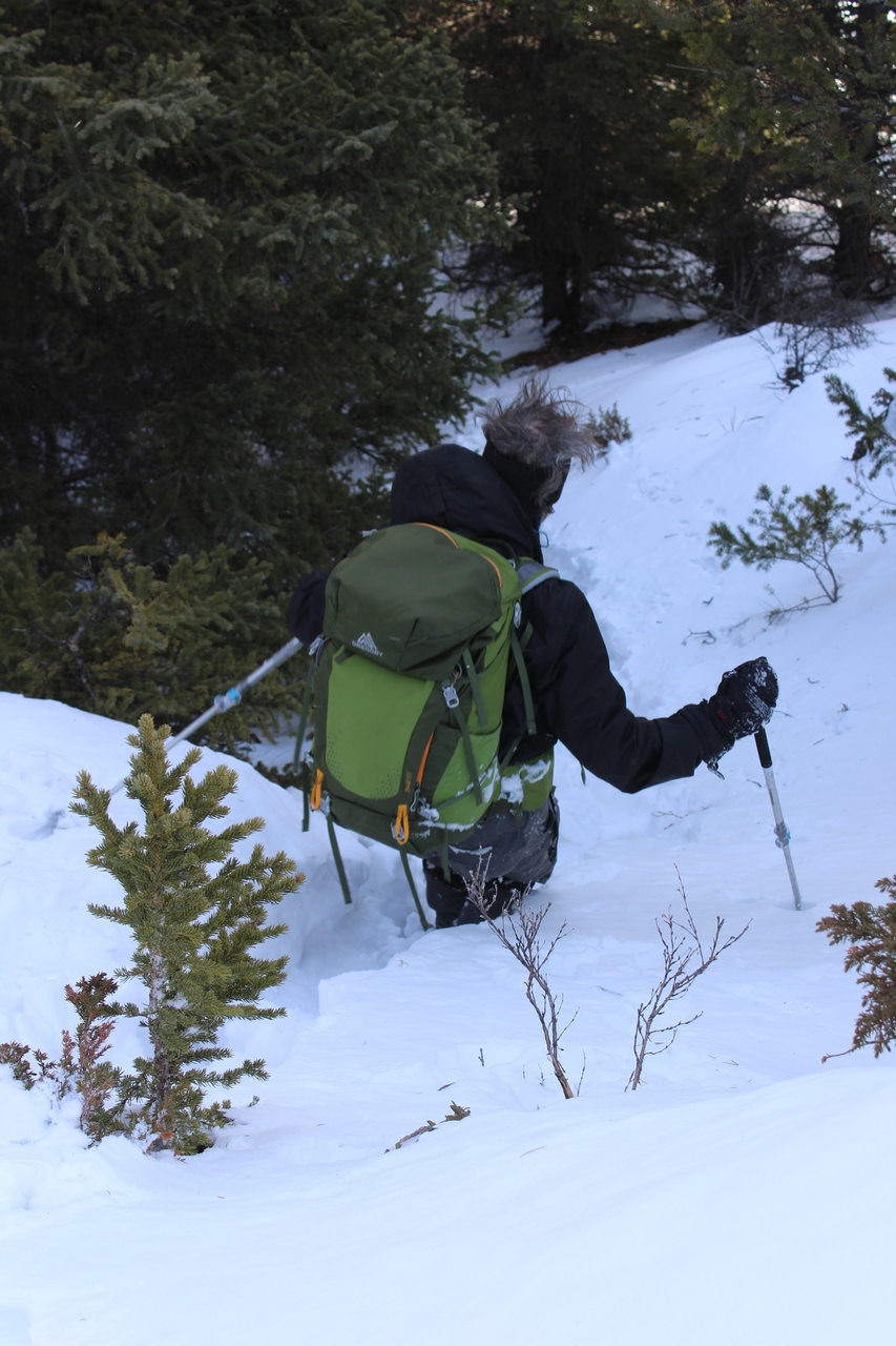 As we reached more sheltered areas, we found ourselves in some deep snow! Luckily some previous trails did most of the work for us...
