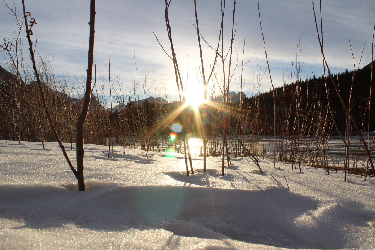 I had some fun capturing the bright evening sun through the bare branches on the edge of the pond :)