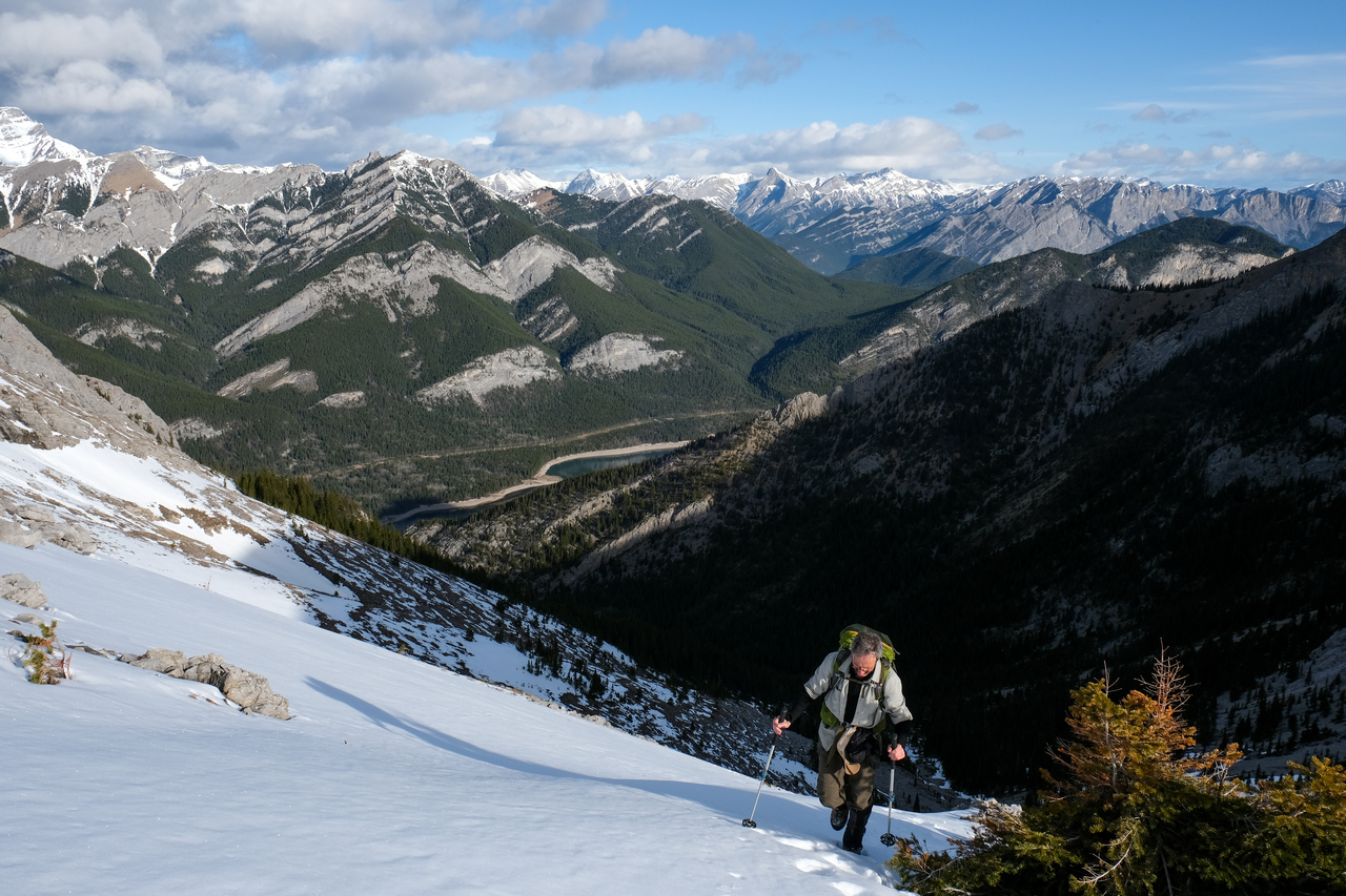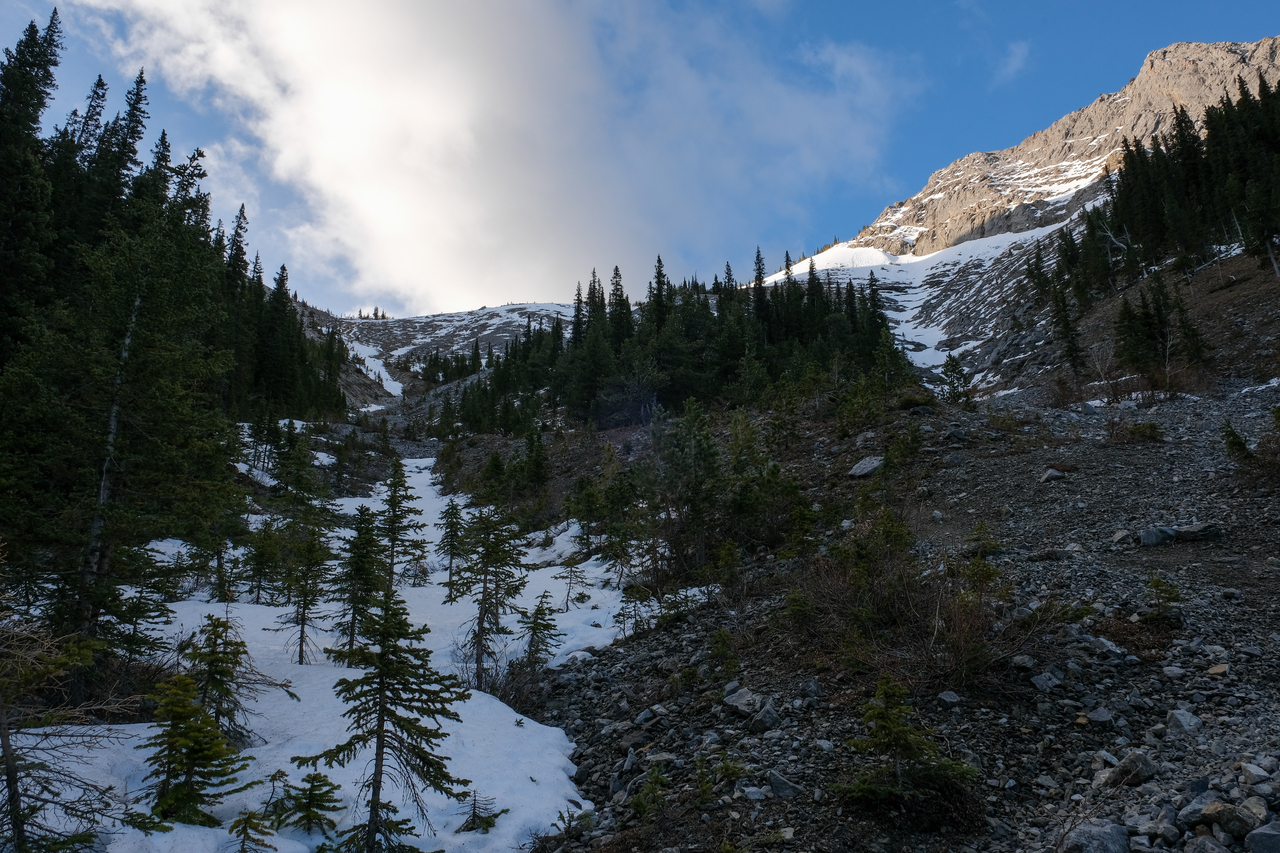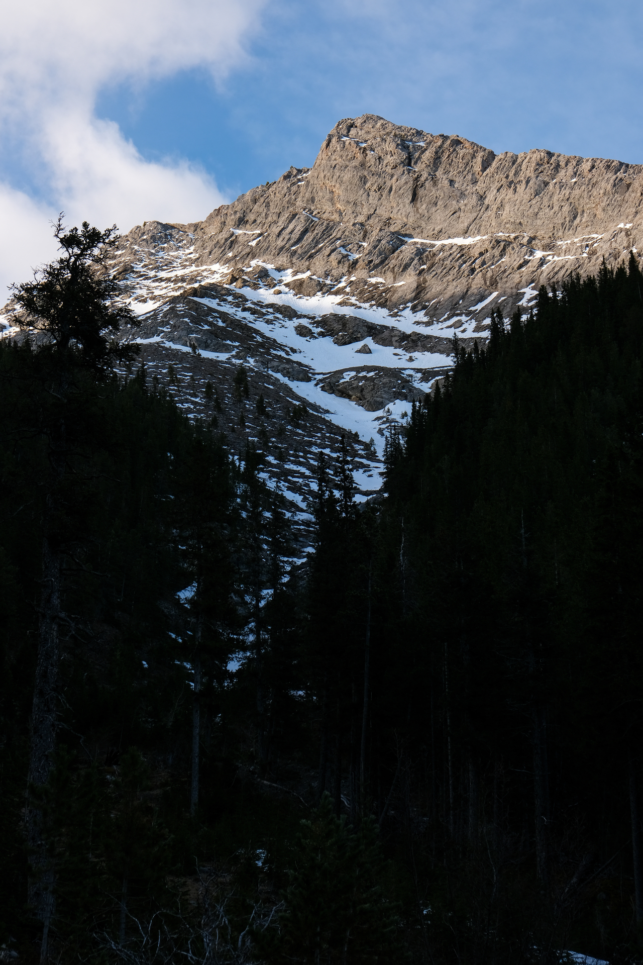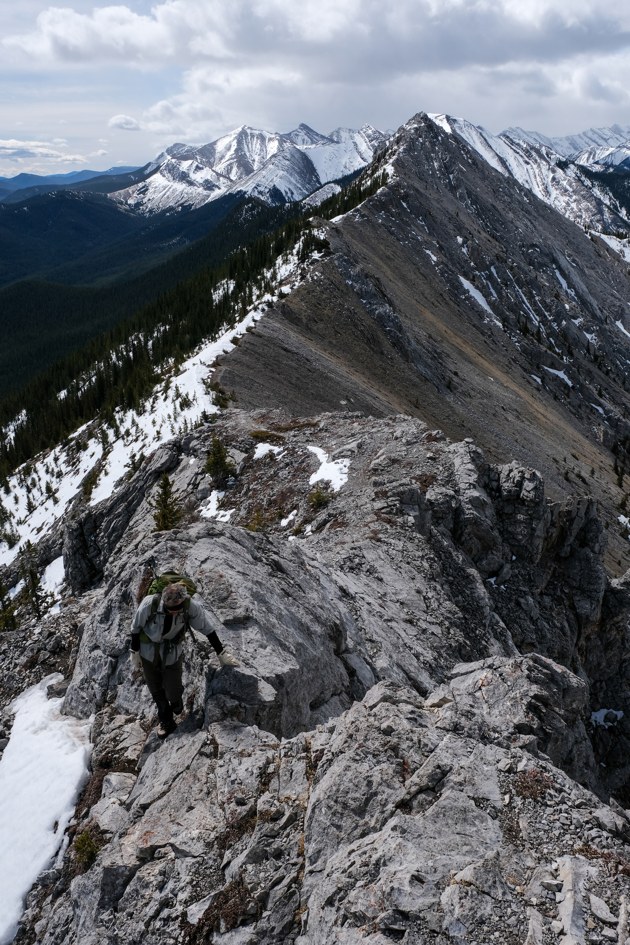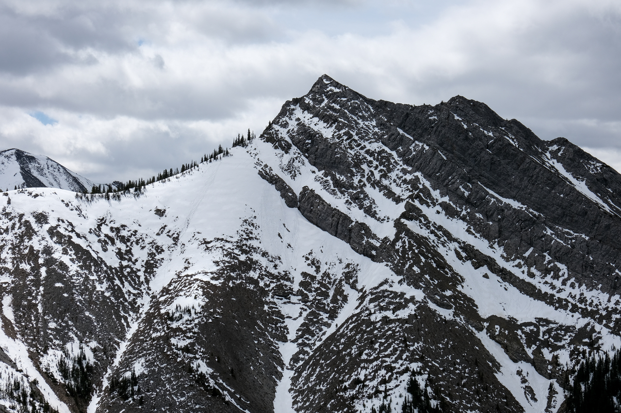 Mount Baldy has been on my radar for quite some time. Now that may sound strange, given such a small, insignificant peak, but for some reason I was drawn to it. It could've been that a traverse allows you to hit all three peaks (I have a bit of a soft spot for multiple peak outings...), or maybe it was that it's the first "real" mountain seen when driving into Kananaskis, or maybe, just maybe, it was that difficult crux, sparking my curiosity, drawing me in to explore. Even with Baldy being high on my list, I could never find the right time to climb this mountain! It was always either too deep into summer, when I had other, loftier peaks to explore, or there was just too much snow to risk having to turn around. The wait finally came to an end, after a lengthy six peak Porcupine Loop the previous day (ironically, we were turned away from what would've been number seven due to snow...). Being in a traversing mood, it was time to see what Baldy was all about!
