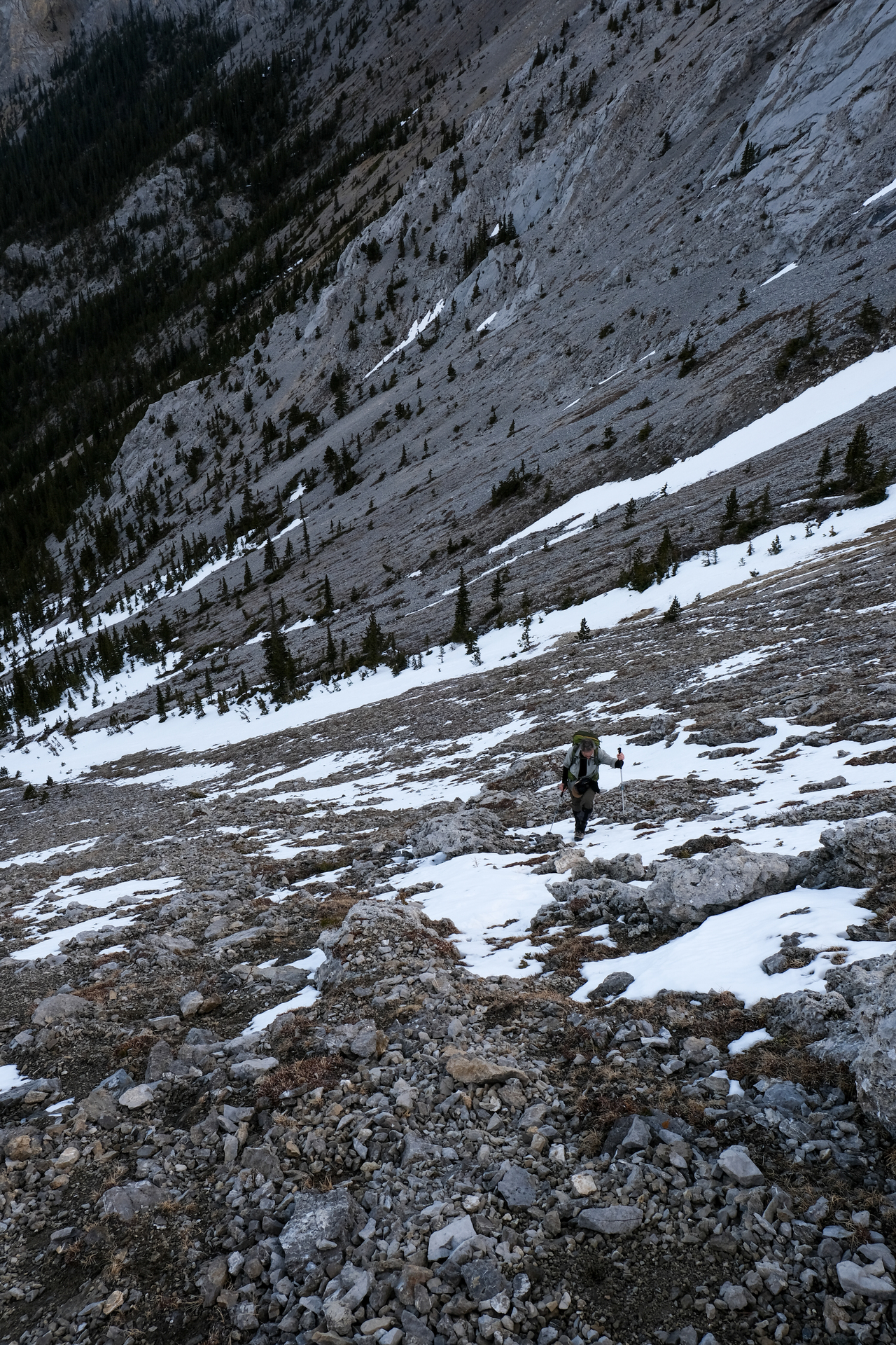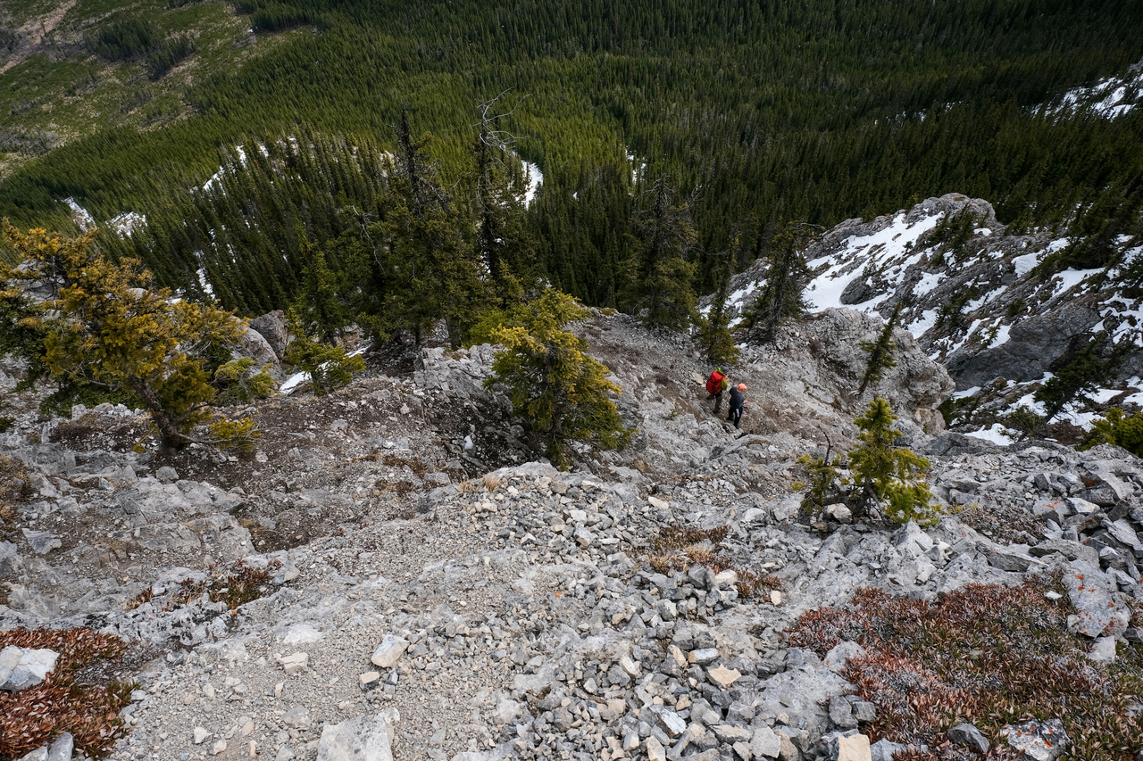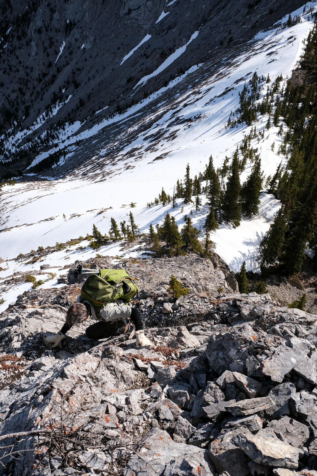 Done with the scrambling. Now just a steep trail down to the highway. I kinda just ran down the final stretch, and completely forgot about taking any pictures...There are basically just a variety of scree/dirt trails that all eventually join lower down and easily lead back to the highway, where we started our day. Not much else to say. But what I do have to say, is that the Baldy Traverse definitely lived up to my expectations! Our winter adventures have been an absolute hoot, but being the activity that originally developed my love for the mountains, scrambling will always hold a special place in my heart. I thoroughly enjoyed the hands-on sections on either end of this traverse and am absolutely stoked for scrambling season! Photo credit: Dad