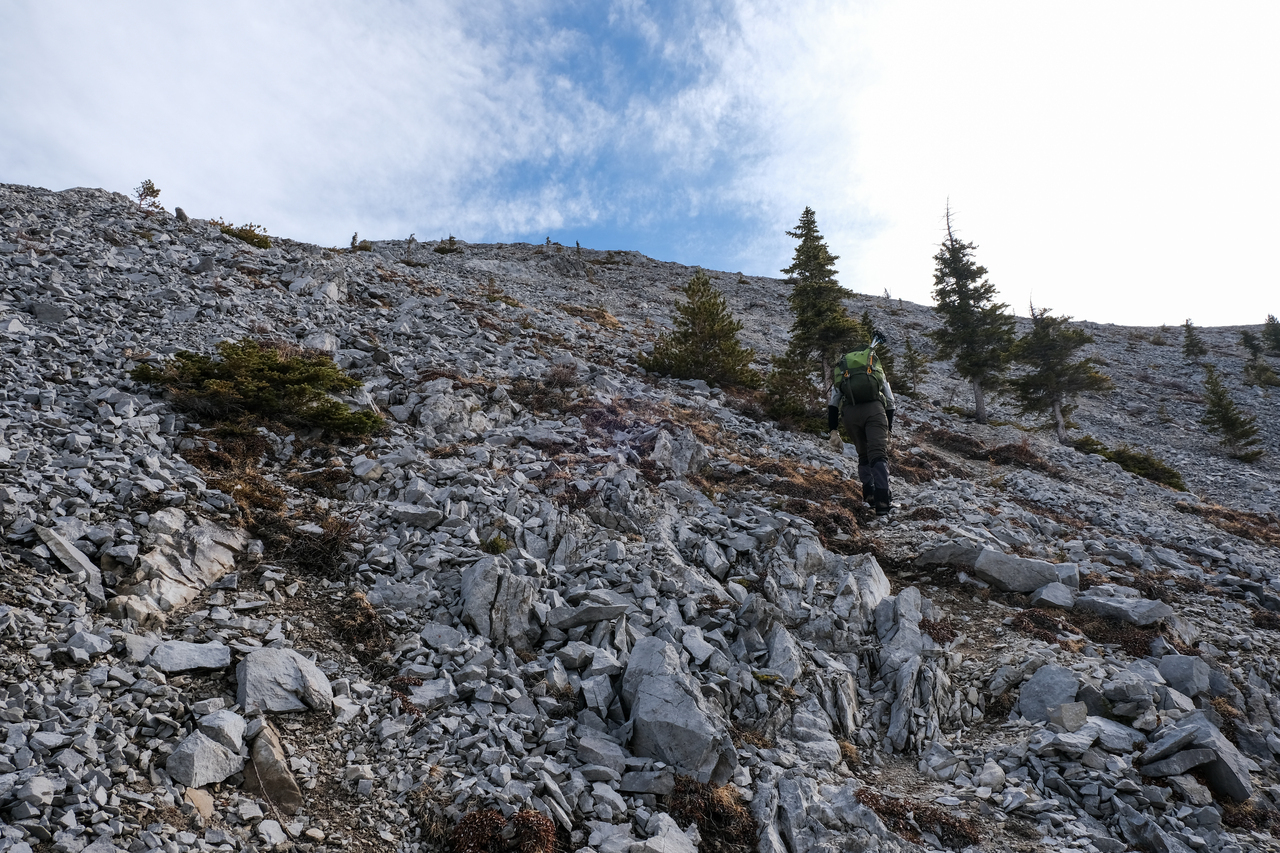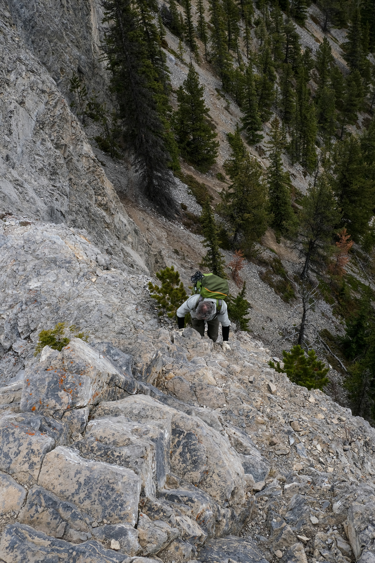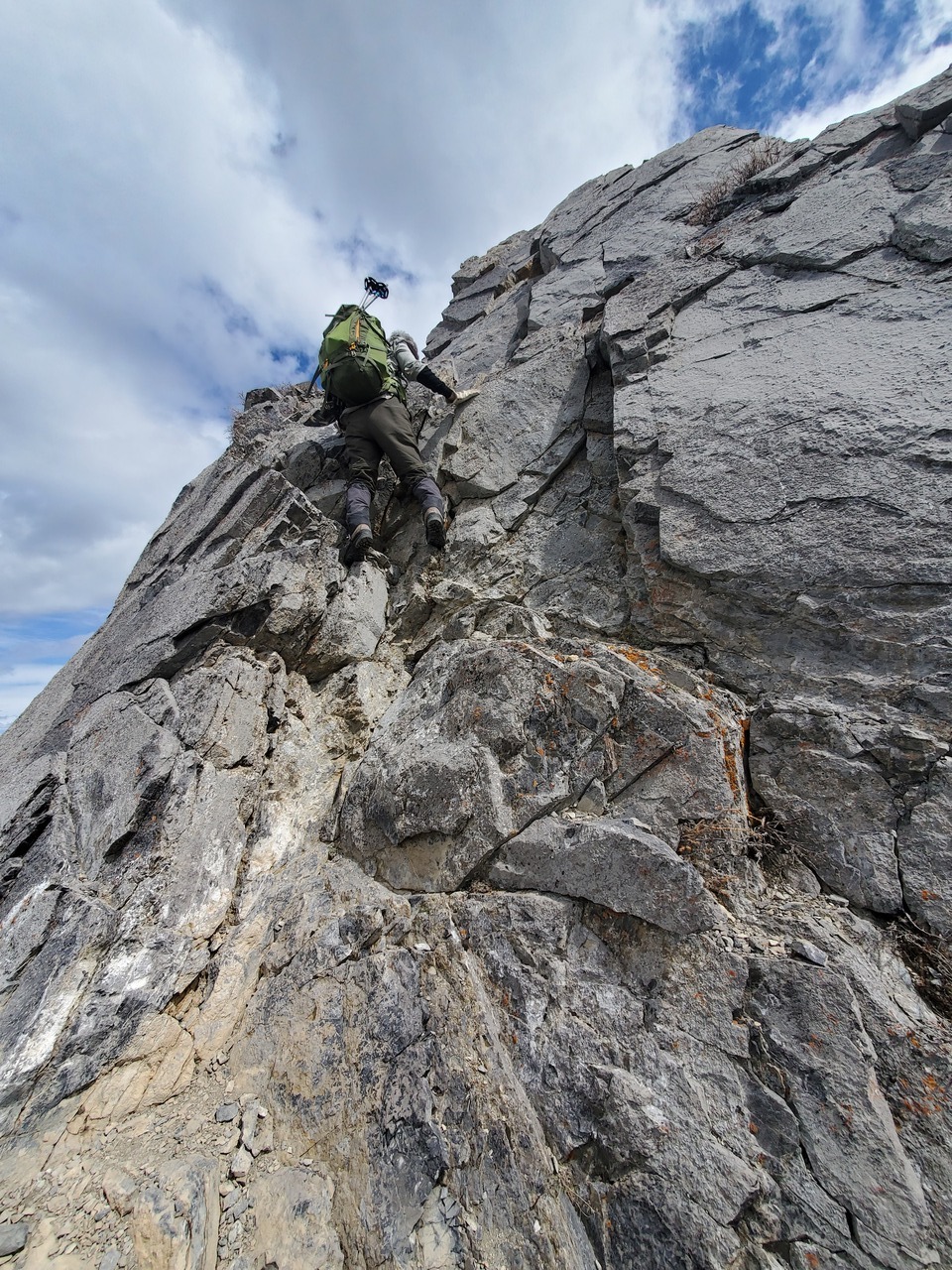 Done with the scrambling. Now just a steep trail down to the highway. I kinda just ran down the final stretch, and completely forgot about taking any pictures...There are basically just a variety of scree/dirt trails that all eventually join lower down and easily lead back to the highway, where we started our day. Not much else to say. But what I do have to say, is that the Baldy Traverse definitely lived up to my expectations! Our winter adventures have been an absolute hoot, but being the activity that originally developed my love for the mountains, scrambling will always hold a special place in my heart. I thoroughly enjoyed the hands-on sections on either end of this traverse and am absolutely stoked for scrambling season! Photo credit: Dad