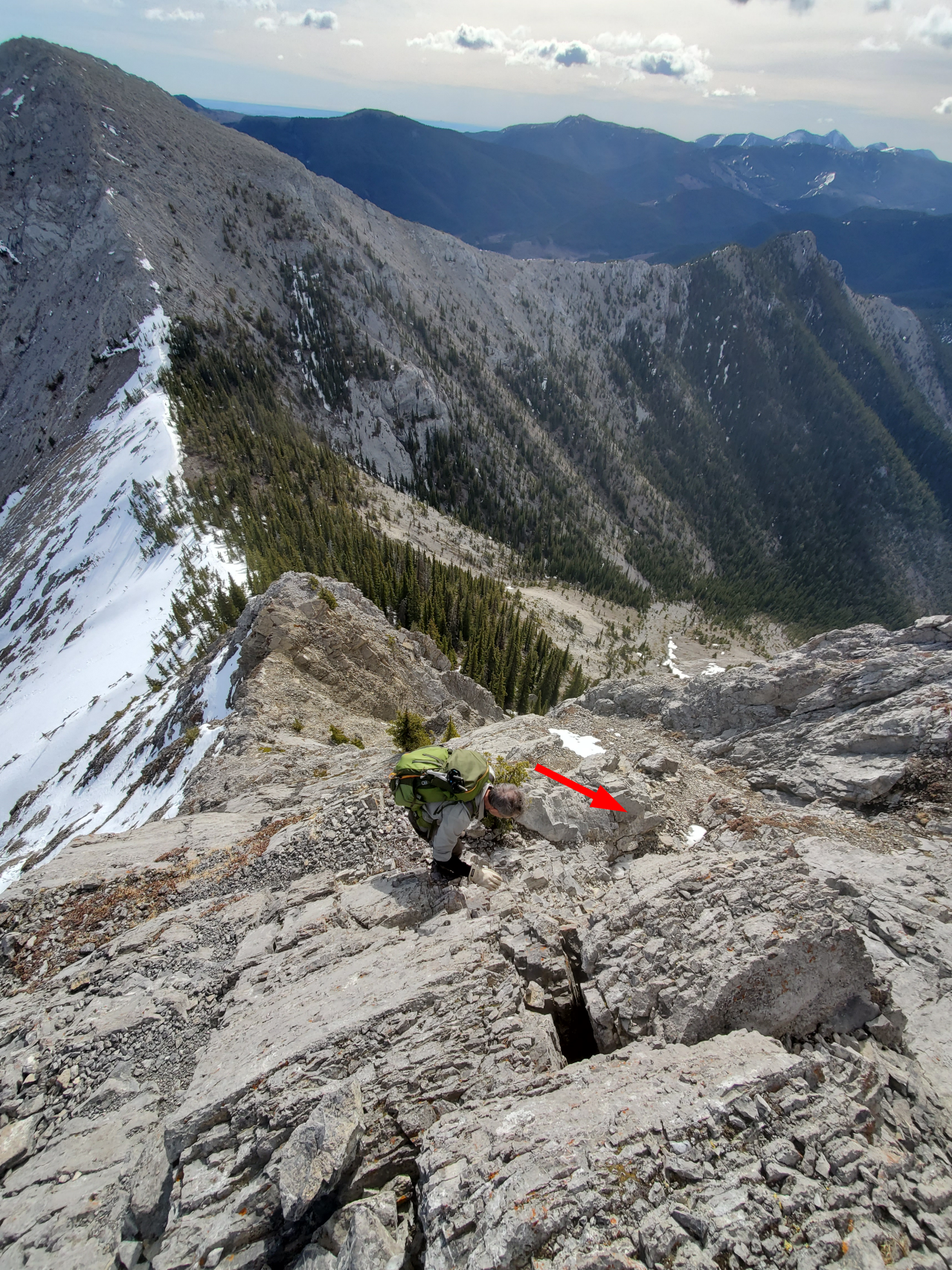 Continuing down the ridge towards the final (and most difficult) peak of the traverse! Photo credit: Dad