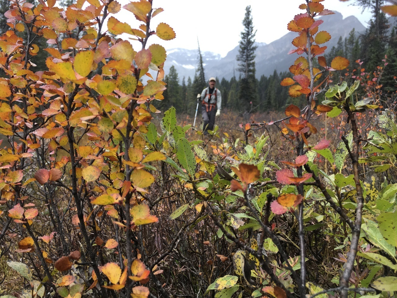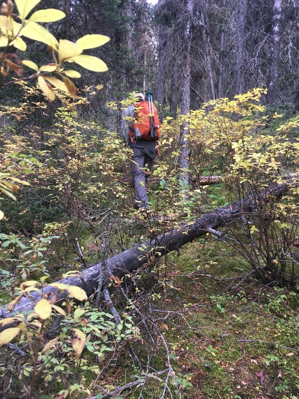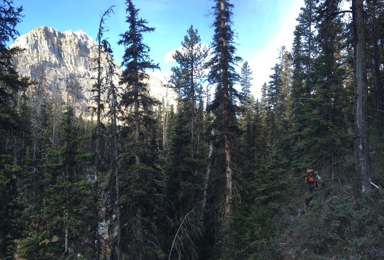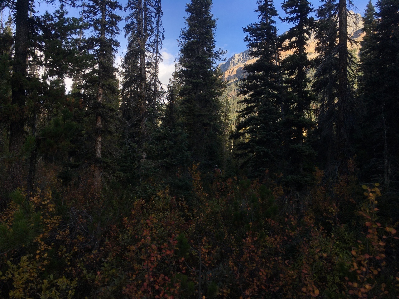 Deep in the bush! We yelled out frequently, a little paranoid from all the bear signs we saw on Vermilion Peak and Mount Haffner the day before...