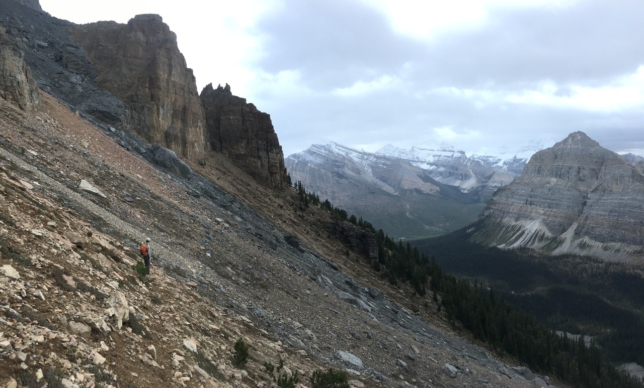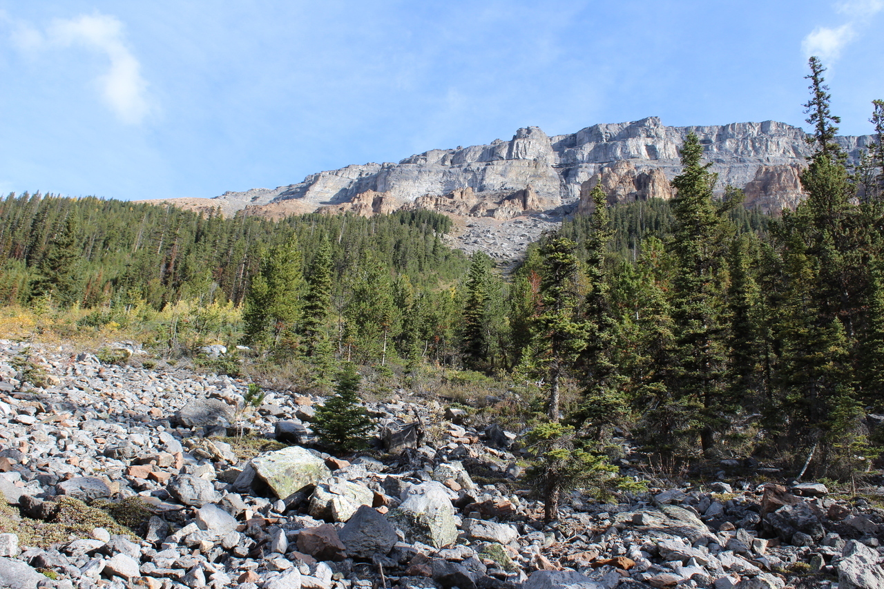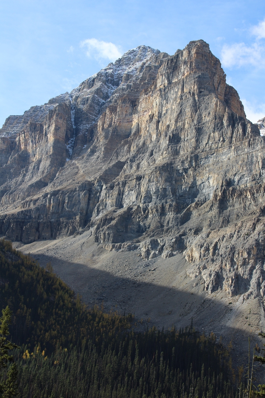 Larches clinging to Boom's sheer south face! Is physics even relevant in the mountains!?...Also, how do they even get nutrients?? Trees are hard-core!