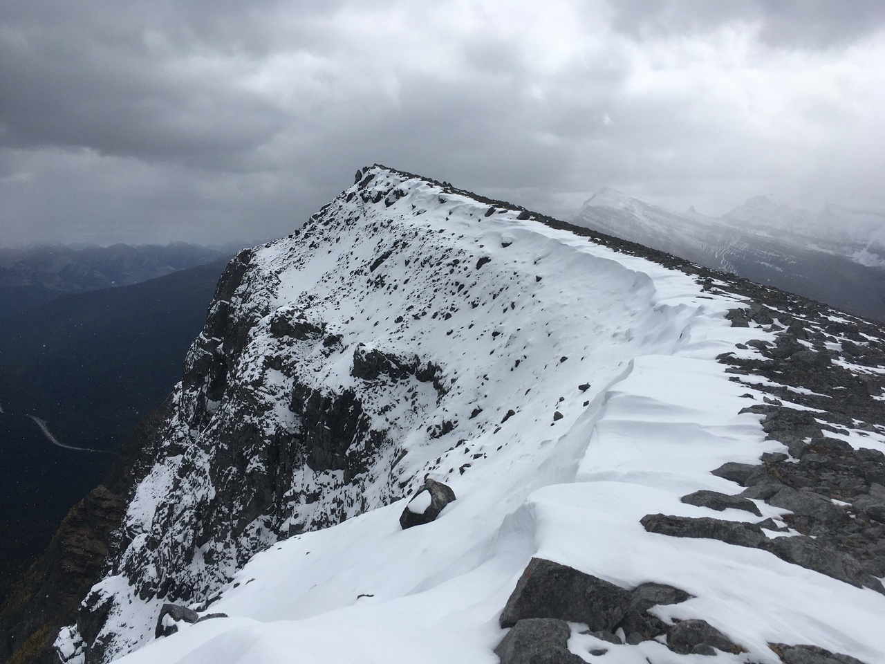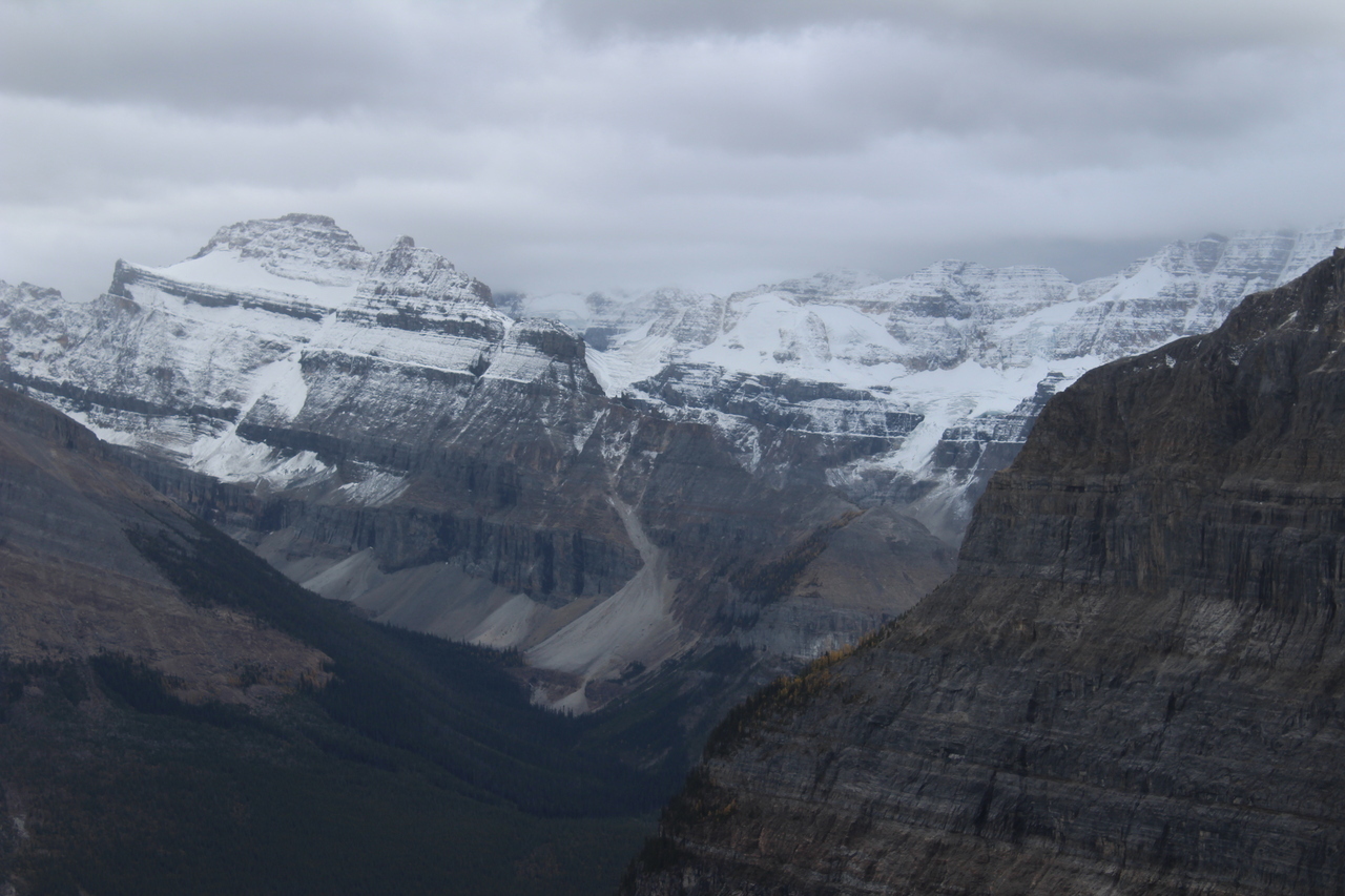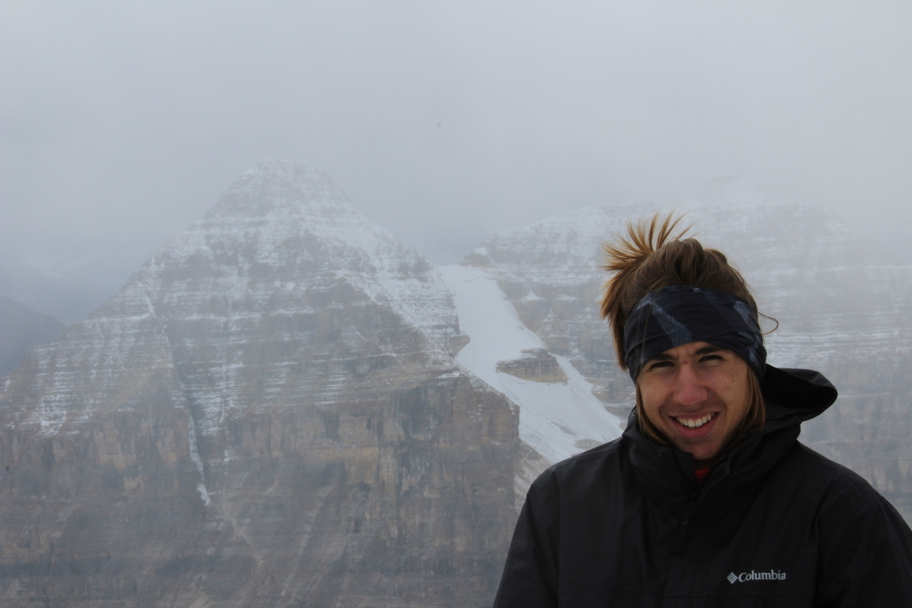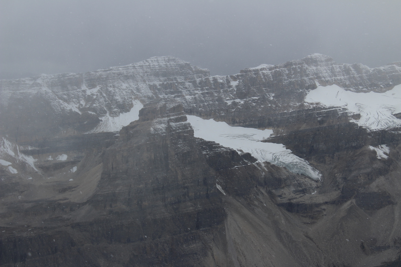 Far far below, the log boom for which Boom Lake is named! I tried asking the weather to chill, but I think it interpreted "chill" in the literal sense...Wait, stop snowing! That's not what I meant!!