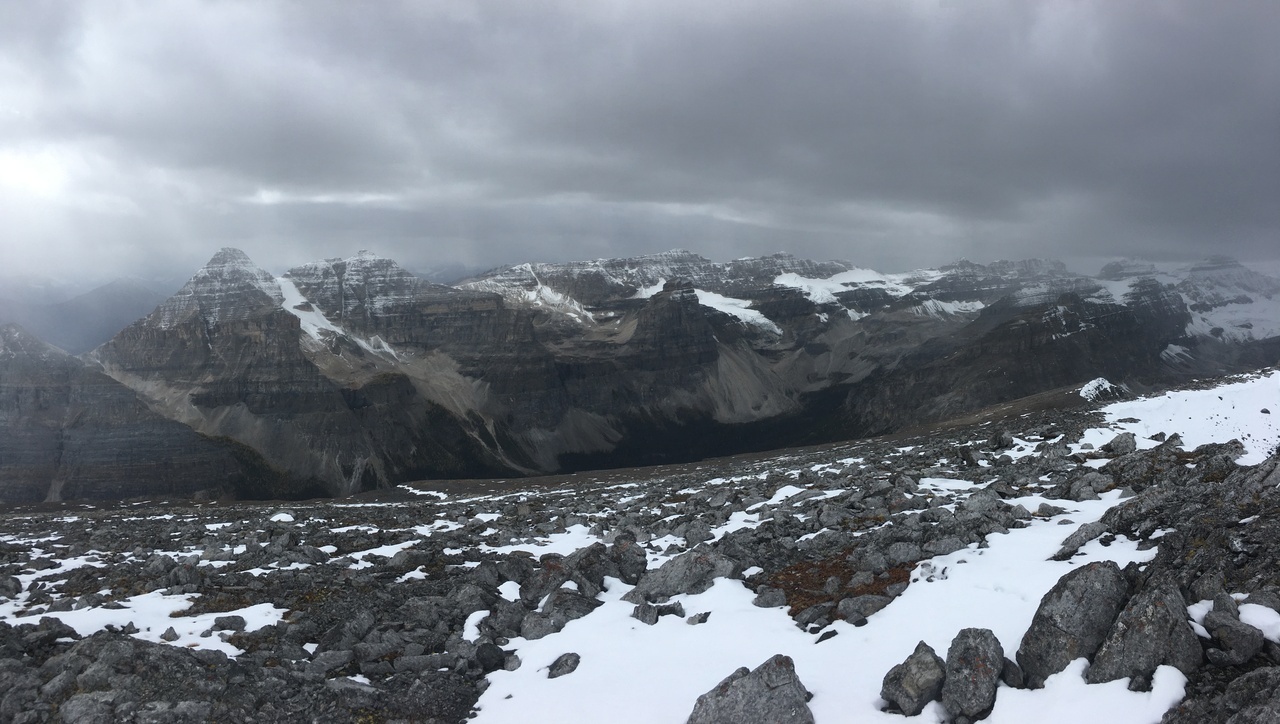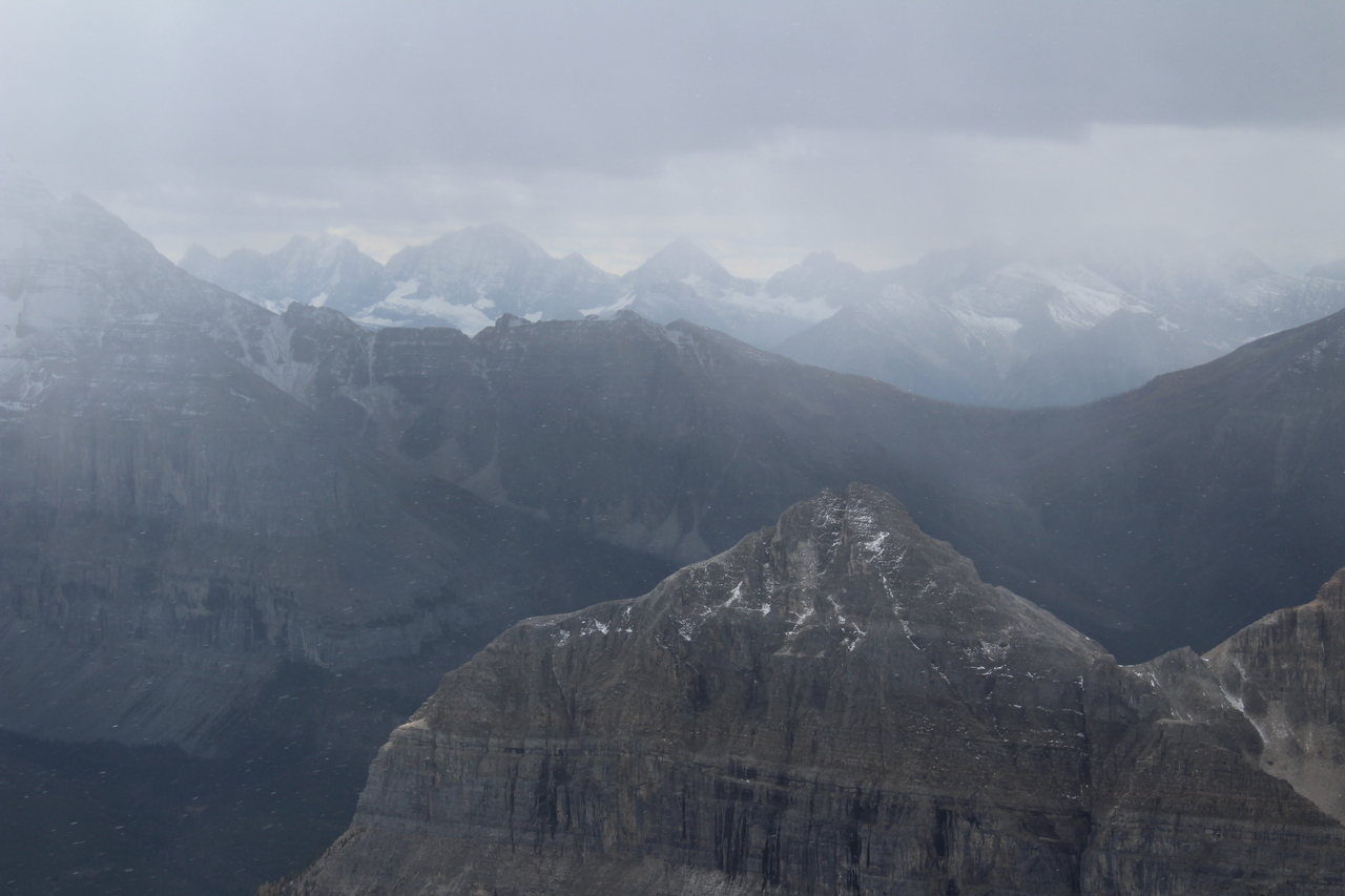 Mount Bell and Boom Lake summit of Boom Mountain. Great...now it's snowing 😑