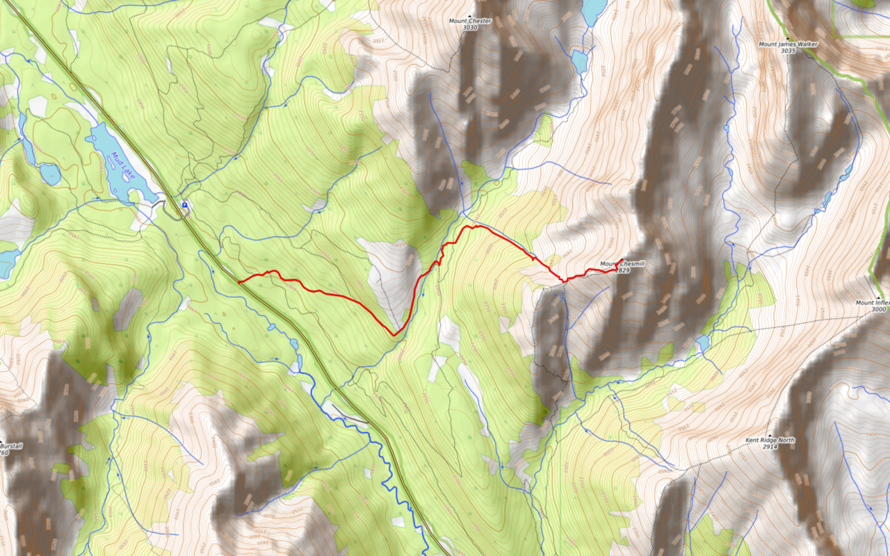 Rather than starting at the Chester Lake parking lot, we continued down the highway, about 800m to the south, where we would take a short-cut that quickly allowed us to intercept the "Headwall Lakes Alt Trail".