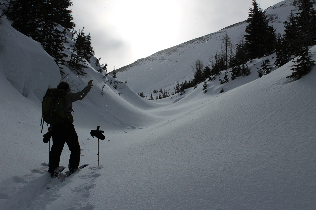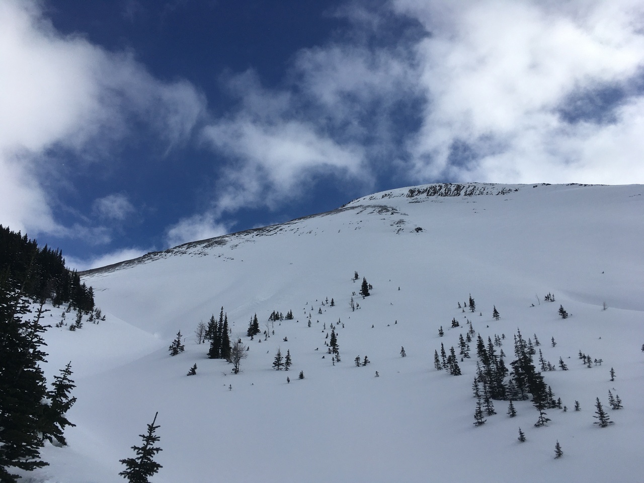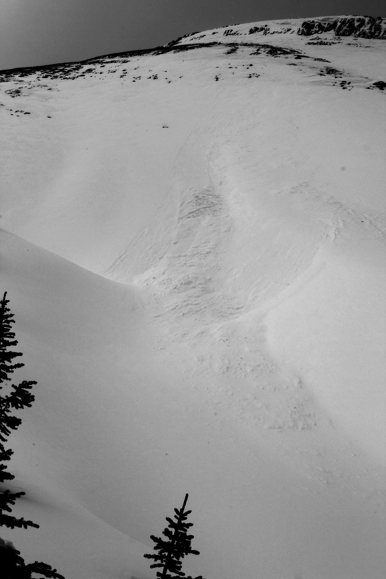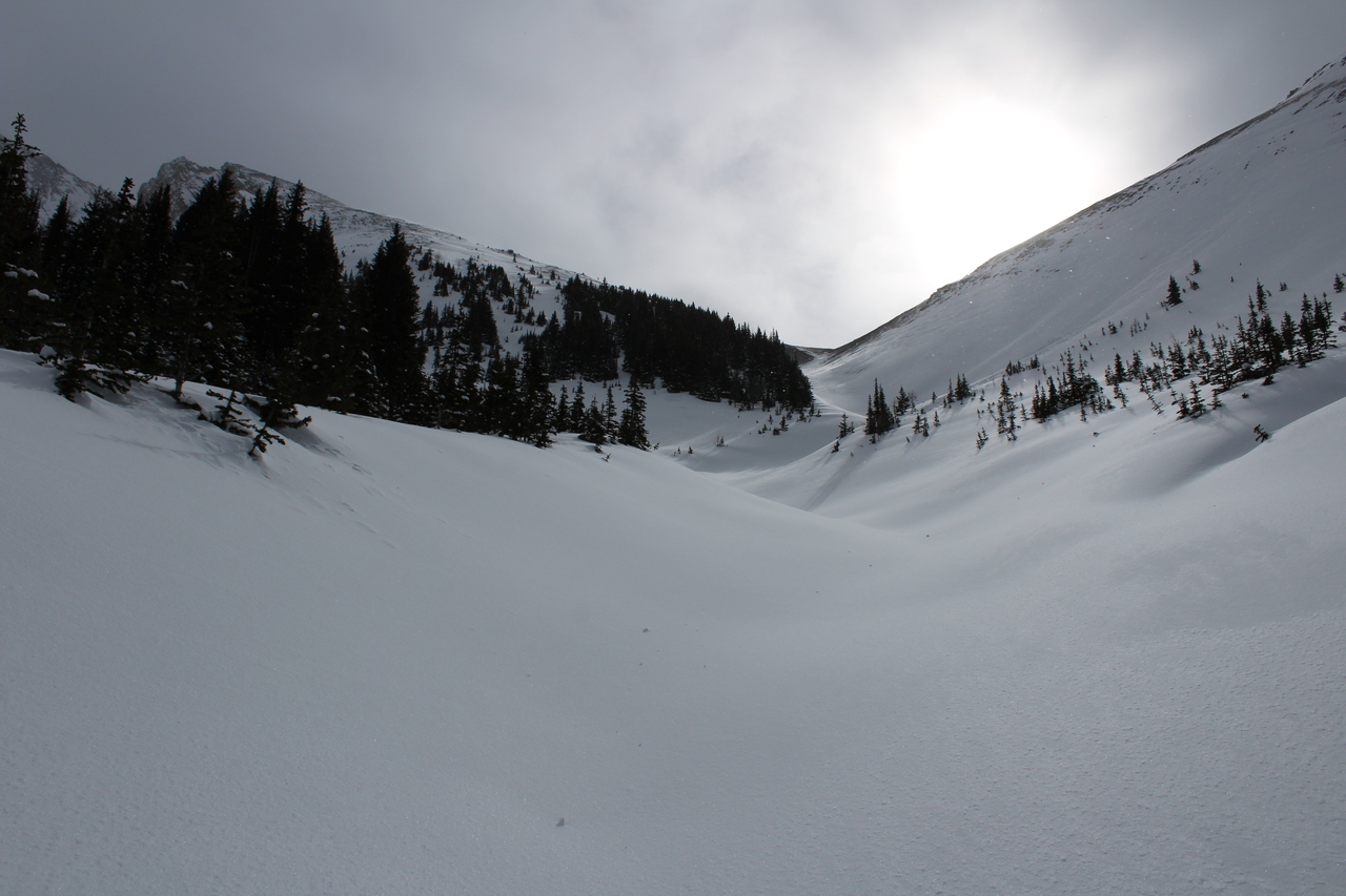 Notes: Ascent drainage is a classic terrain trap with exposure to the often wind-effected northern slopes of Chesmill's sub peak to the west.