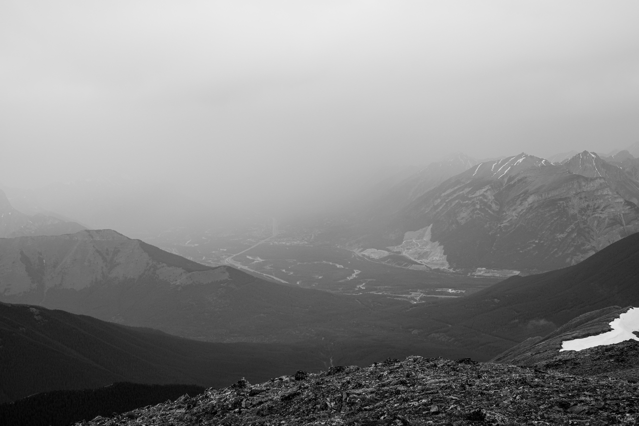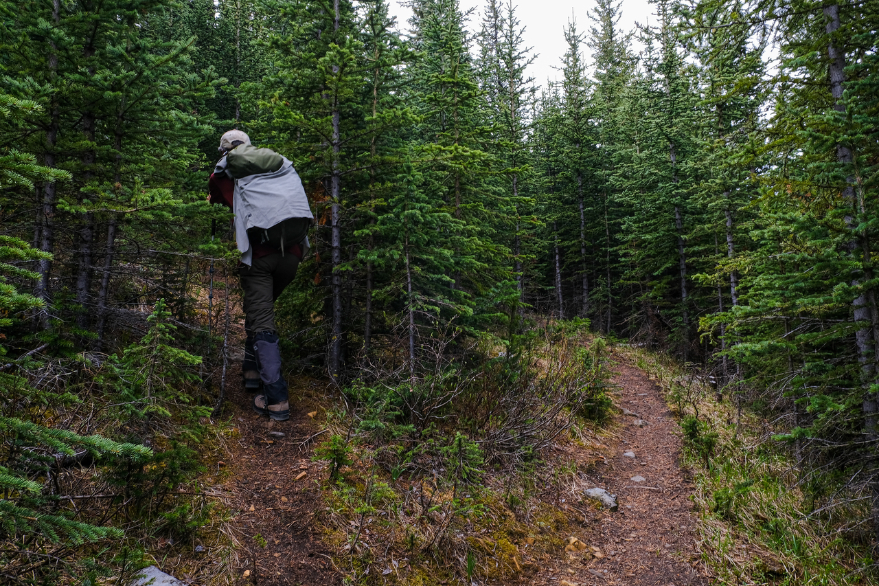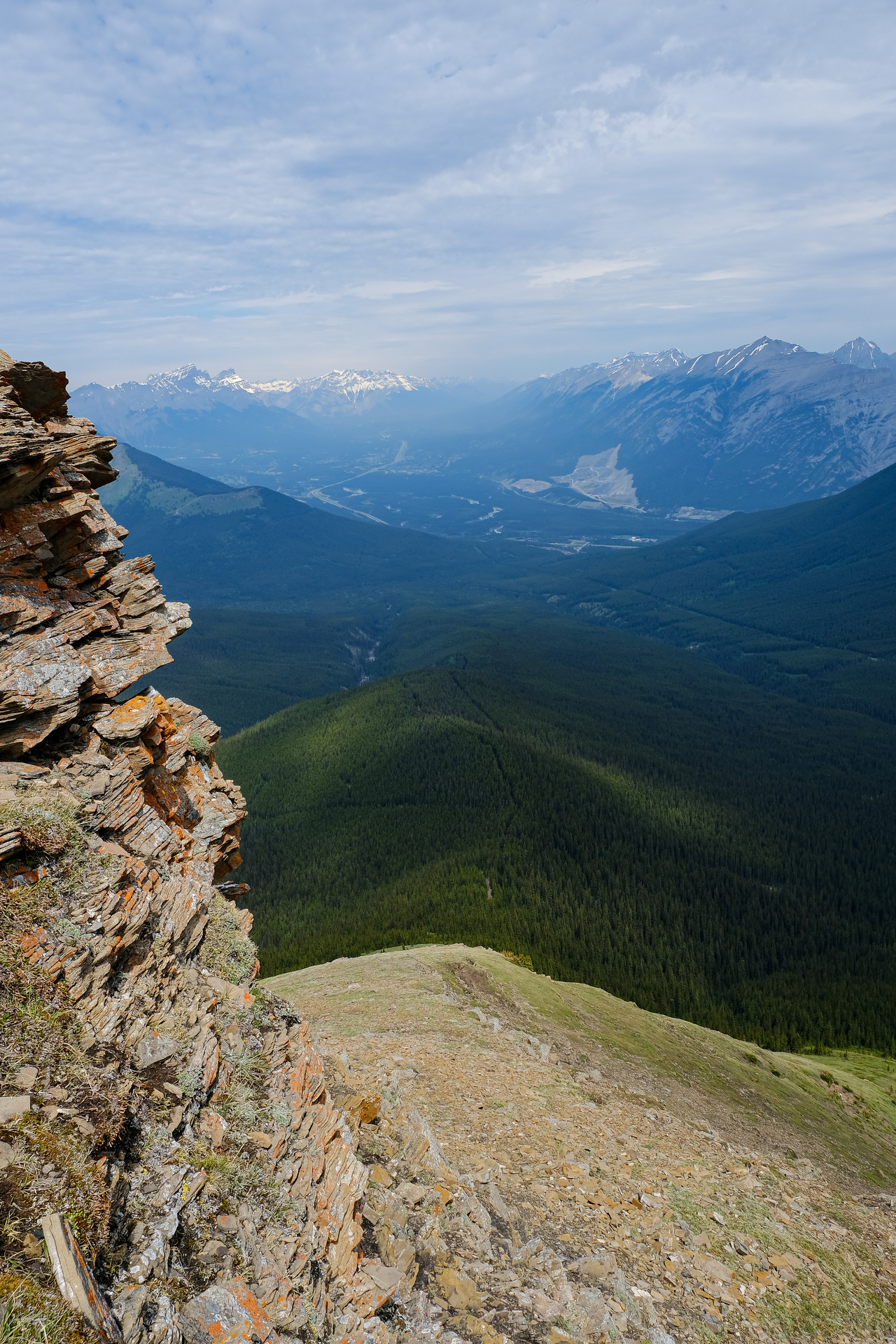 The bushy trail didn't last for long, and we were soon climbing past the treeline, enjoying our first views back towards Canmore.