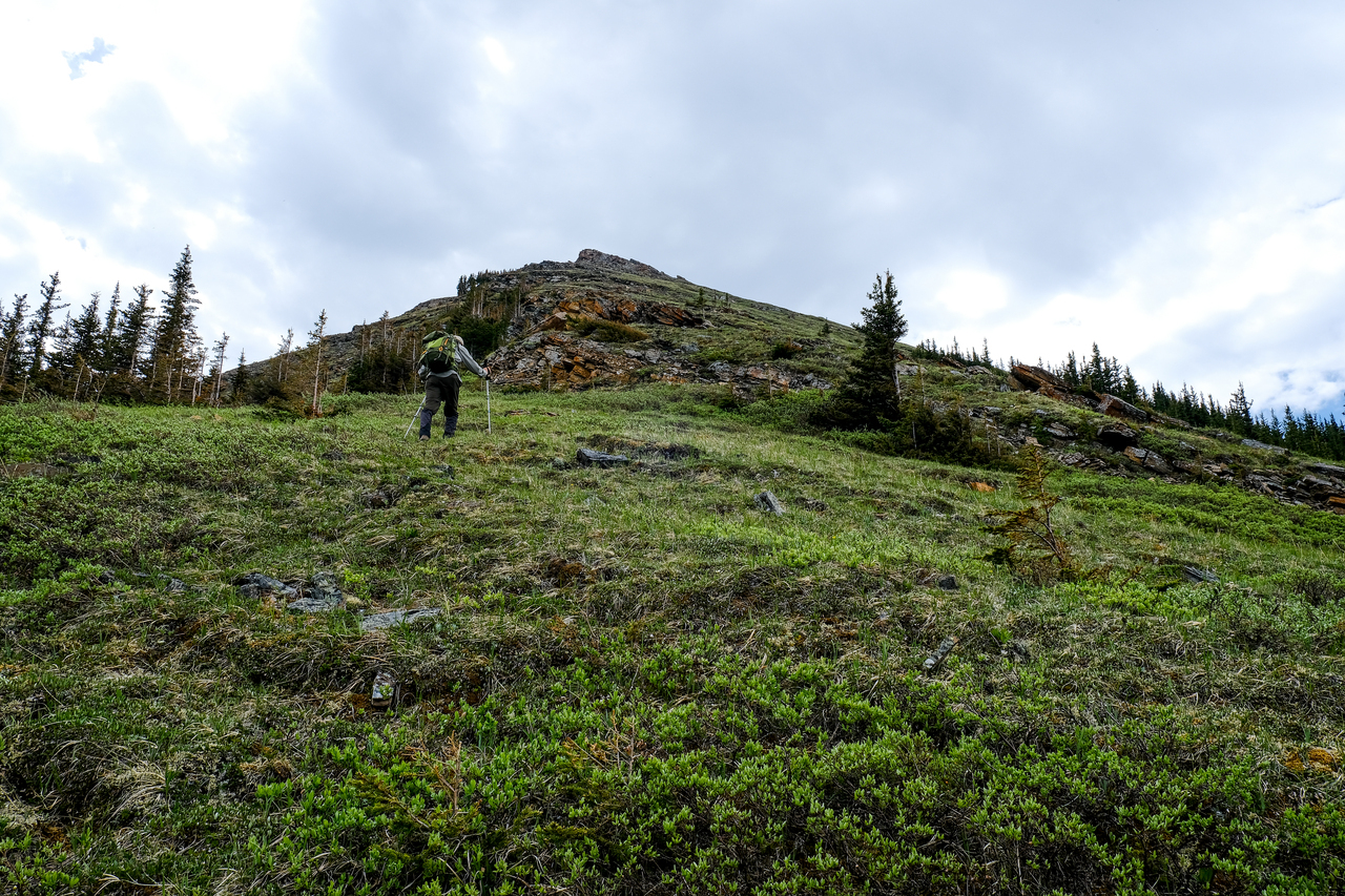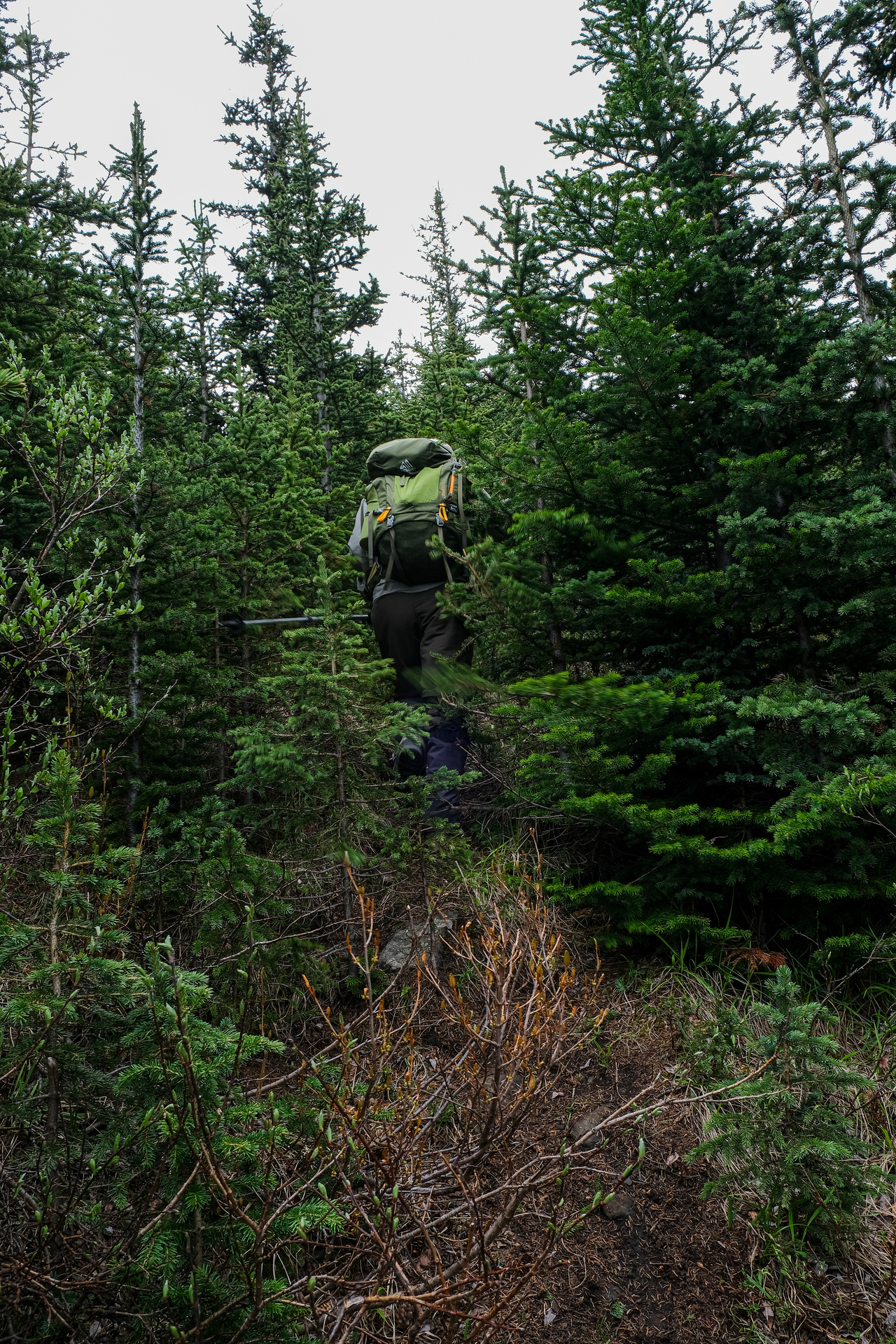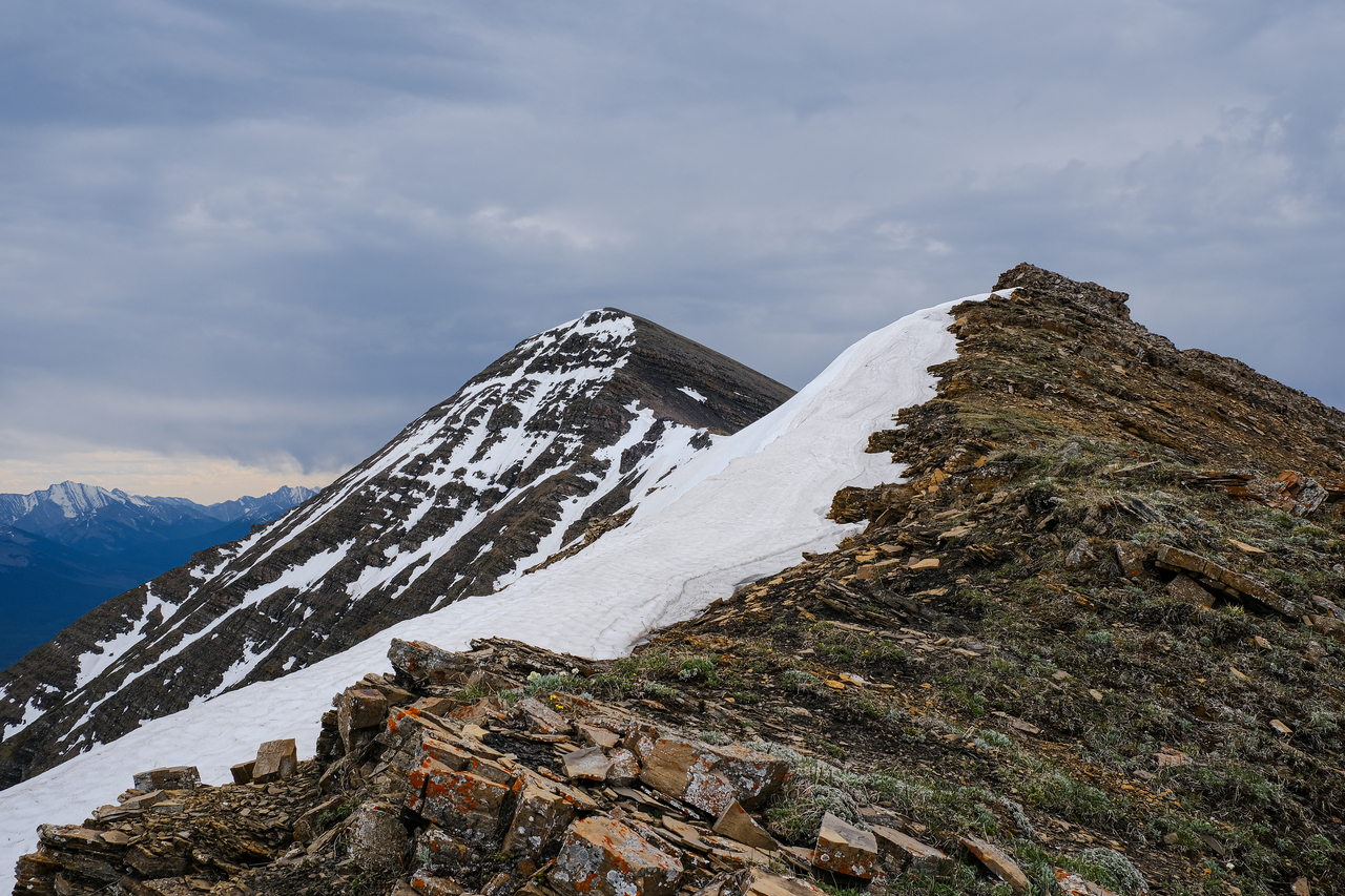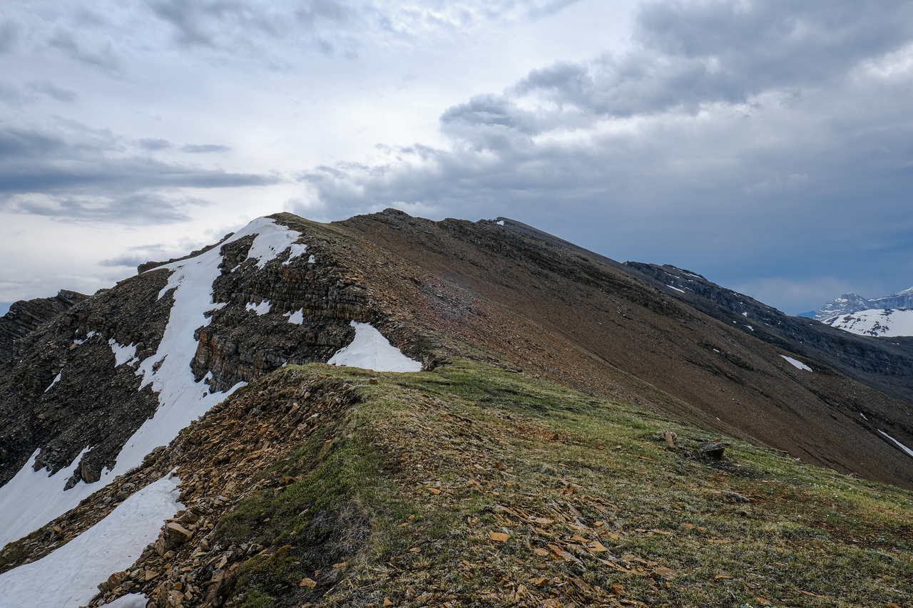 You'll have to keep an eye out, but eventually a narrow, bushy trail (not maintained) branches off from the Centennial Trail (maintained) just as you start traversing the hillside towards the cirque between the two mountains. If you're wanting to bag Collembola, like us, this is where you'll want to go. If not, continue on your merry way, and the highest maintained trail in the Canadian Rockies will take you right up to the summit of Mount Allan!
