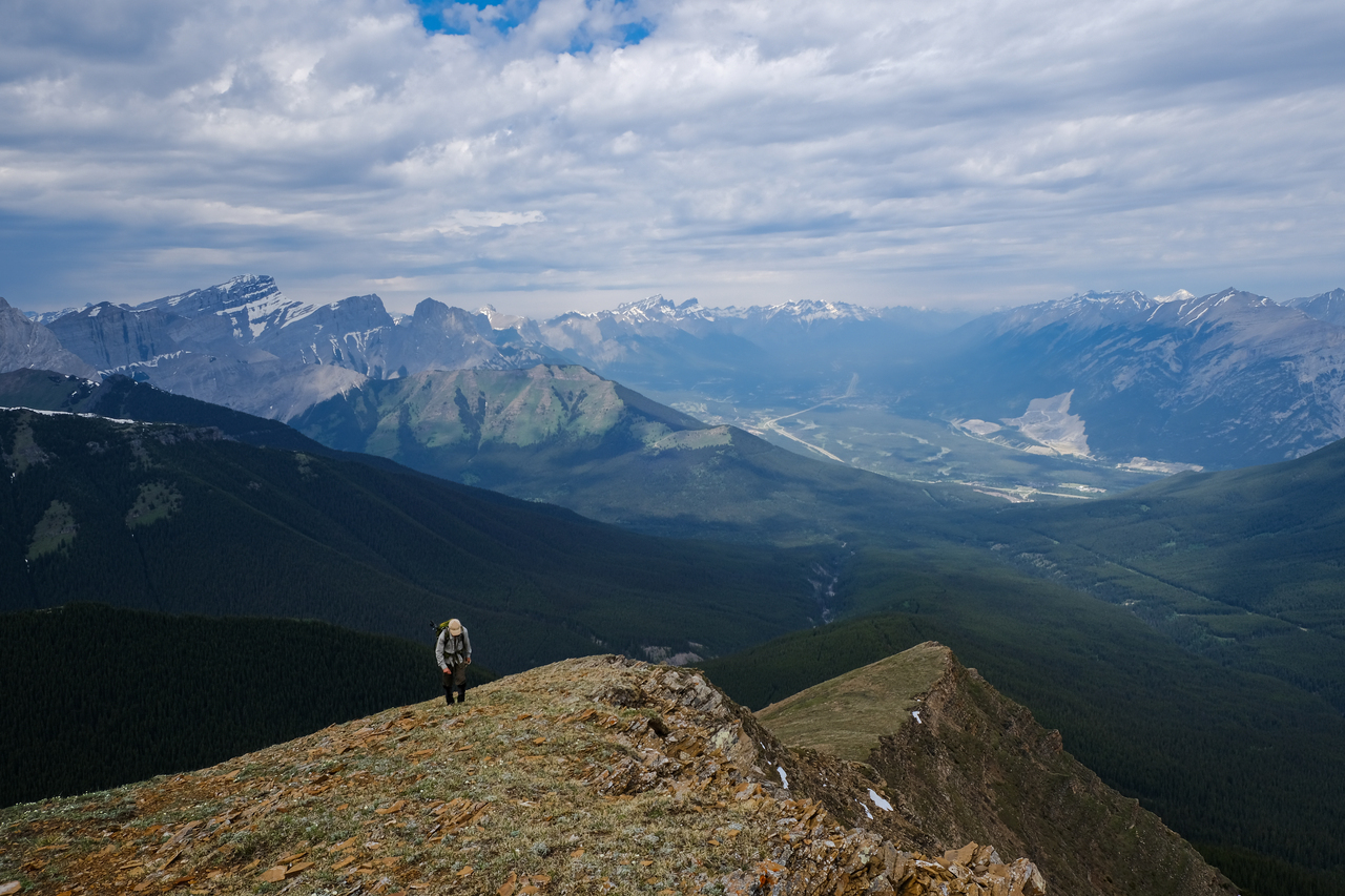 The Three Sisters rise in the background (left) as we easily continue up the ridge.