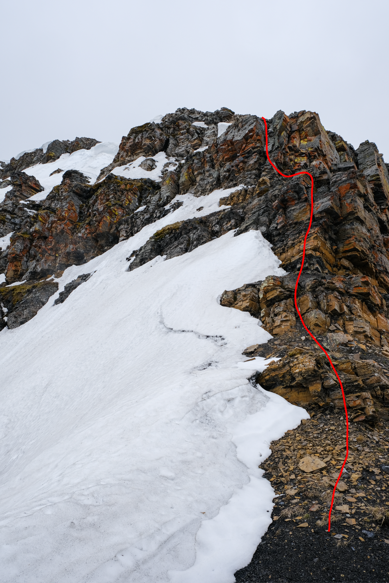 Uhhh...this wasn't part of the plan! As we neared the summit, a significant cliff band appeared, and as hard as I analyzed, I saw no weaknesses through it! Maybe I should of done more research...¯\_(ツ)_/¯