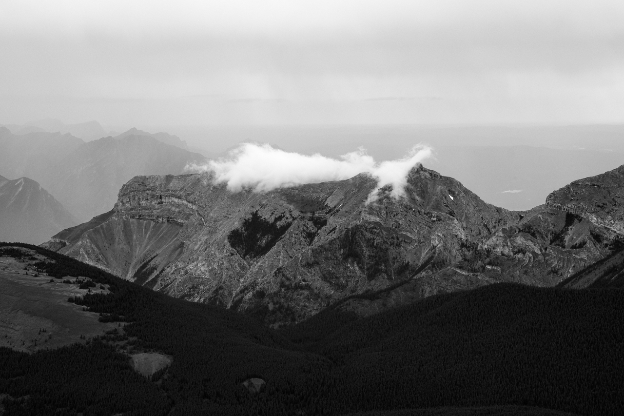Mount Sparrowhawk and Wind Mountain tower beyond modest Mount Allan.