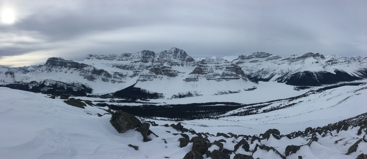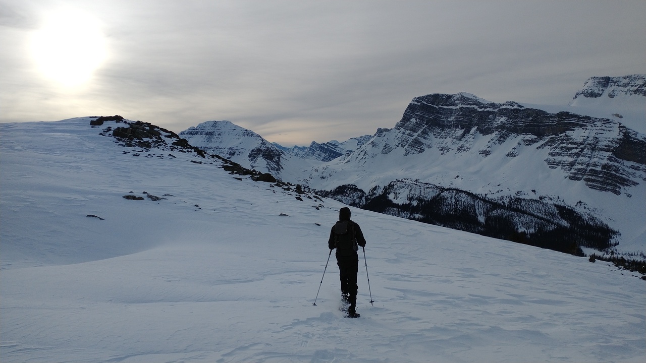 After spending the majority of our scrambling trips along the Icefields Parkway this past summer, this area of the Rockies has quickly become a favourite of mine! The big, steep mountain faces, stunning blue lakes, and glaciers stretching out for miles, makes for some of the most spectacular views I've ever seen! Since our last Icefields trip up Noseeum Peak at the end of August (we already had snow back then!), I've been looking for an excuse to go back, and Crystal Ridge presented the opportunity! Although I was already hoping to climb Crystal Ridge at the beginning of the month (...see Wolverine Ridge for why that didn't work out), I wasn't about to give up that easy, and before we knew it, we were back on the Icefields Parkway, heading north (this time on super icy, but at least semi-plowed roads...)! Once we made it to the trailhead safely, there was nothing that could stop us on what would turn out to be my favourite day on snowshoes to date!
