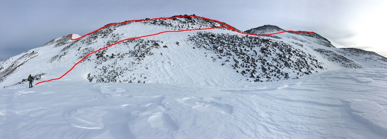 Notes: A couple steep slopes could present avalanche risk depending on snow conditions. Beware of significant cornices along the ridge!