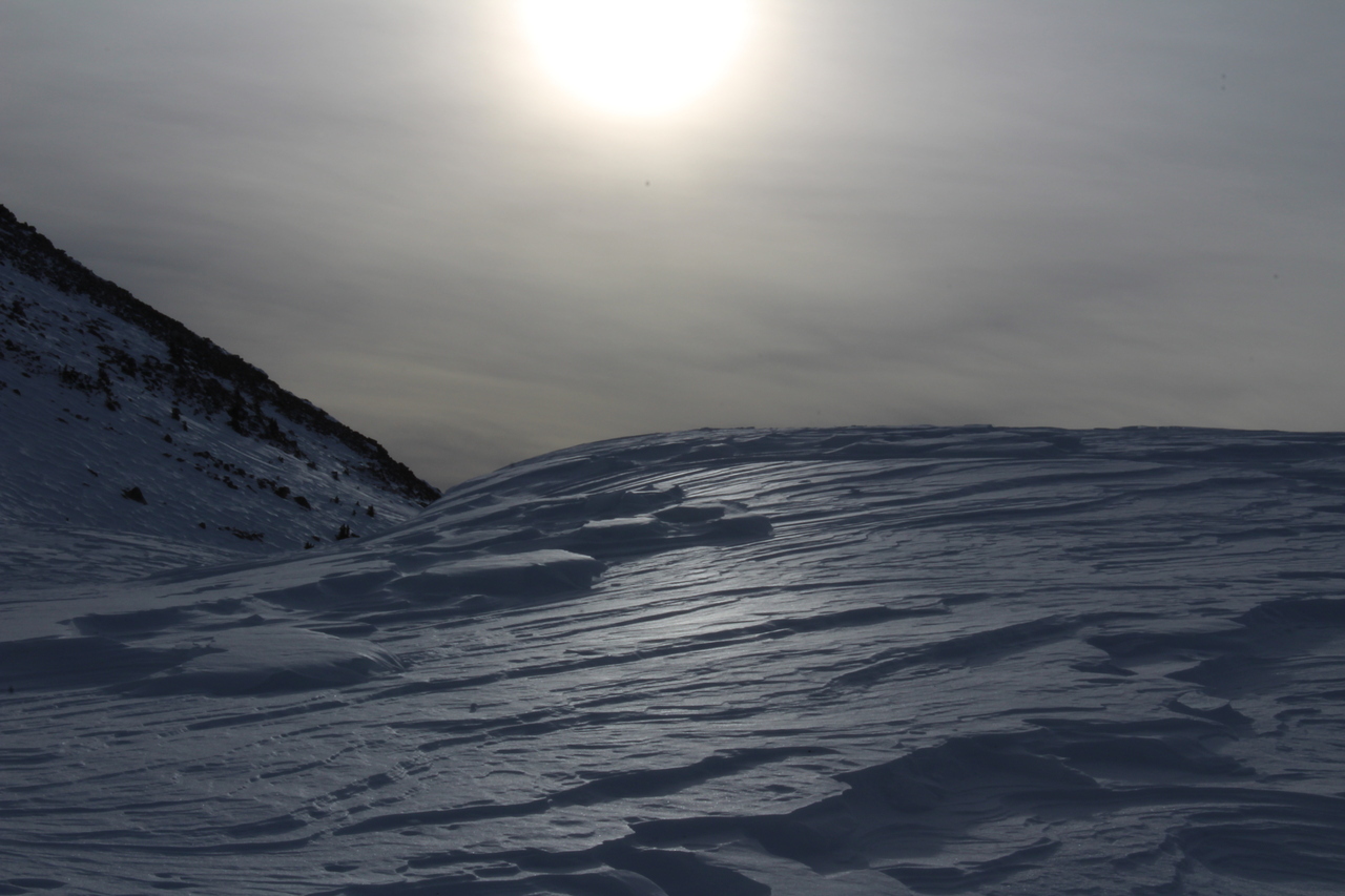 We spent time both following previous tracks, as well as making our own, but travel was always easy, on heavily windblown, highly supportive snow.
