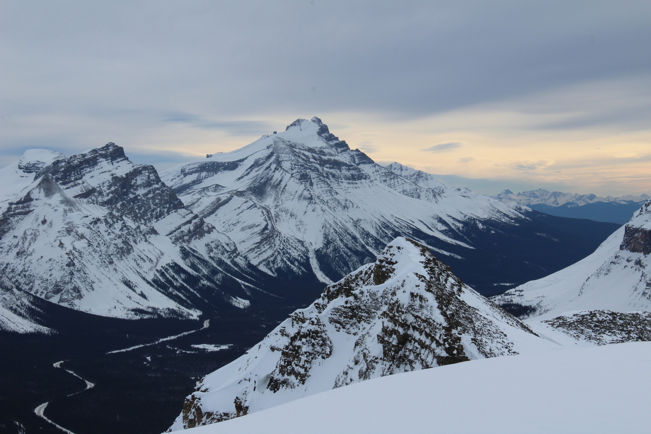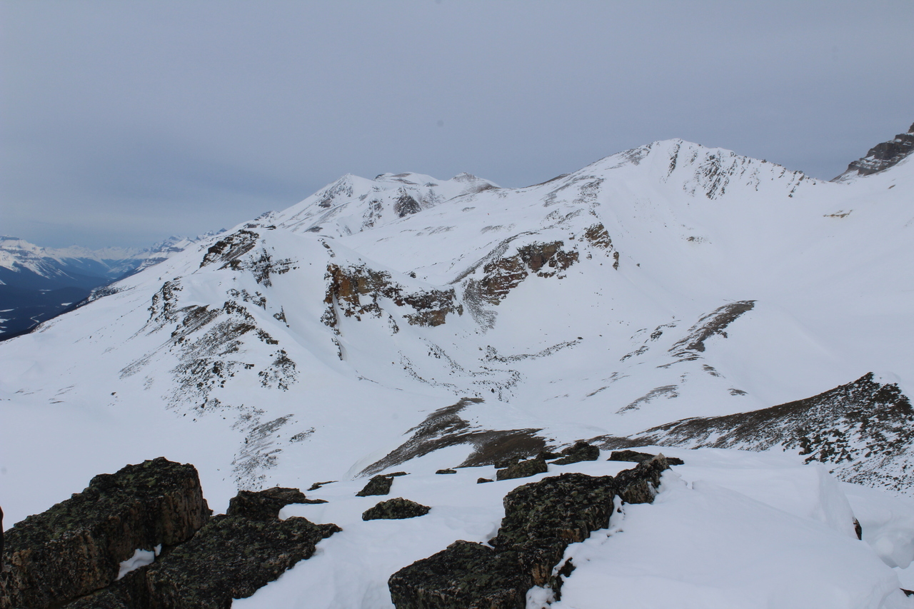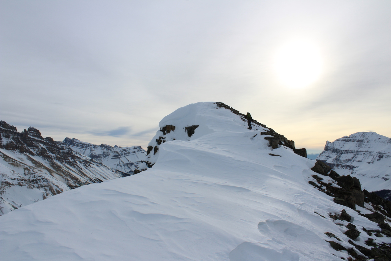 Glaciated Mount Collie is visible between Crowfoot's North Summit and North Peak!