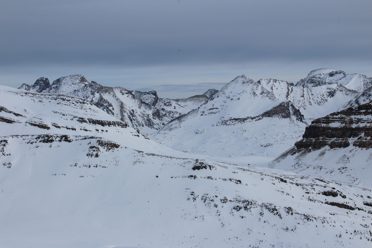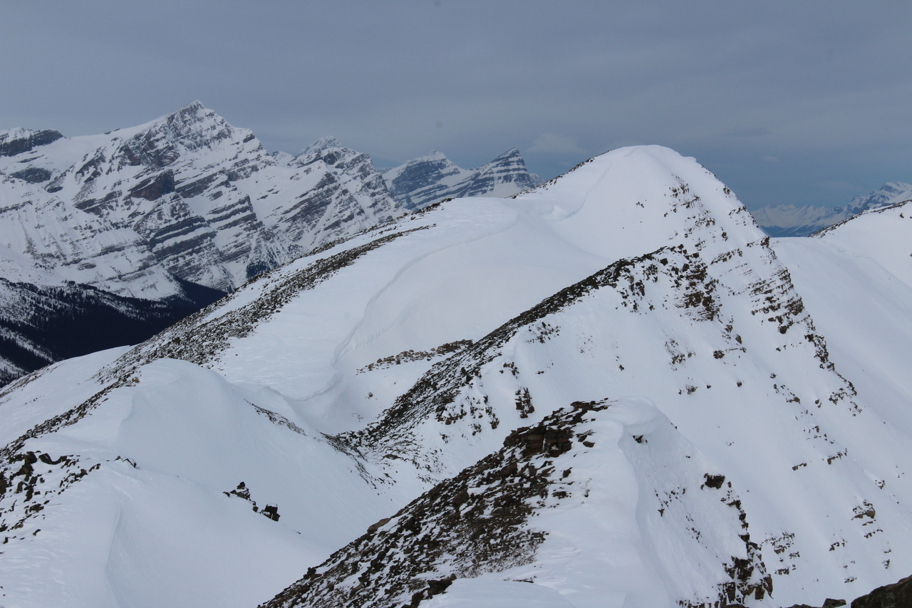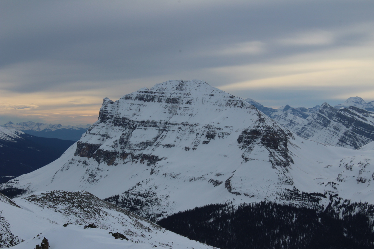 Glaciated Mount Collie is visible between Crowfoot's North Summit and North Peak!