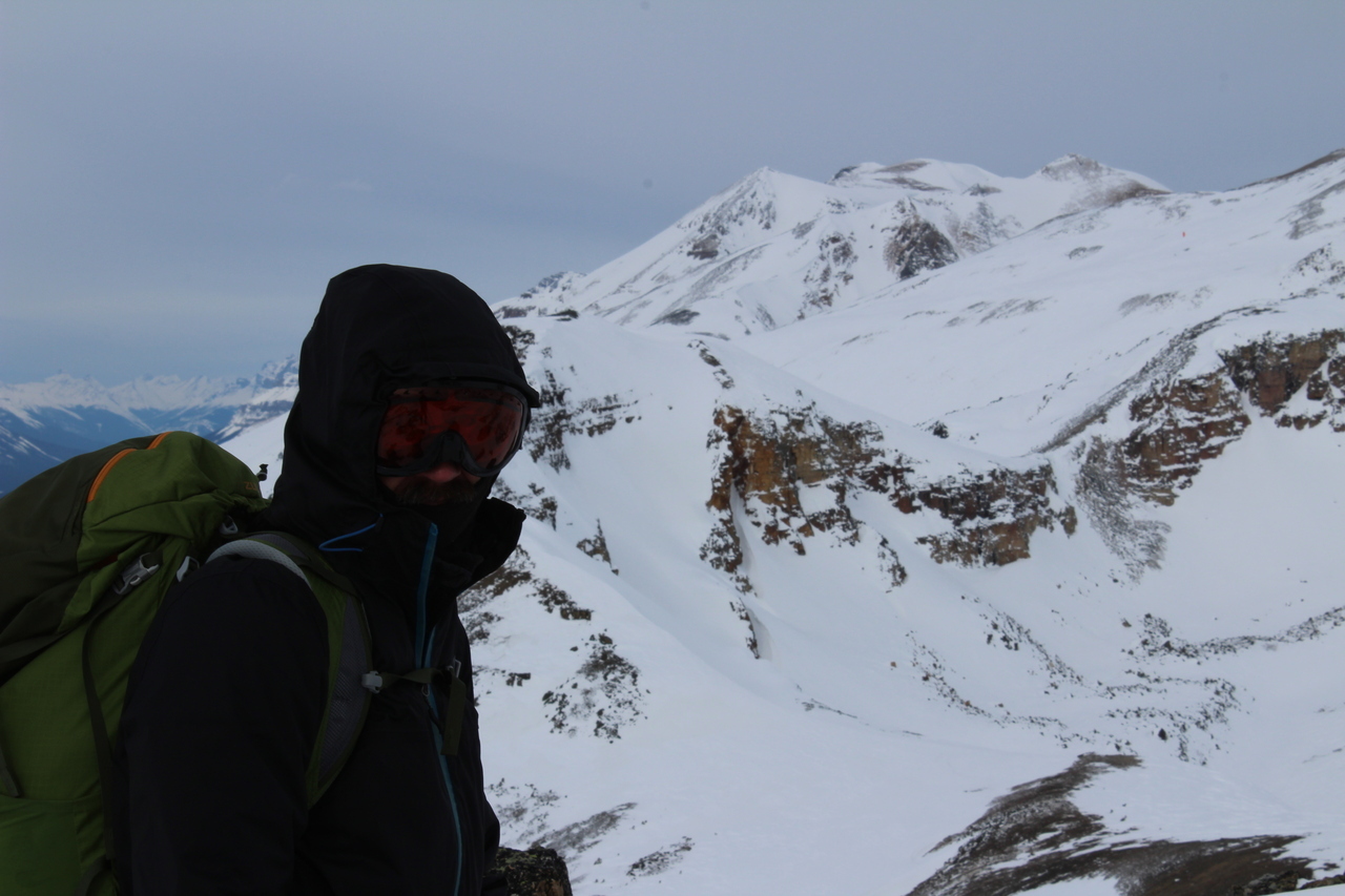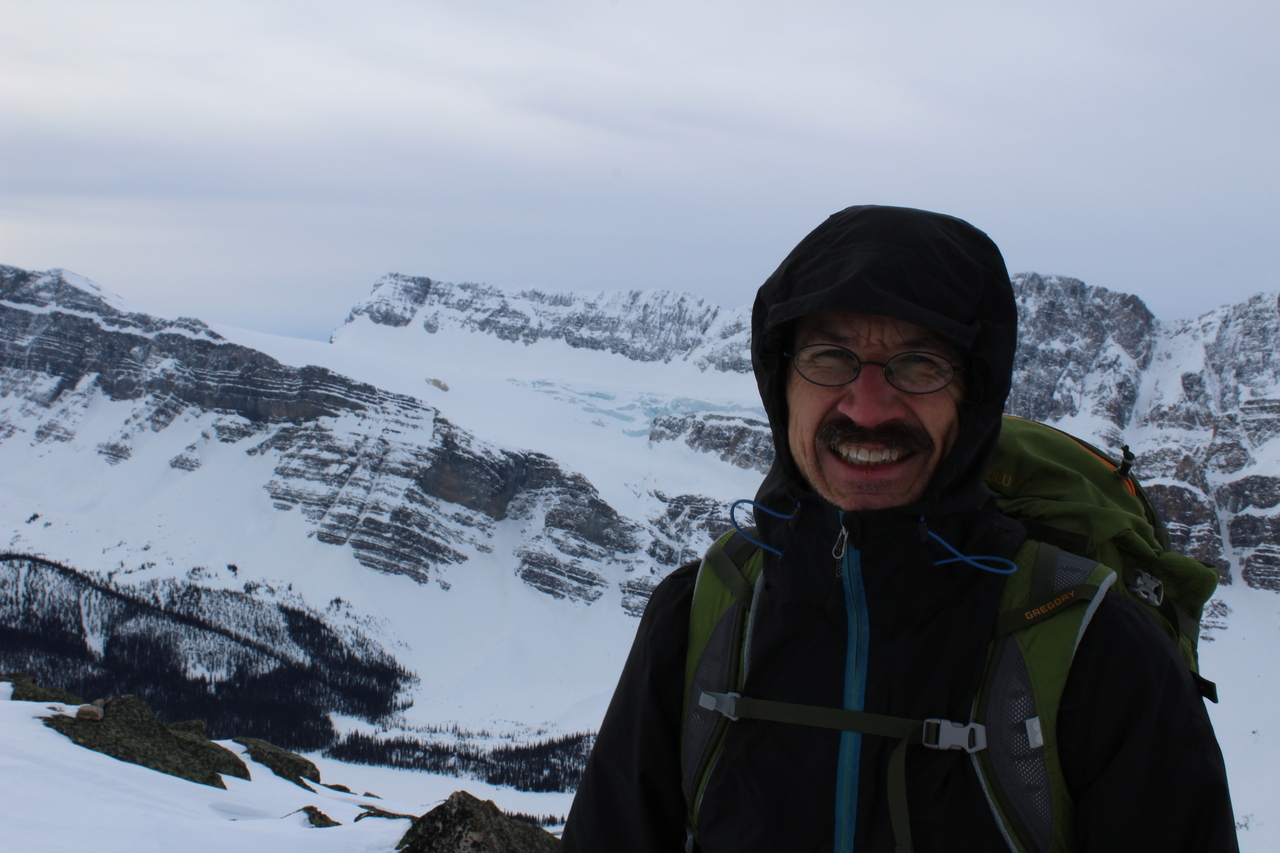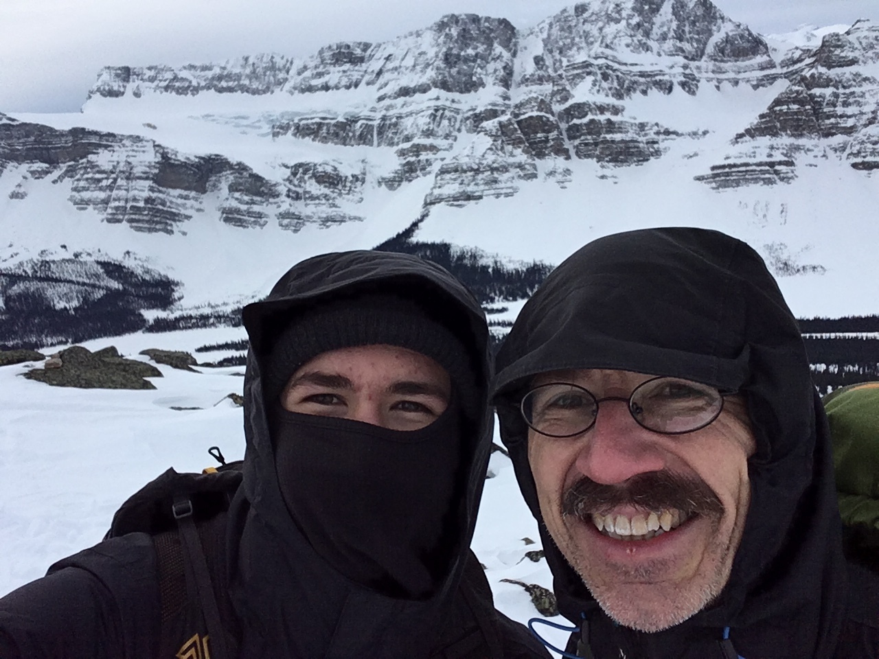 My dad stands on the chilly summit, with the mighty Crowfoot and it's corresponding glacier in the background!