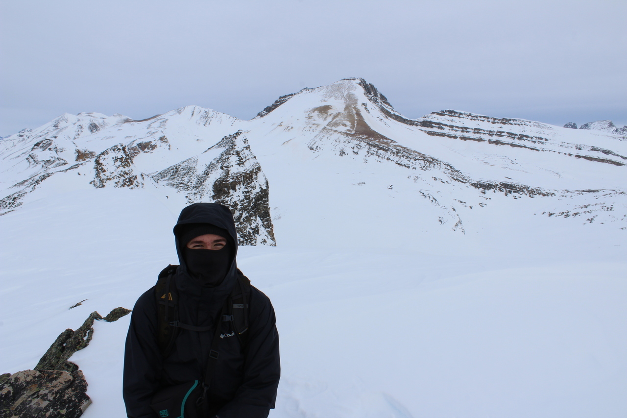 Me, on the small (or so it seems, when avoiding the cornice) southeast summit. Photo credit: Dad