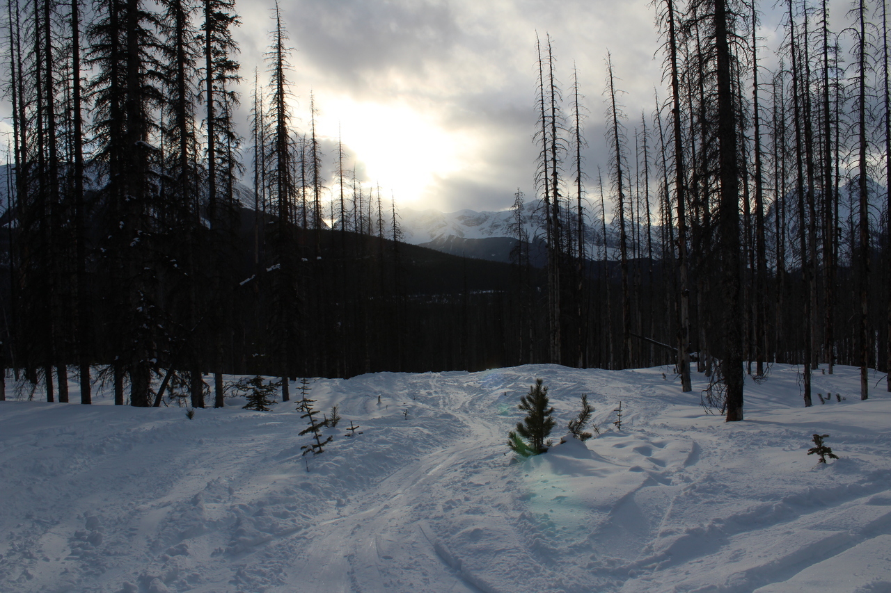 I ventured off the trail, through the burnt trees above Engadine Creek, to see what other views we missed out on last month.