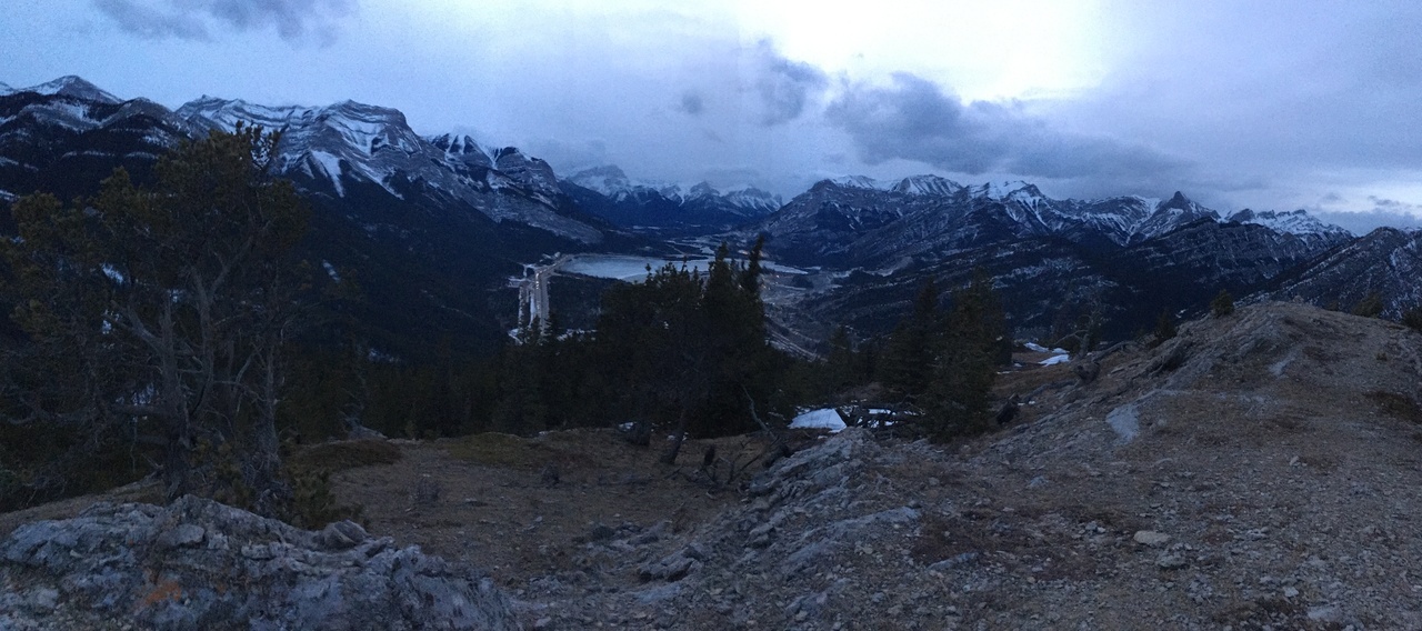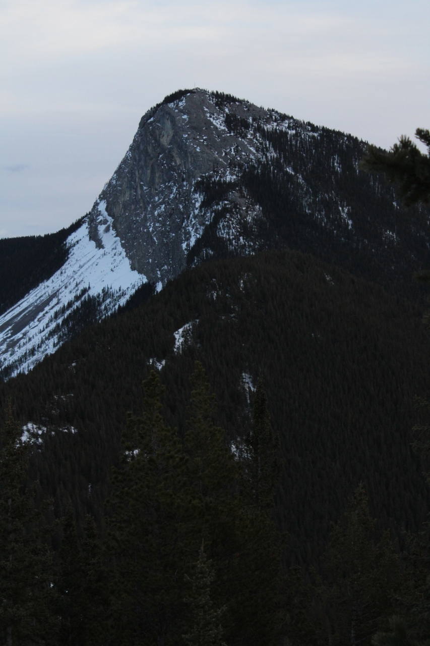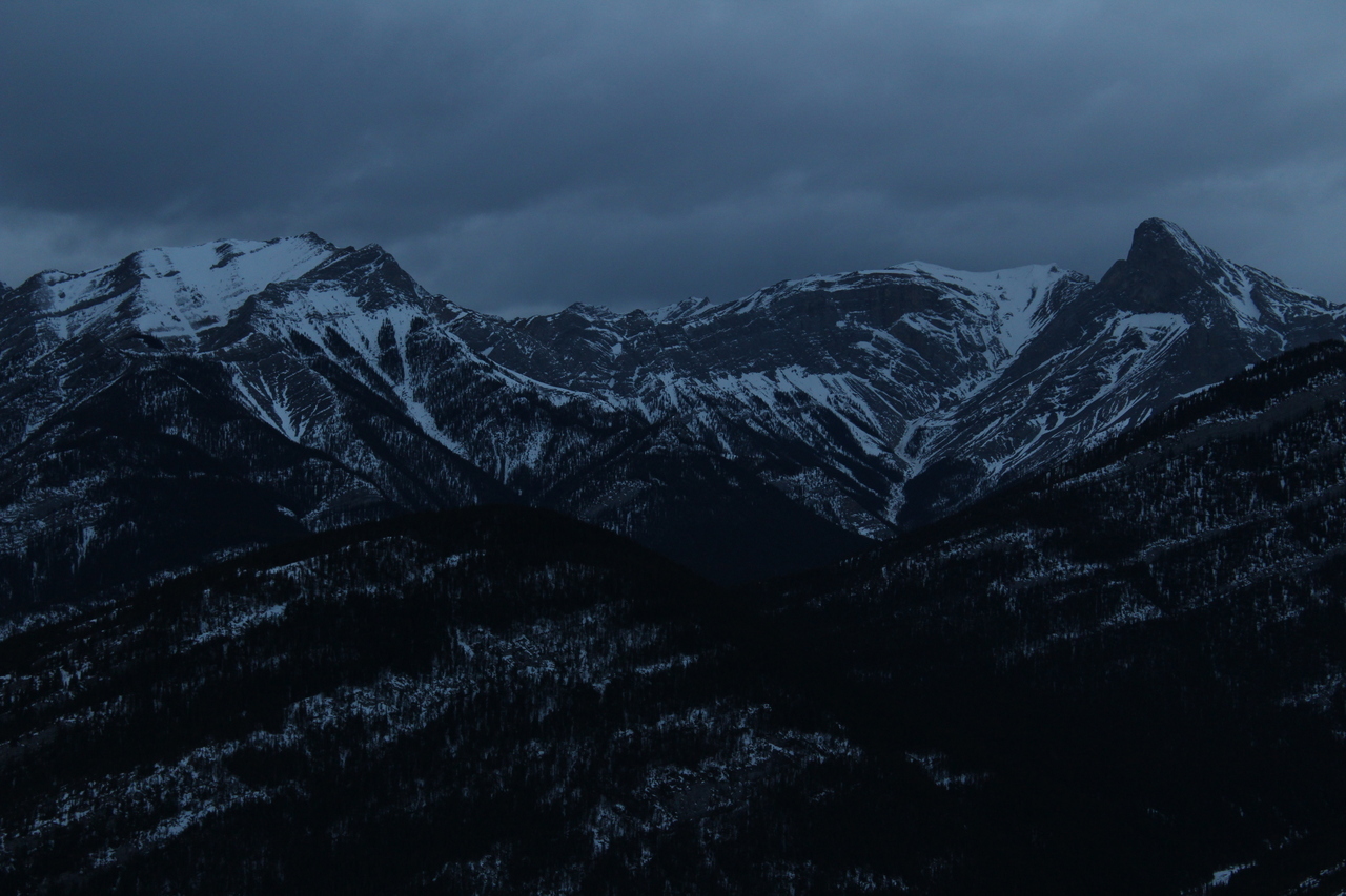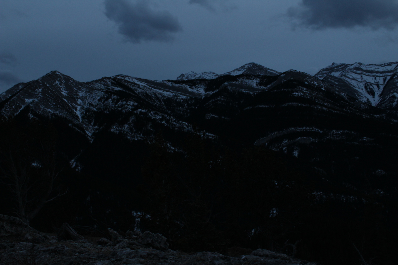 Mount Yamnuska stands out across the highway in the final few sunlight hours, as we rejoin with the connecting ridge.