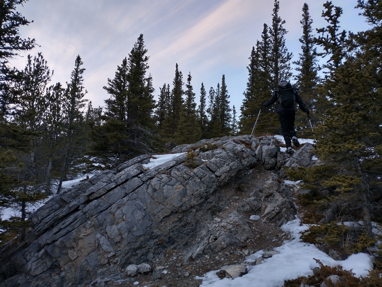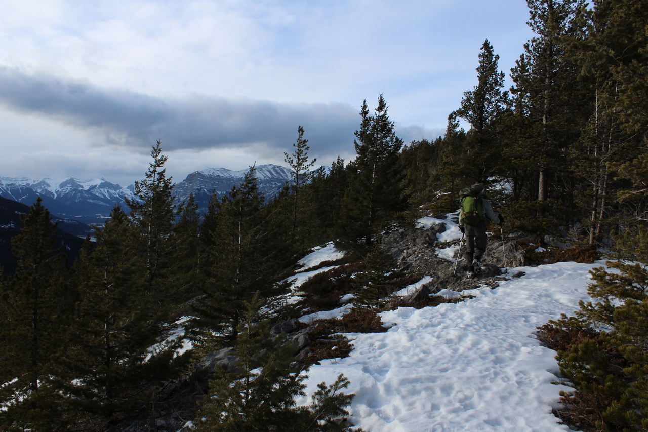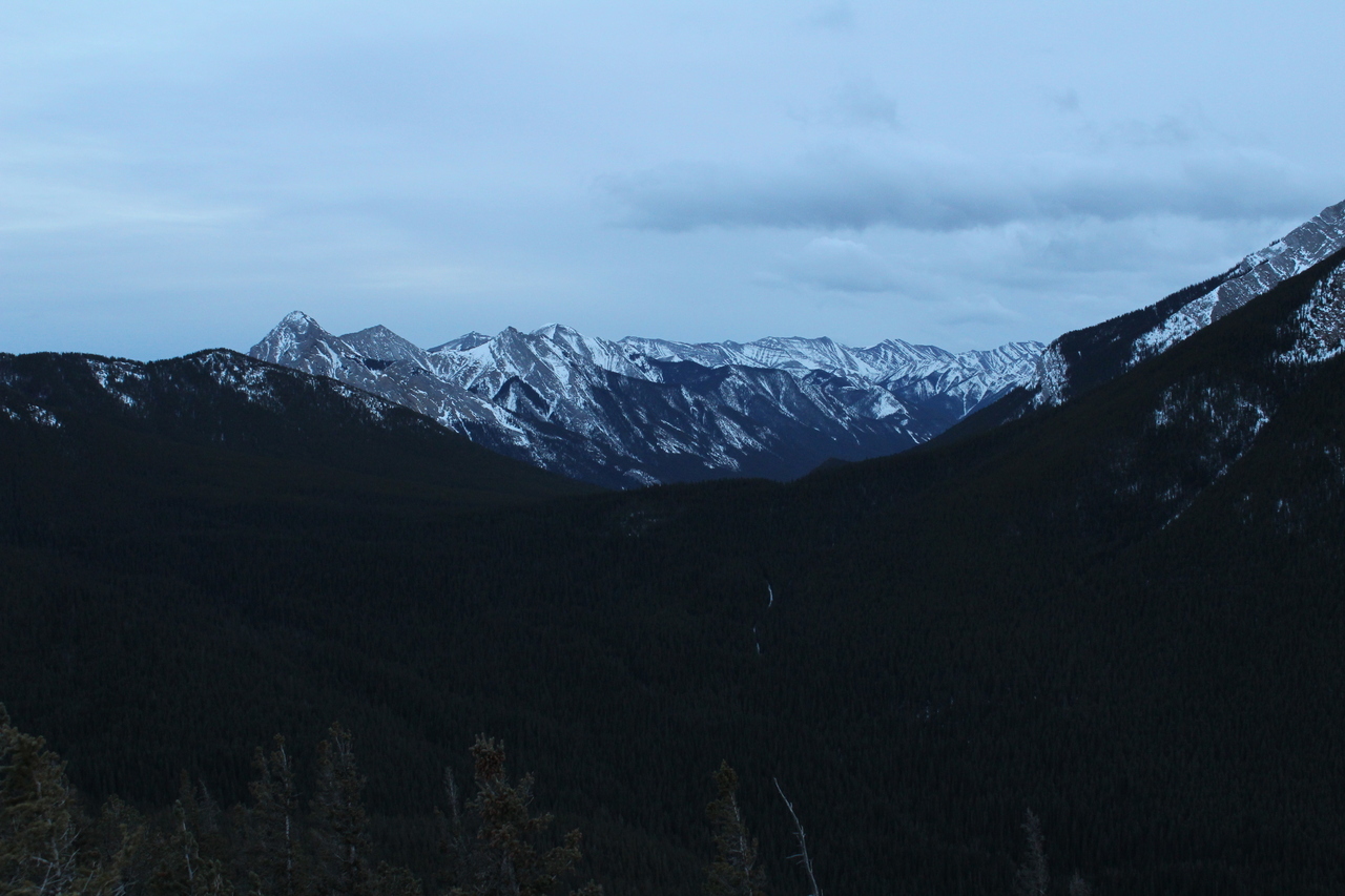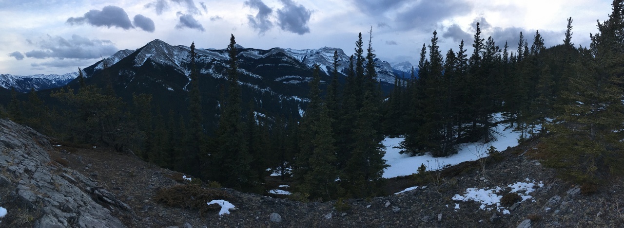 Mount Yamnuska stands out across the highway in the final few sunlight hours, as we rejoin with the connecting ridge.