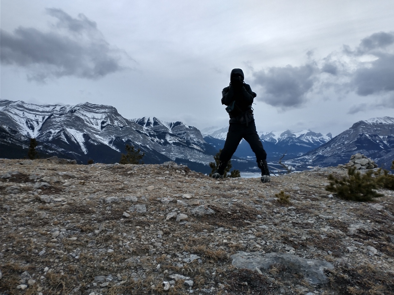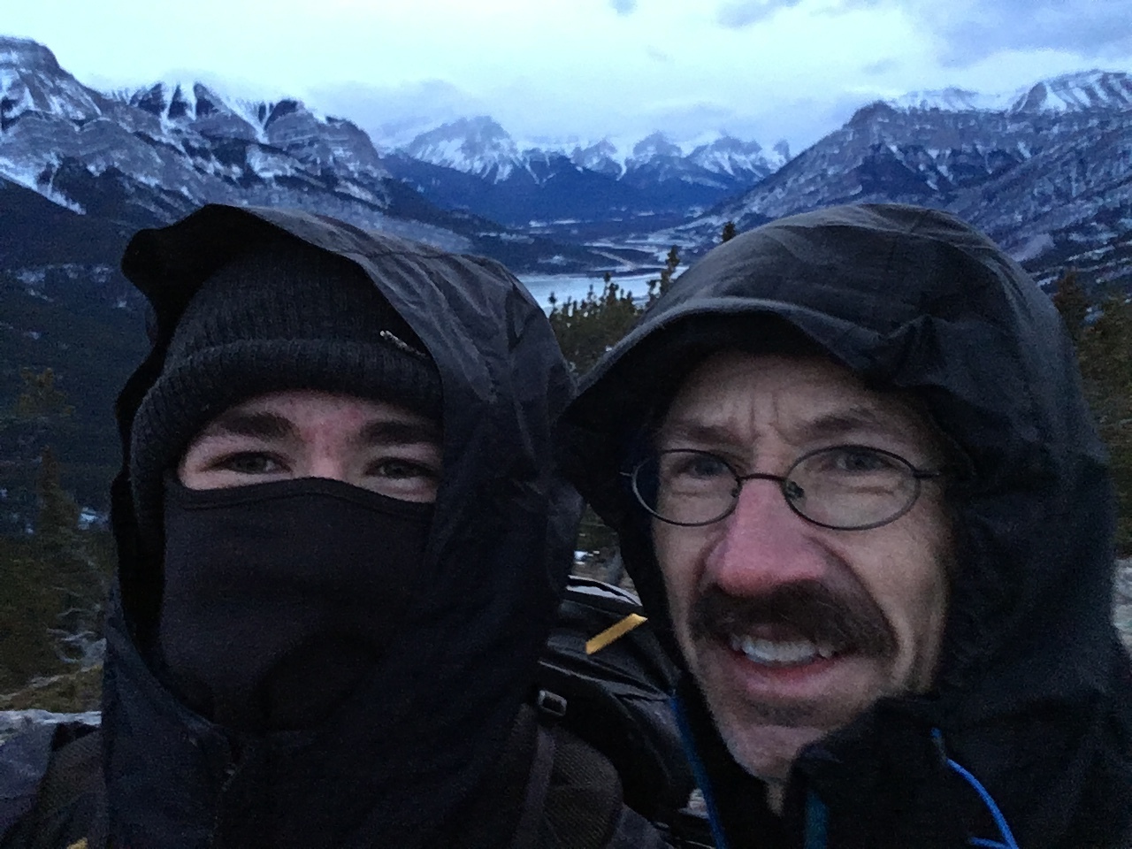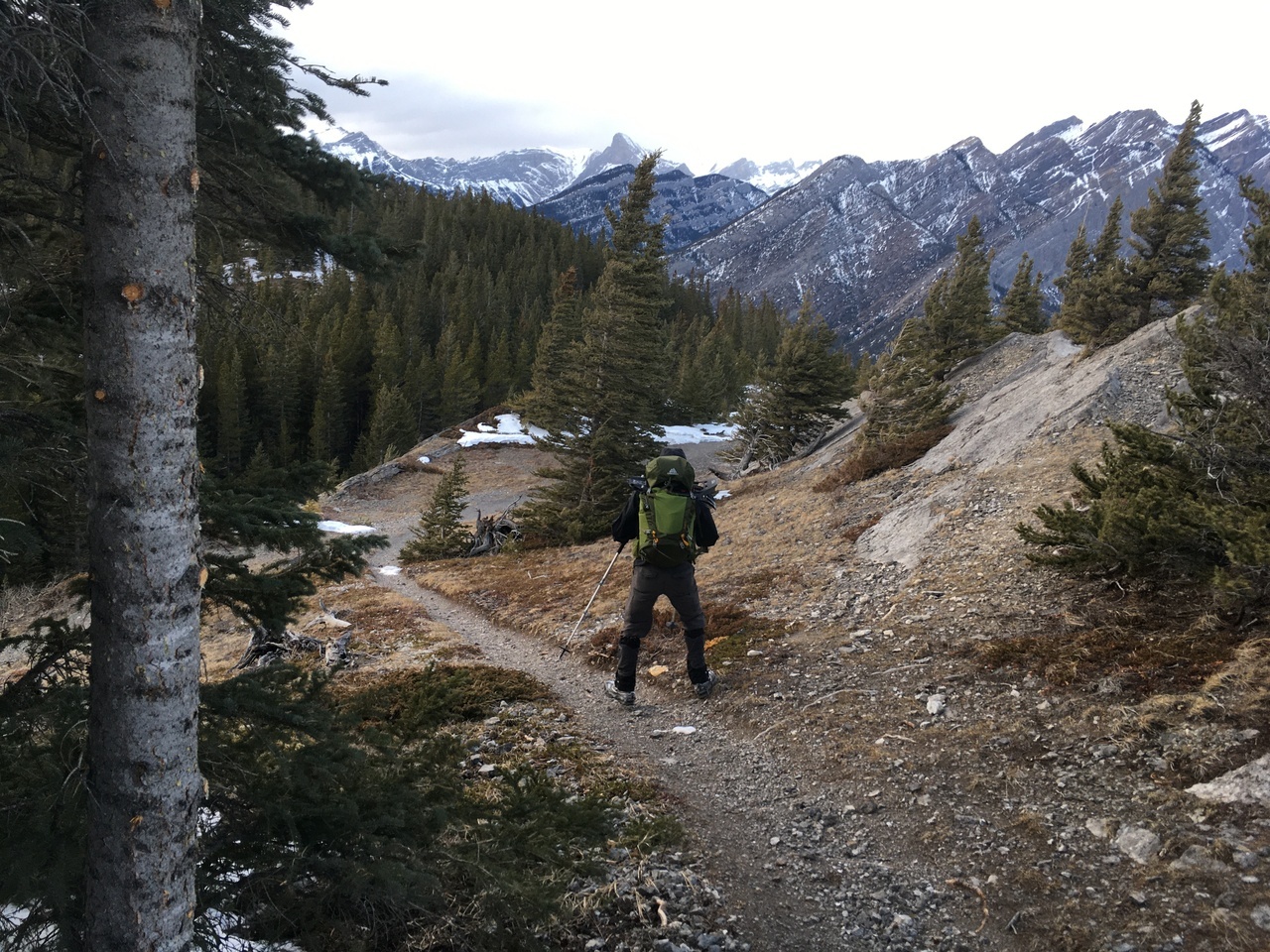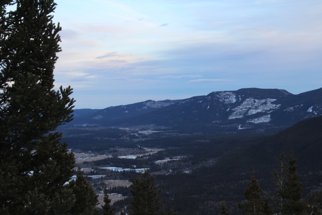 Looking down to the highway as we reach the end of the rocky ridge, before joining with the trail that would lead us back to the highway! Since this final ridge didn't have snow, we no longer had tracks to follow! Nonetheless, we still had our GPS, and were able to safely make it down without too much trouble :)