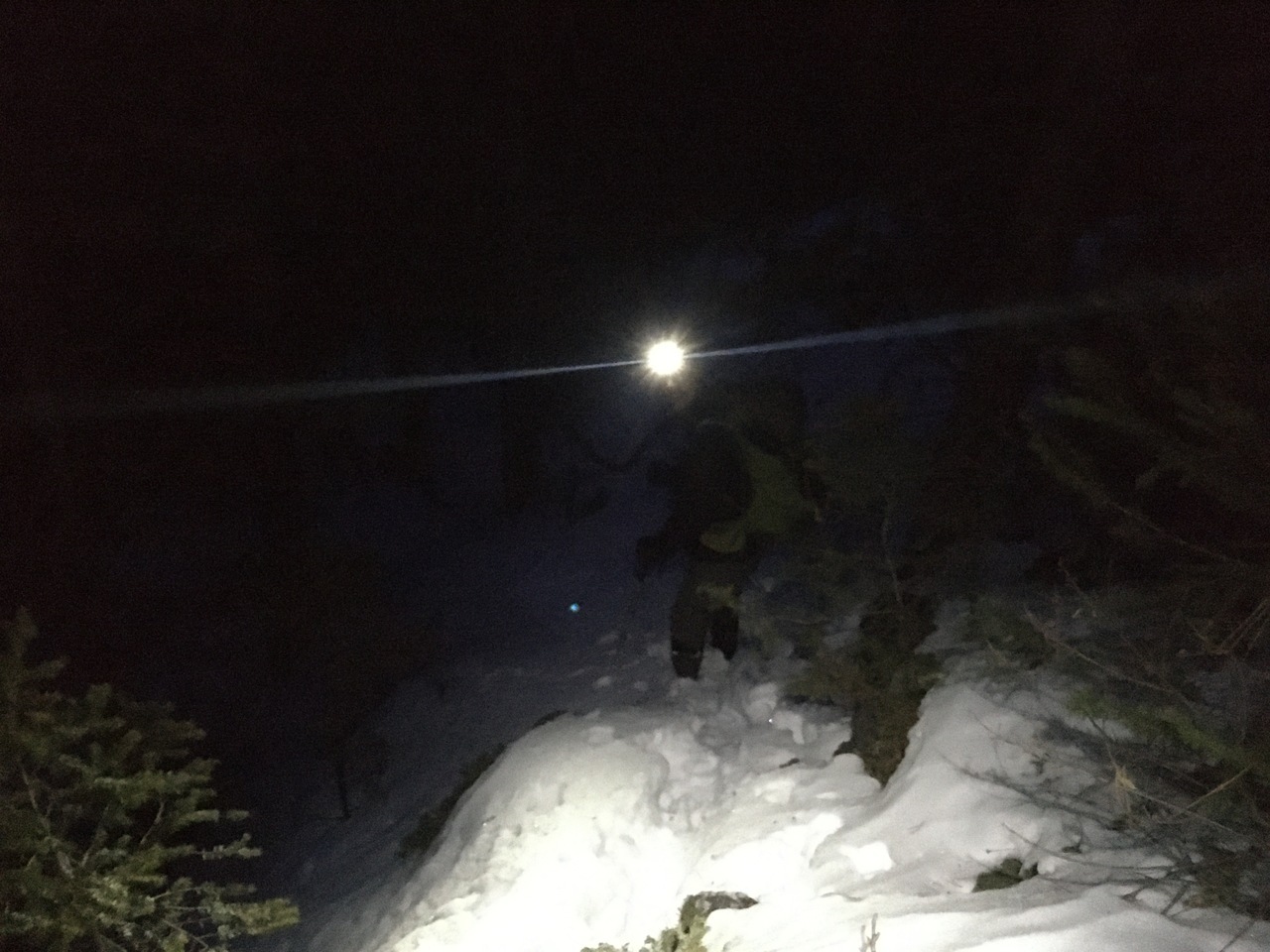 The sun had officially set when we were still on the summit, but we were able to make it to the end of the ridge before putting on headlamps as we entered the more densely forested slopes below. Photo credit: Dad