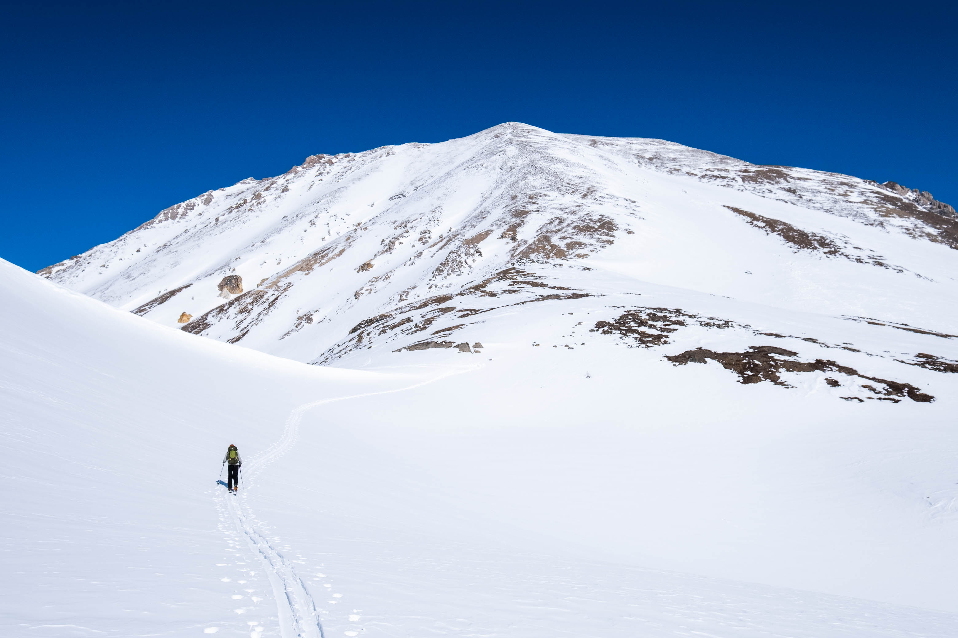 When we arrived at the low point between Fossil Mountain and a small, unnamed bump just east of Deception Pass, we continued skinning up Fossil as far as we could, before stashing our skis and starting the 350 m bootpack to the summit. While scree bashing in ski boots can definitely feel never-ending at times, the valley bottom soon dropped out from below us, and it was nice to finally be gaining some noticeable elevation after a long, gradual approach. What was even better though, was the refreshing breeze that comes when you hit a certain elevation, working wonders at canceling out the effects of the sun and cooling us off.