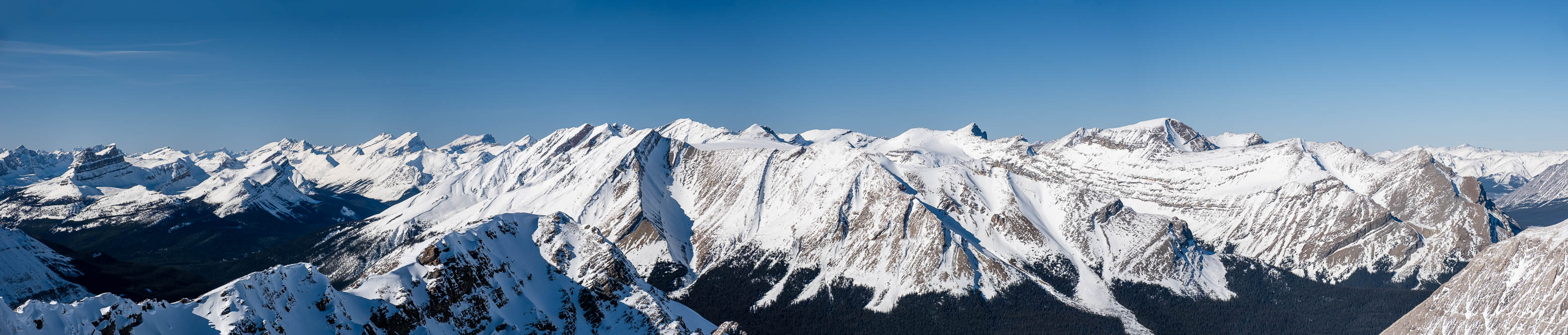Eventually we topped out on the summit ridge, and all that remained was an easy ~ 100 m ridgewalk east to the summit cairn! As expected, views were absolutely spectacular in every direction, and I was so stoked to be up on this mountain on such a perfect day! I've never experienced such close up views of Mounts Douglas and St. Bride directly to the east, and Redoubt Mountain, rising almost 600 m over Ptarmigan Lake, somehow looked small now! We spent a good half hour relaxing on the summit, but since we didn't have the earliest of starts on this one (and it was already almost 17:00), there wasn't a lot of time to hang around! After a quick dig around the snow-covered summit cairn with no luck locating a register, I left one of my little film canisters, finished taking a few pictures, and followed my dad, who had already gotten a head start back down the mountain.
