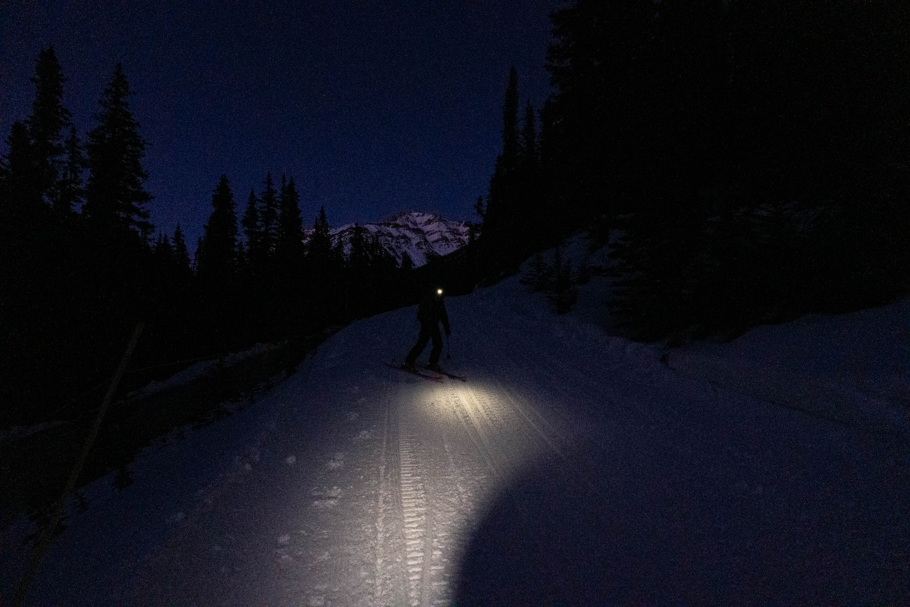 We found some nice snow below Deception Pass, and enjoyed a few more fun-filled turns in the golden, evening light, before bombing down the final section to Ptarmigan Lake. Tucking and carrying as much speed as we could, we came to a halt just short of the lake and donned the skins for a long 10 km back to the parking lot...Which actually turned out to be quite a cruise itself! Most of the trail back to the ski resort is sloped downhill - allowing for a good amount of effortless gliding - and before we knew it, we were passing back through the ski resort, switching back to ski-mode and ripping down the ski-out as darkness fell.