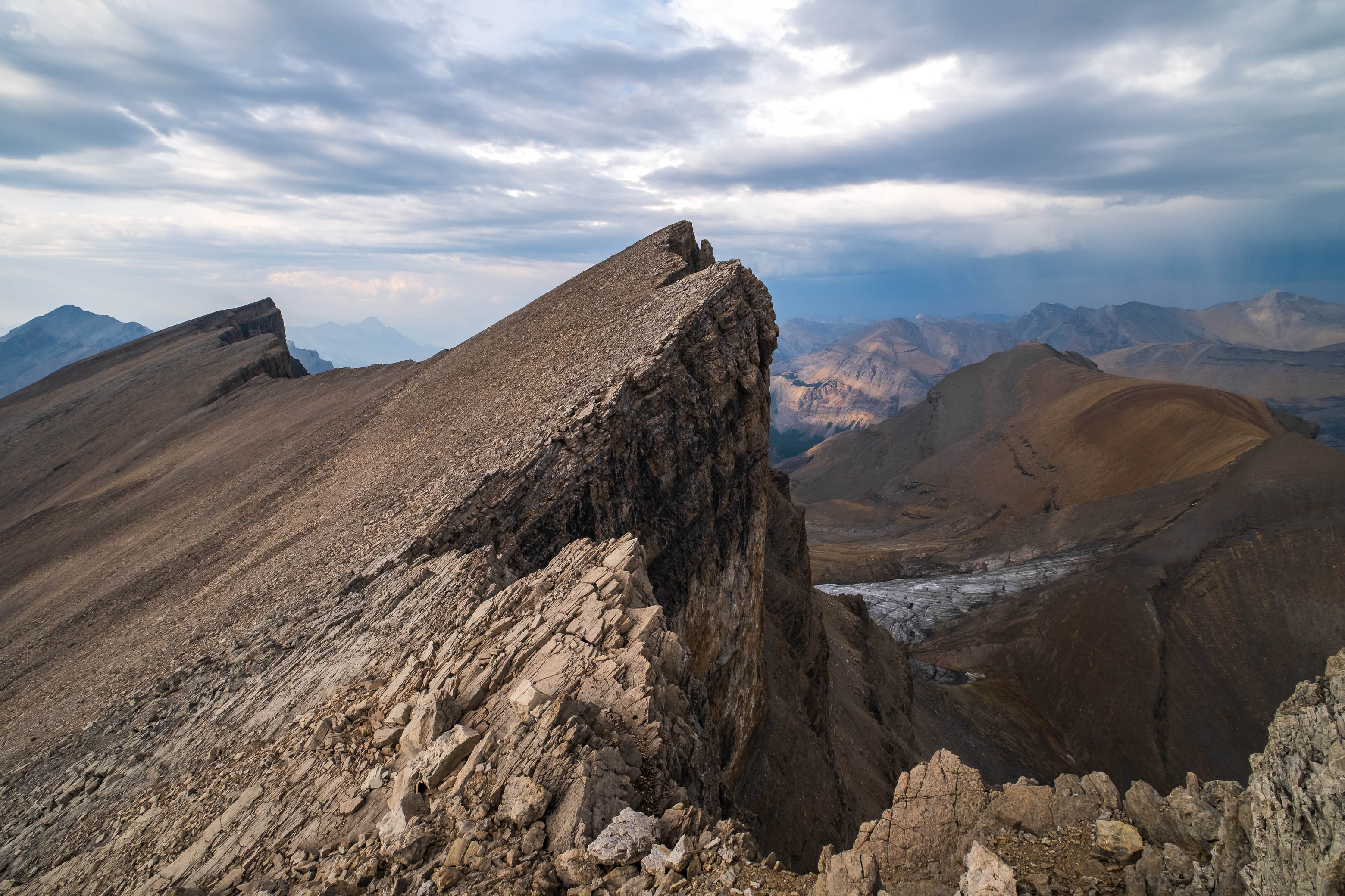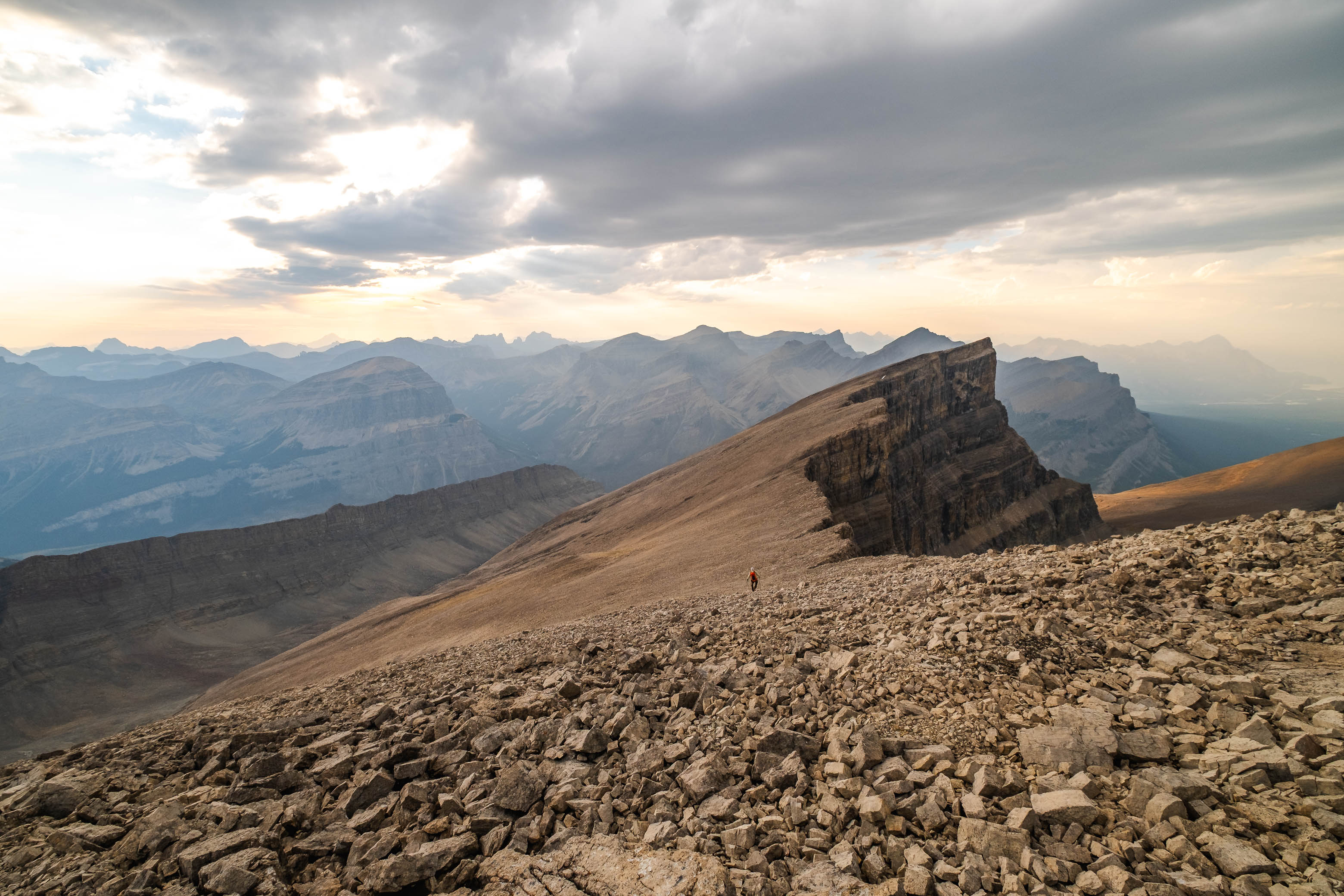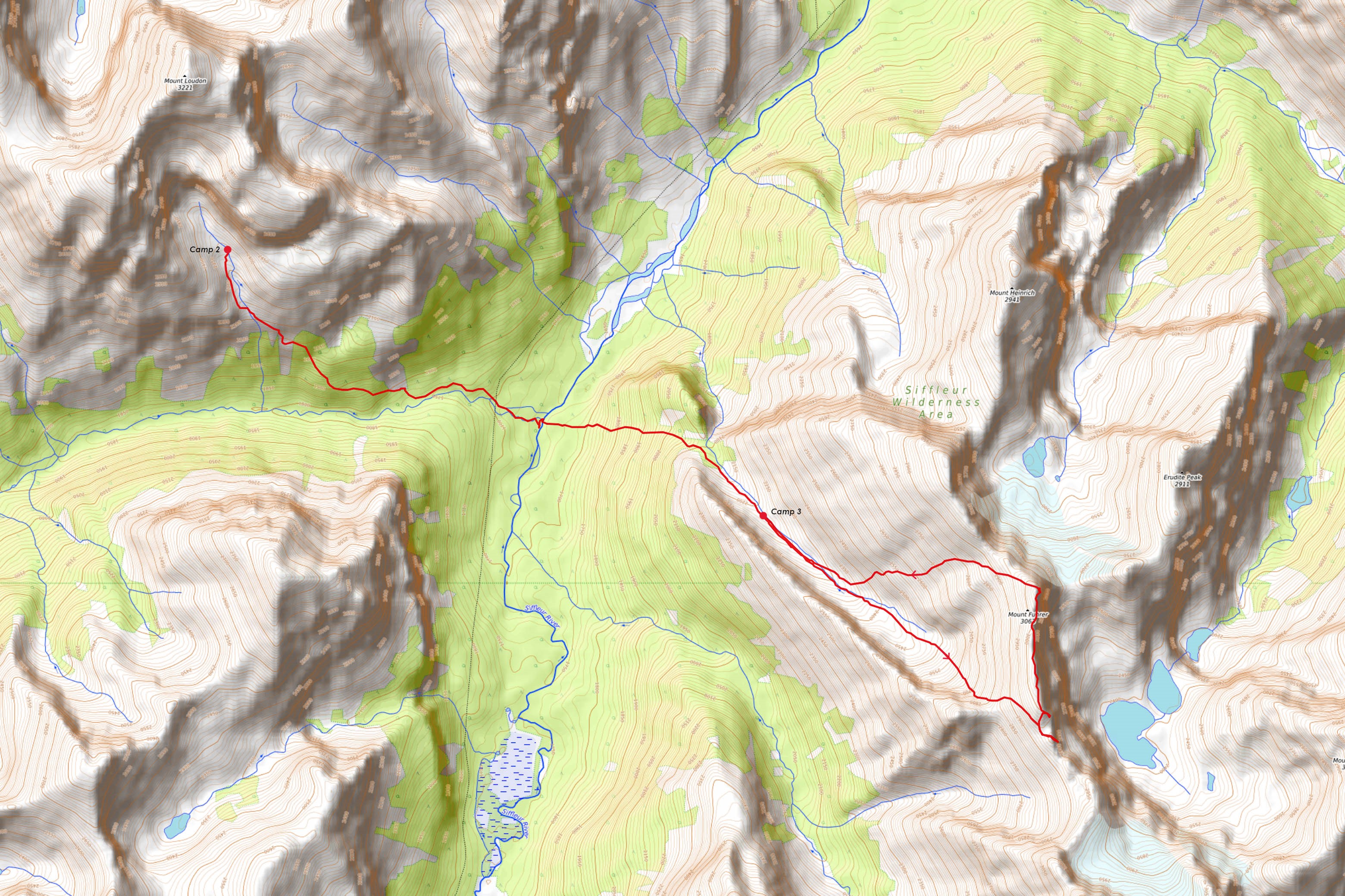 Prior to planning a trip up the Siffleur River - with sights set on climbing Siffleur Mountain and Mount Loudon - I had honestly never heard of Mount Fuhrer before. Sitting deep in the heart of the Siffleur Wilderness Area and rising to 3063 meters, Fuhrer isnβt quite tall enough to stand out strictly from a numbers perspective, and when viewed from surrounding peaks is almost always overshadowed by the much loftier Abstruse Peak (Mount Perren) - rising to nearly 3300 meters, immediately up a southern connecting ridge. With that being said, Fuhrer definitely deserves more attention than it gets! It's a mighty impressive peak in its own right, with that imposing NE face looming over the innocent scree mounds that are Mount Heinrich and Erudite Peak, but what really sold me on Mount Fuhrer was its location, sitting directly across the valley from my two main objectives (i.e. It would've been silly not to tag it!) and overlooking the four beautiful Fuhrer Lakes, providing a unique birds-eye view of this seldomly visited area.