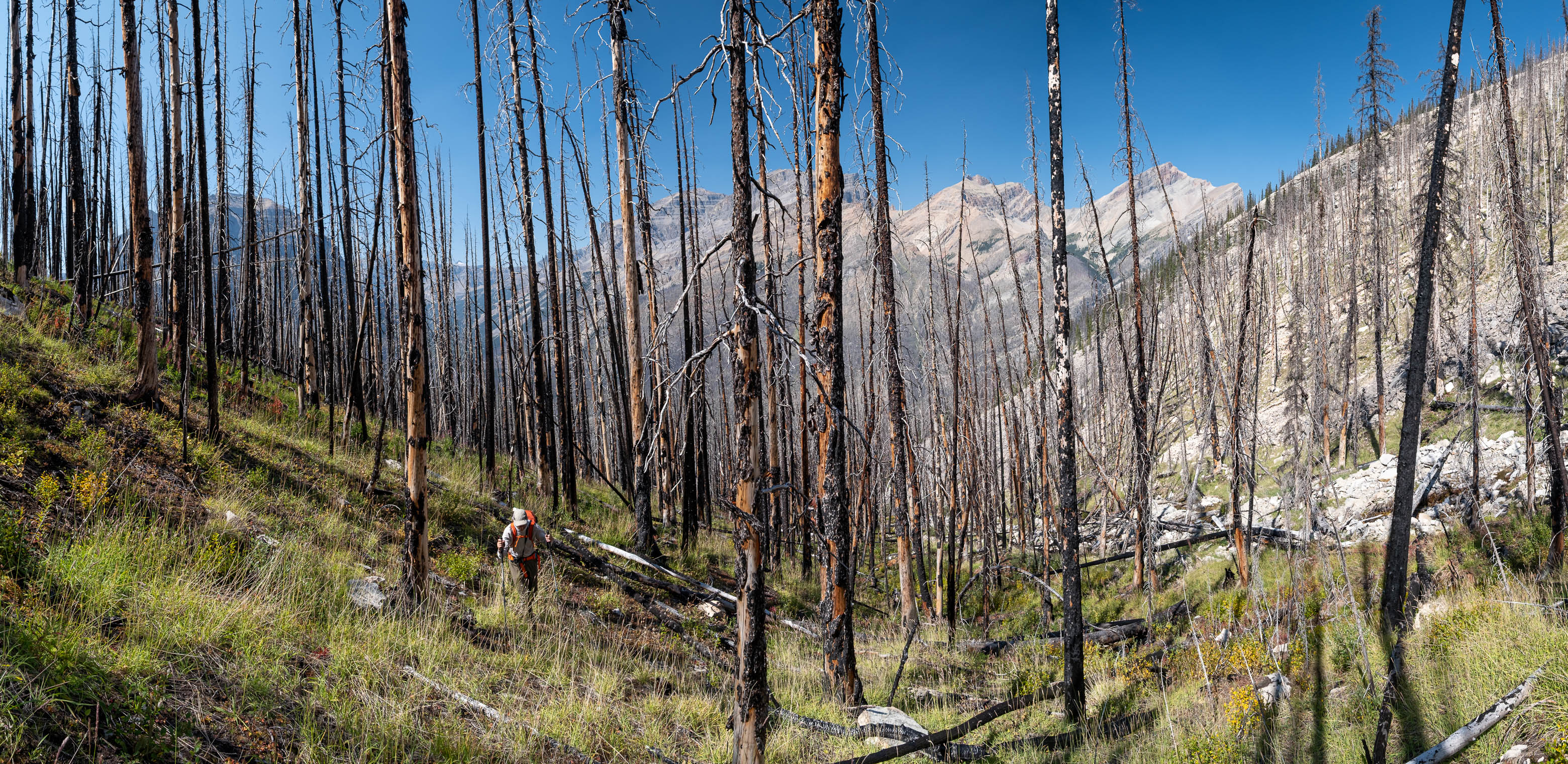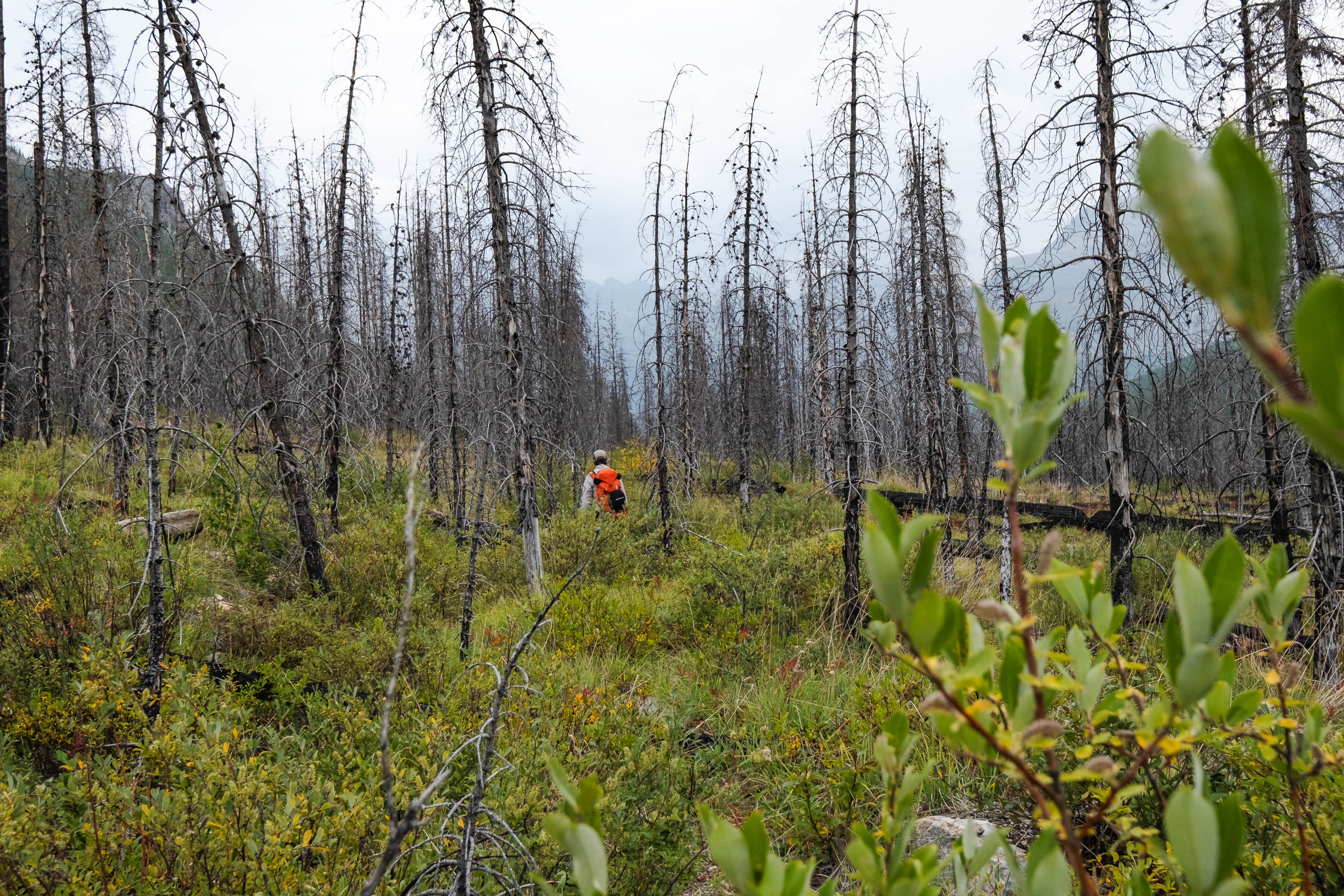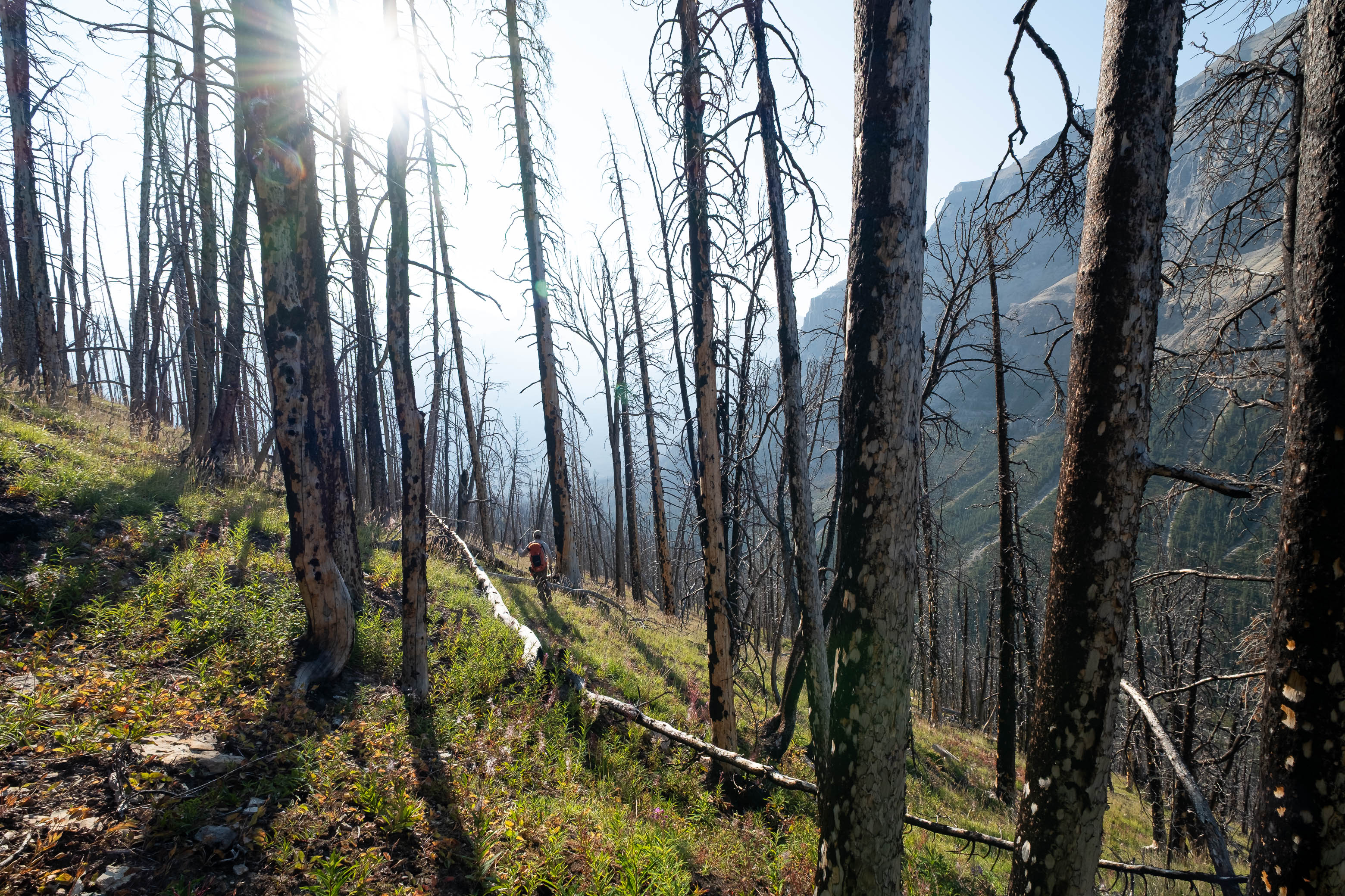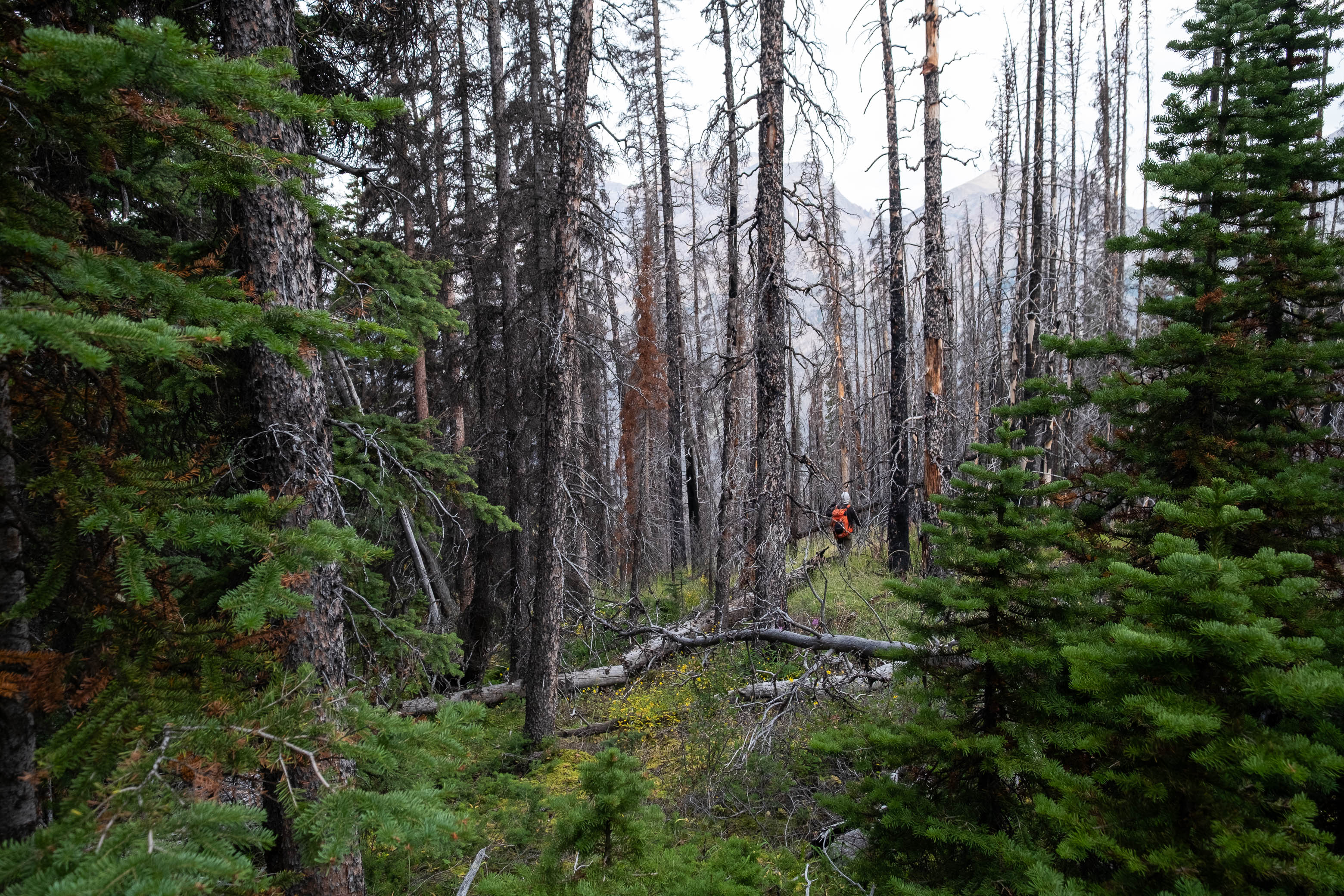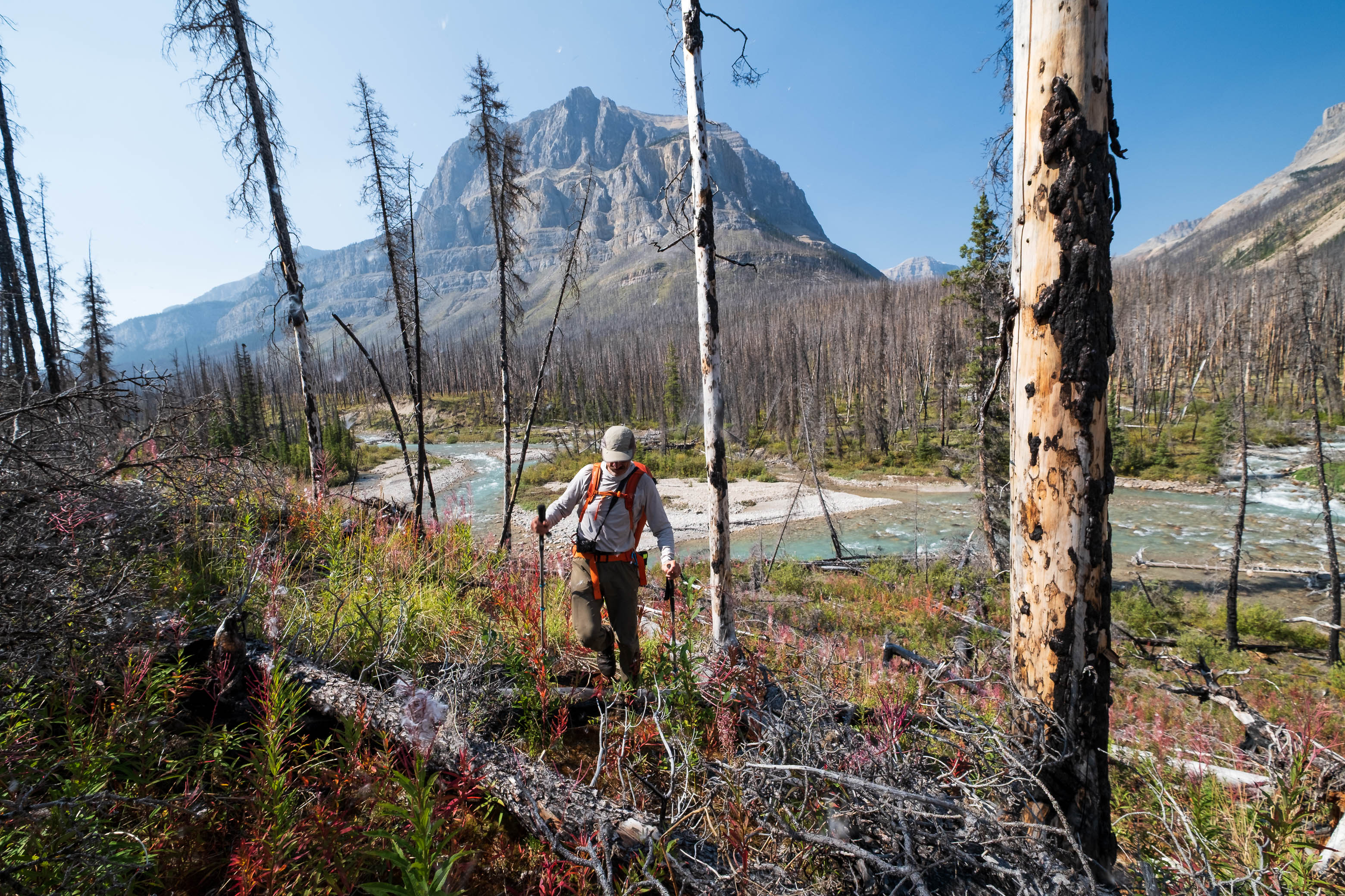 Hiking back down to the Siffleur River through burnt, open forest. Smooth sailing right now, but I can't imagine what this will be like when all these trees eventually topple over!