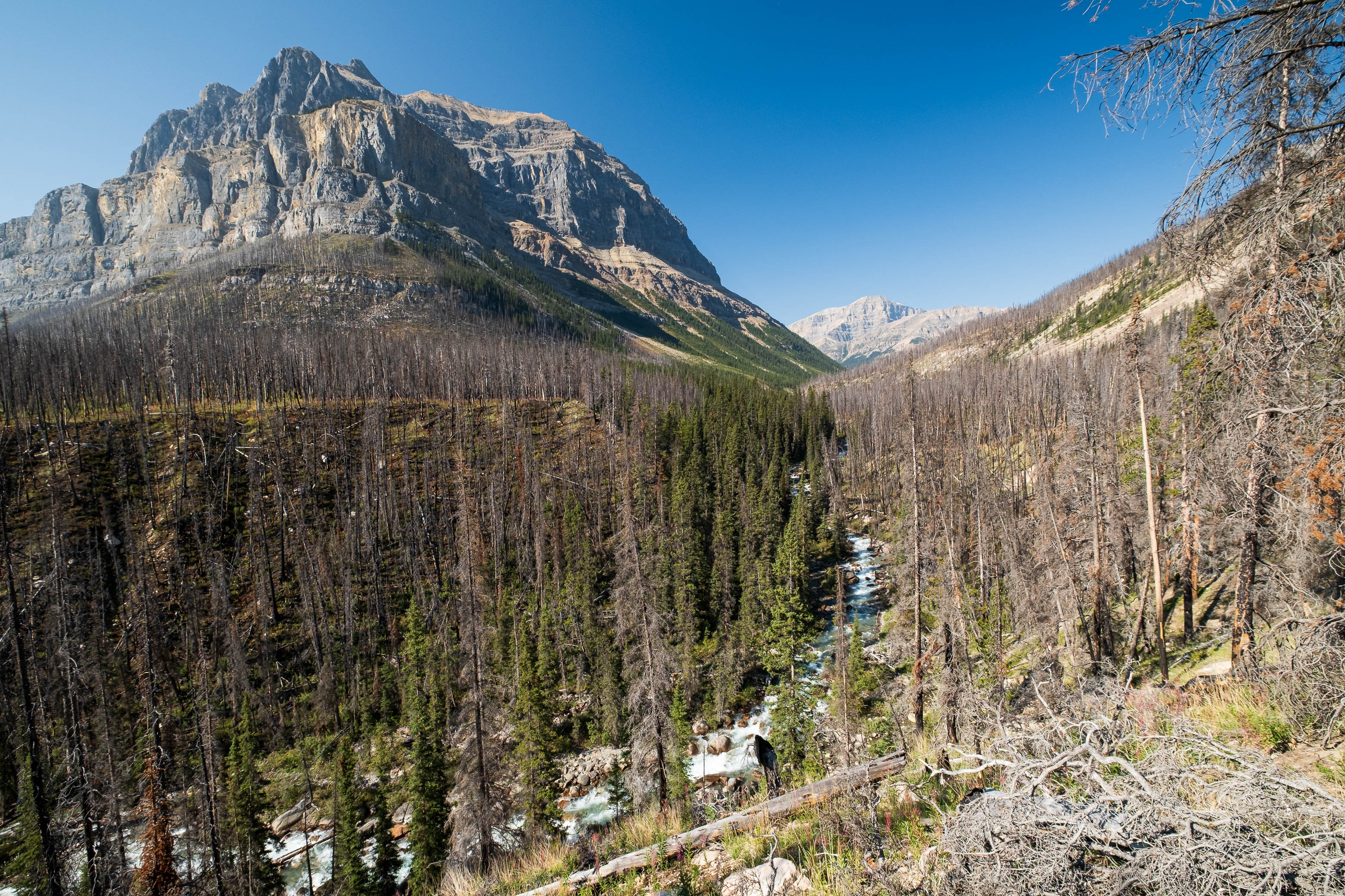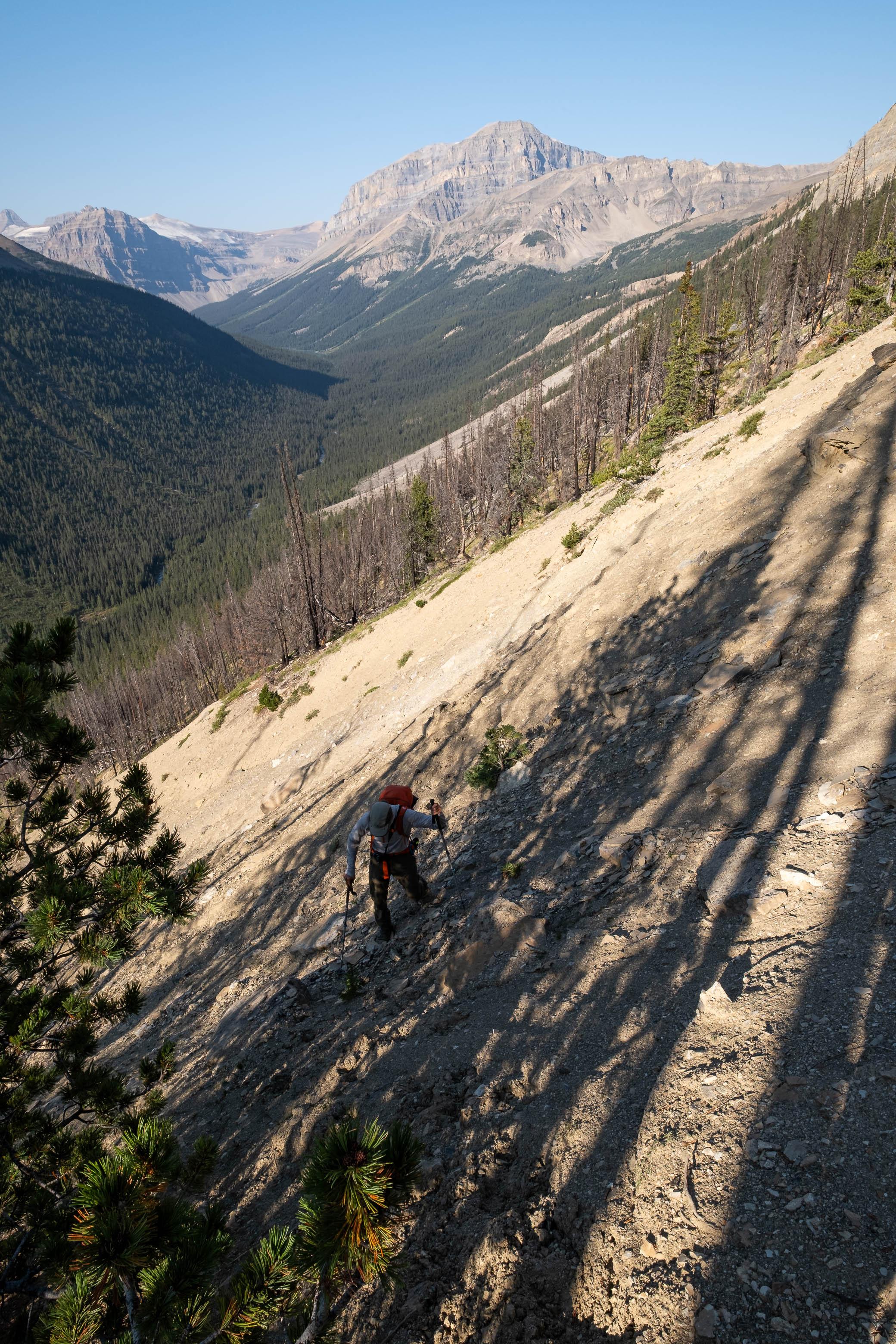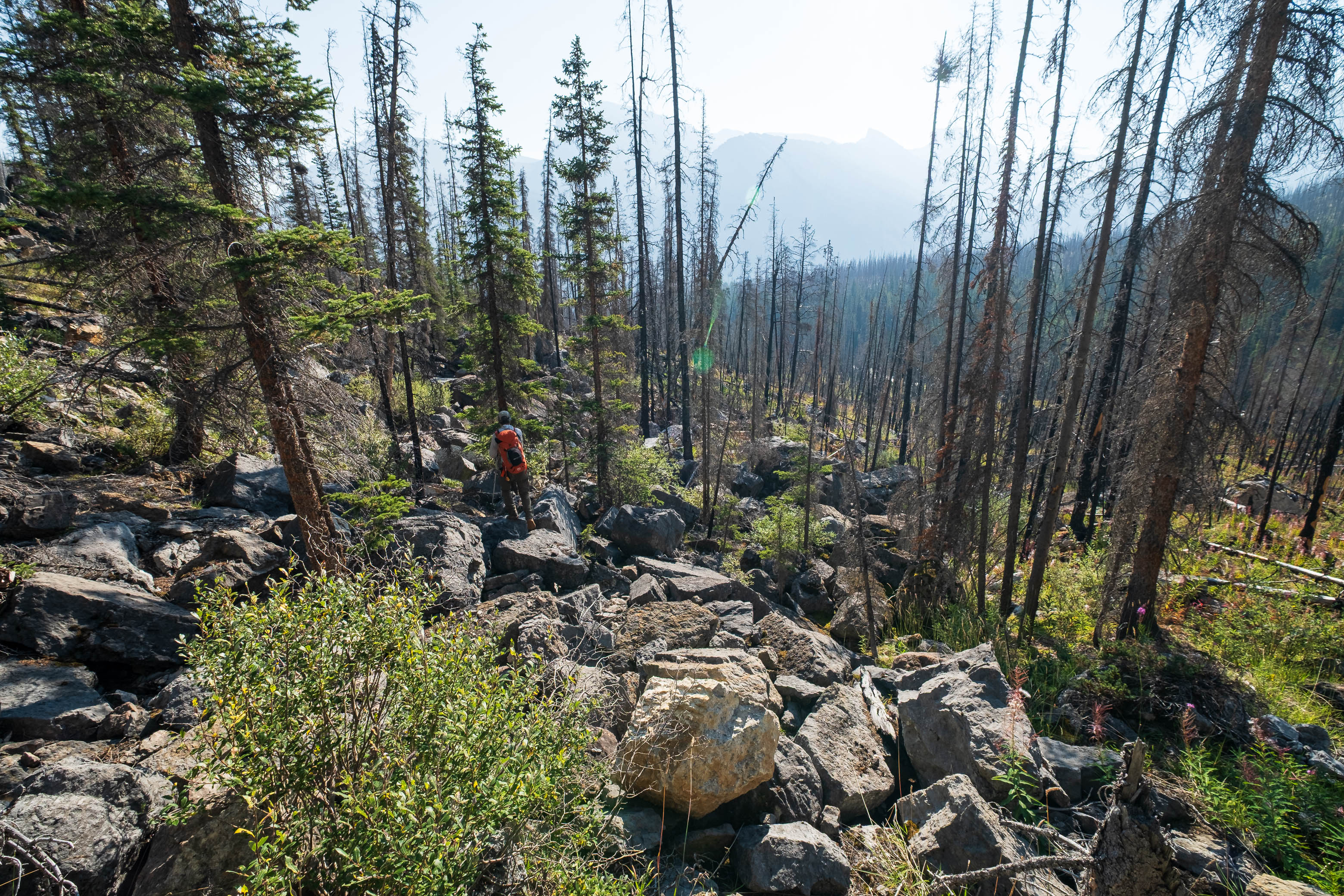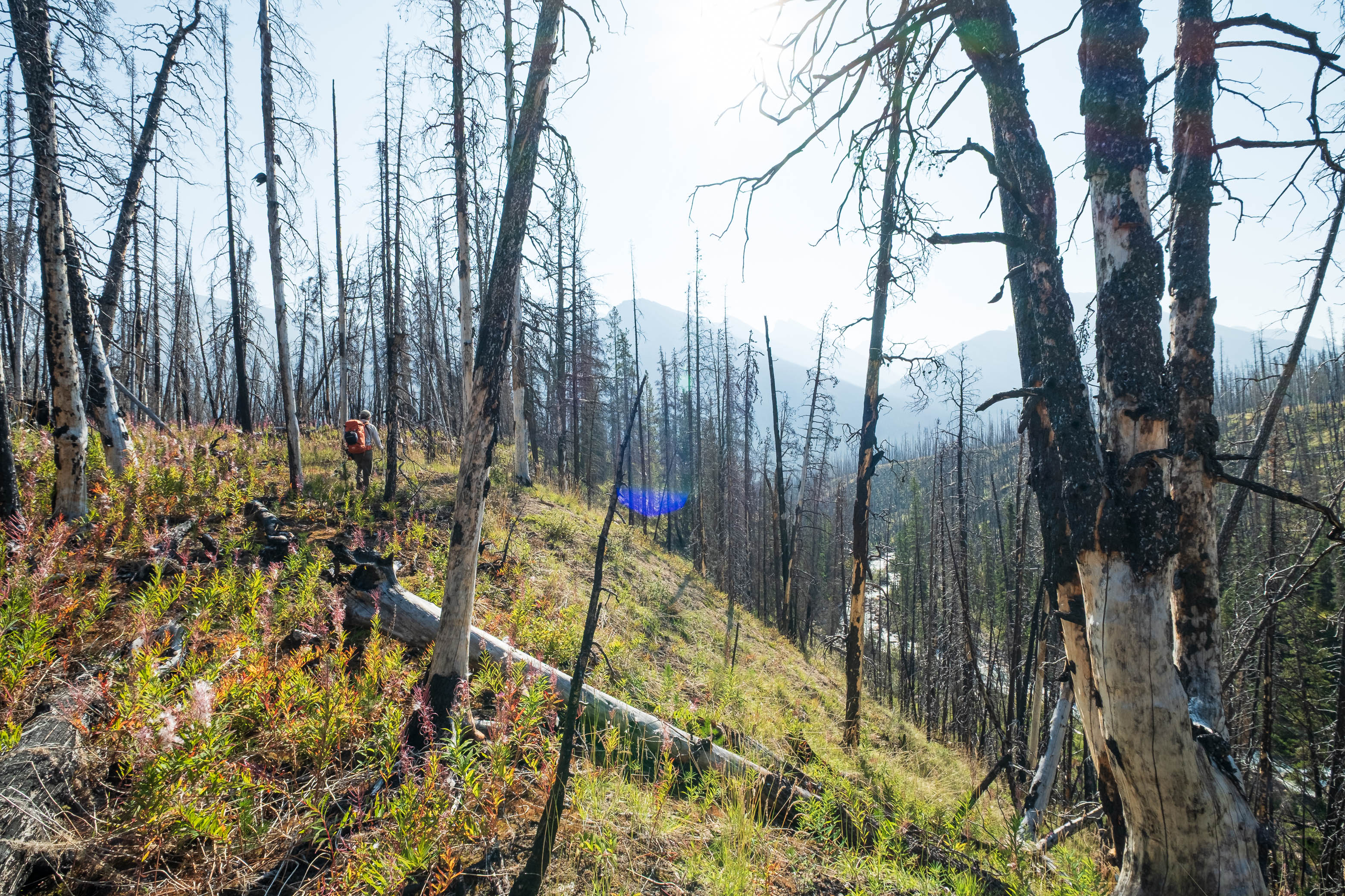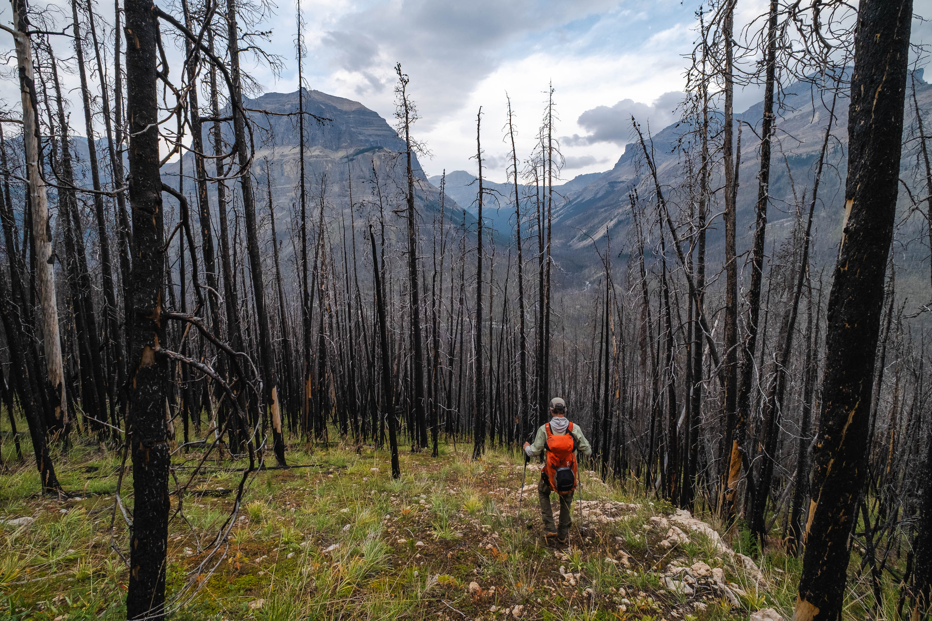 Hiking back down to the Siffleur River through burnt, open forest. Smooth sailing right now, but I can't imagine what this will be like when all these trees eventually topple over!
