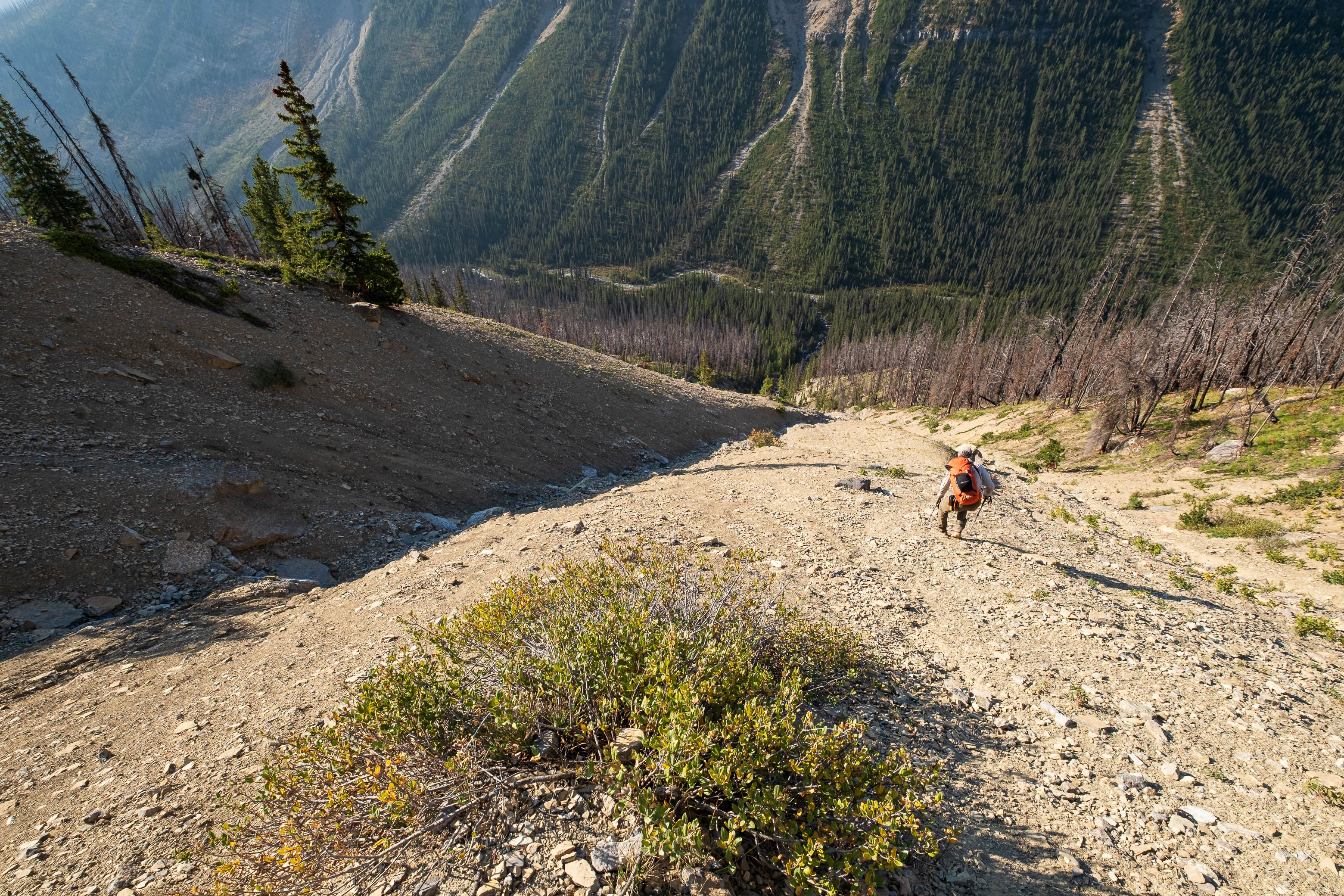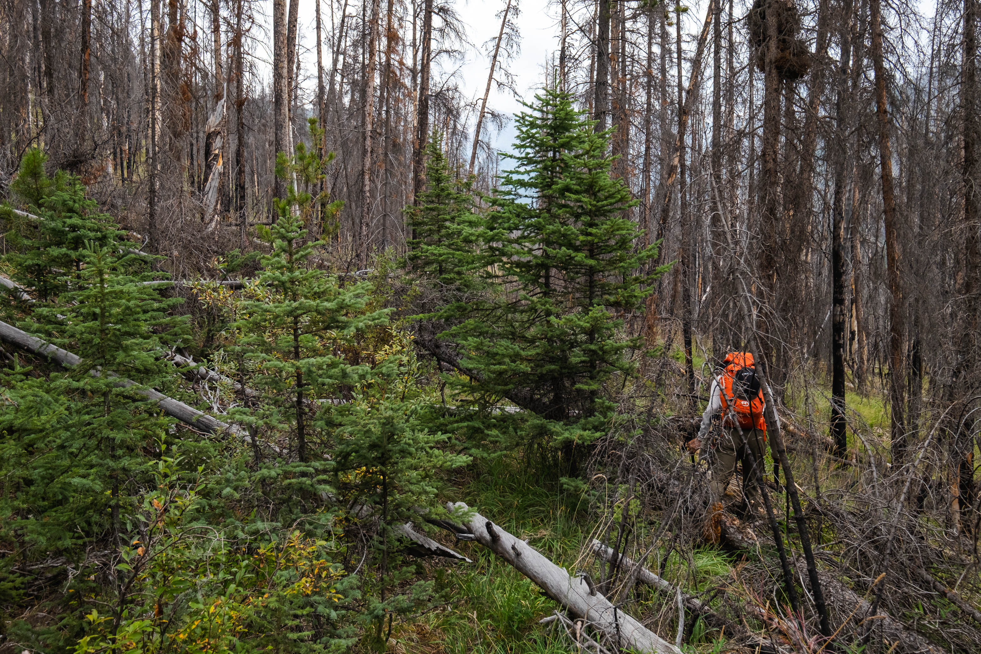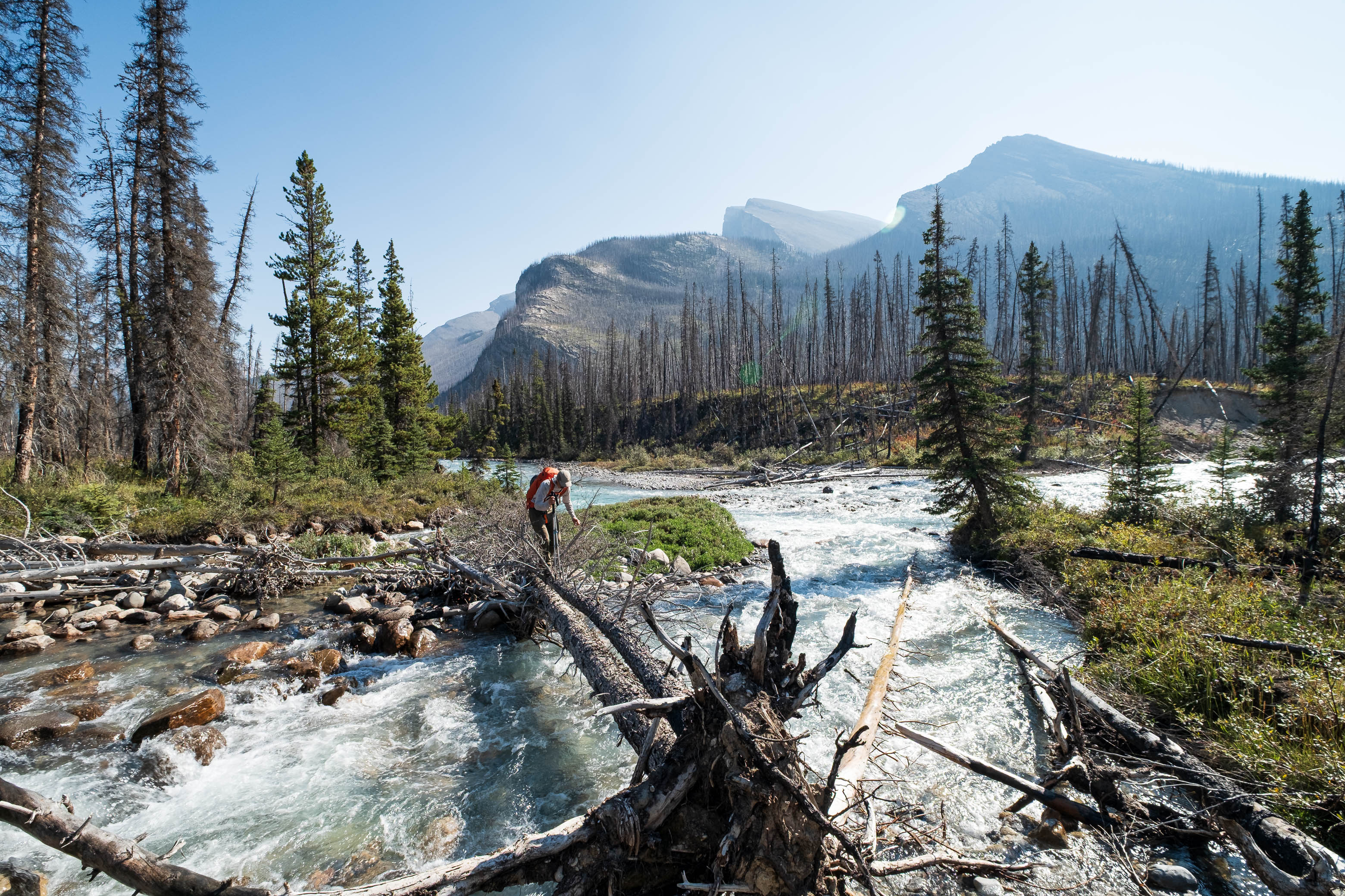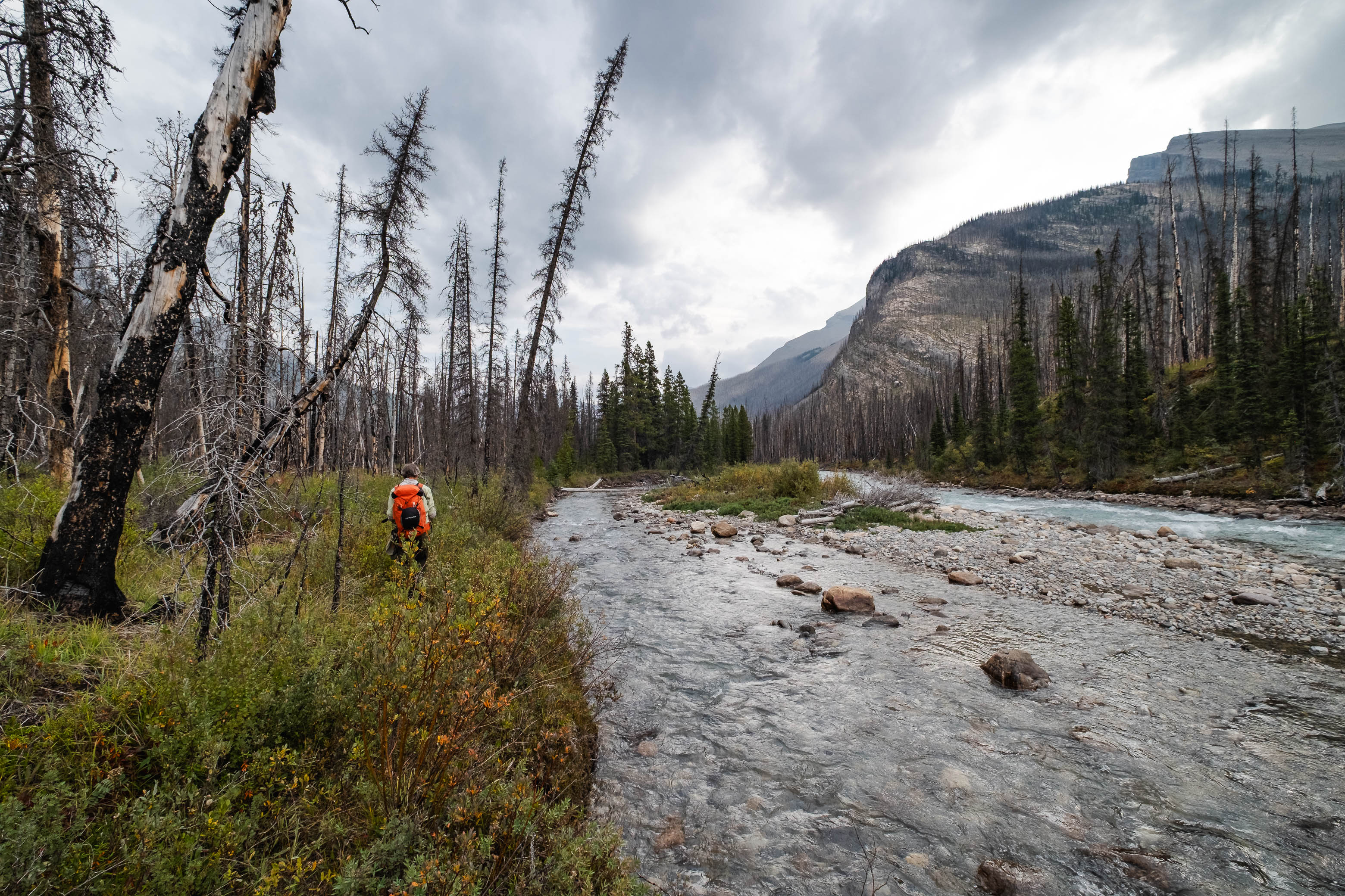 Hiking back down to the Siffleur River through burnt, open forest. Smooth sailing right now, but I can't imagine what this will be like when all these trees eventually topple over!