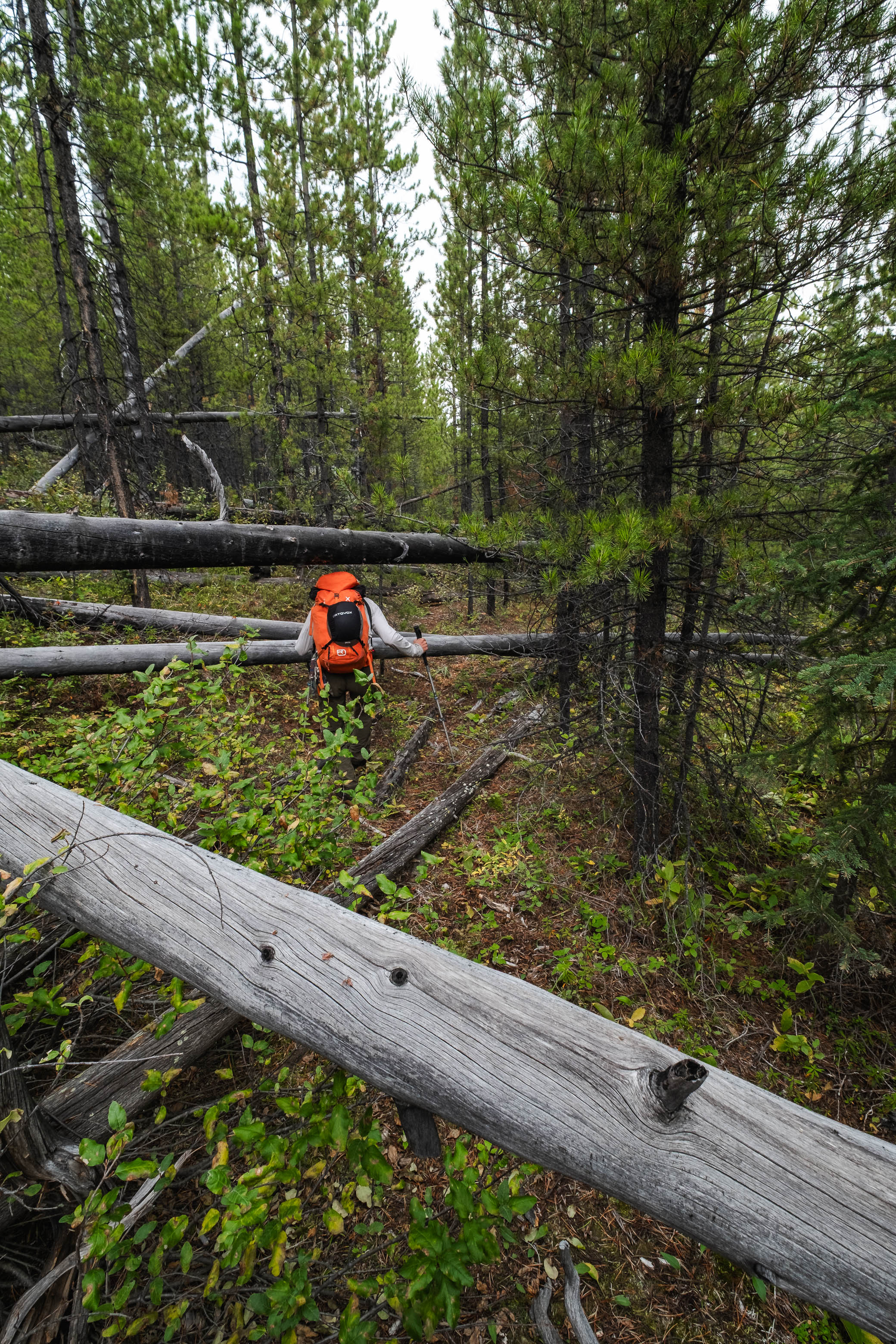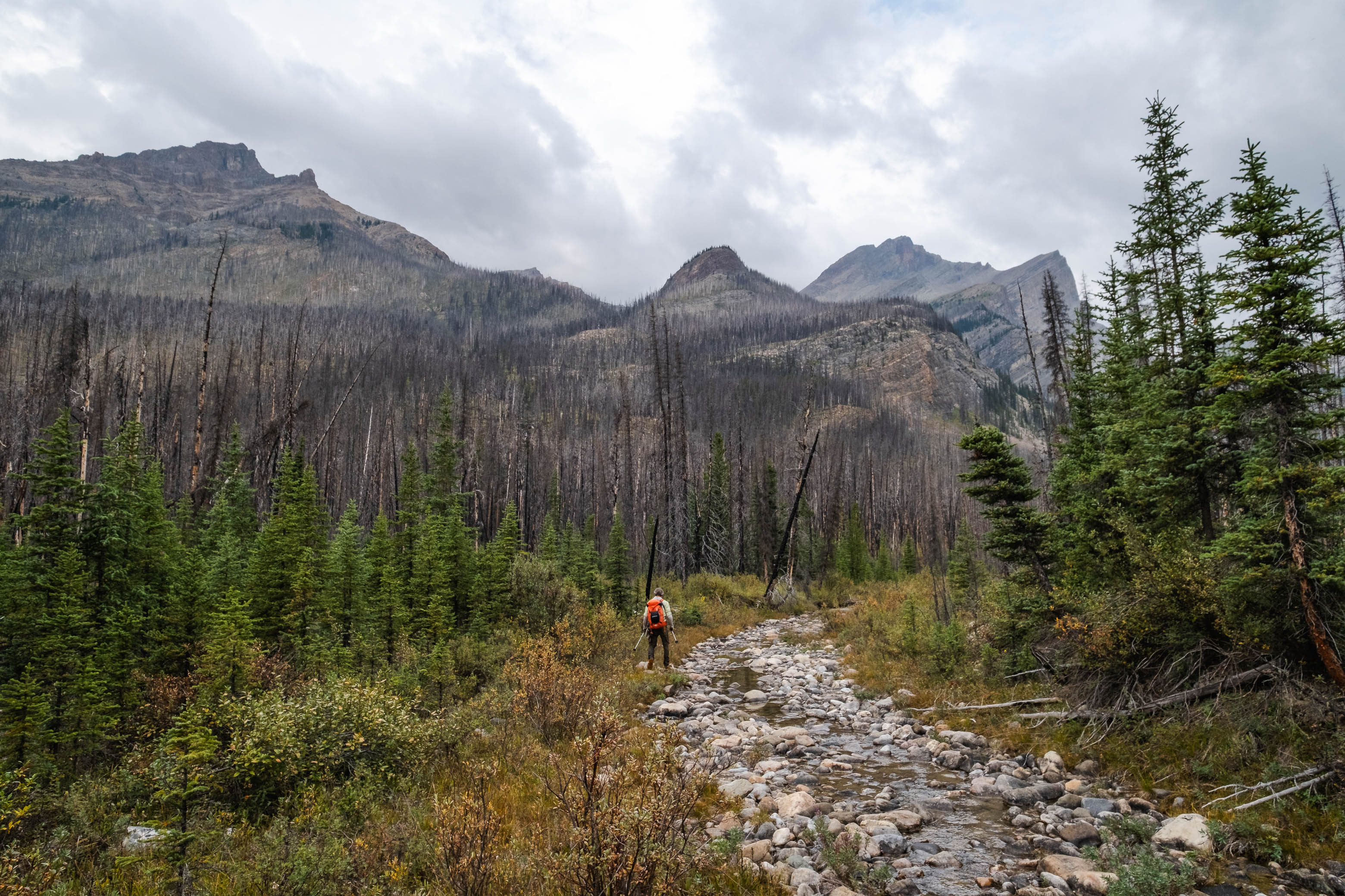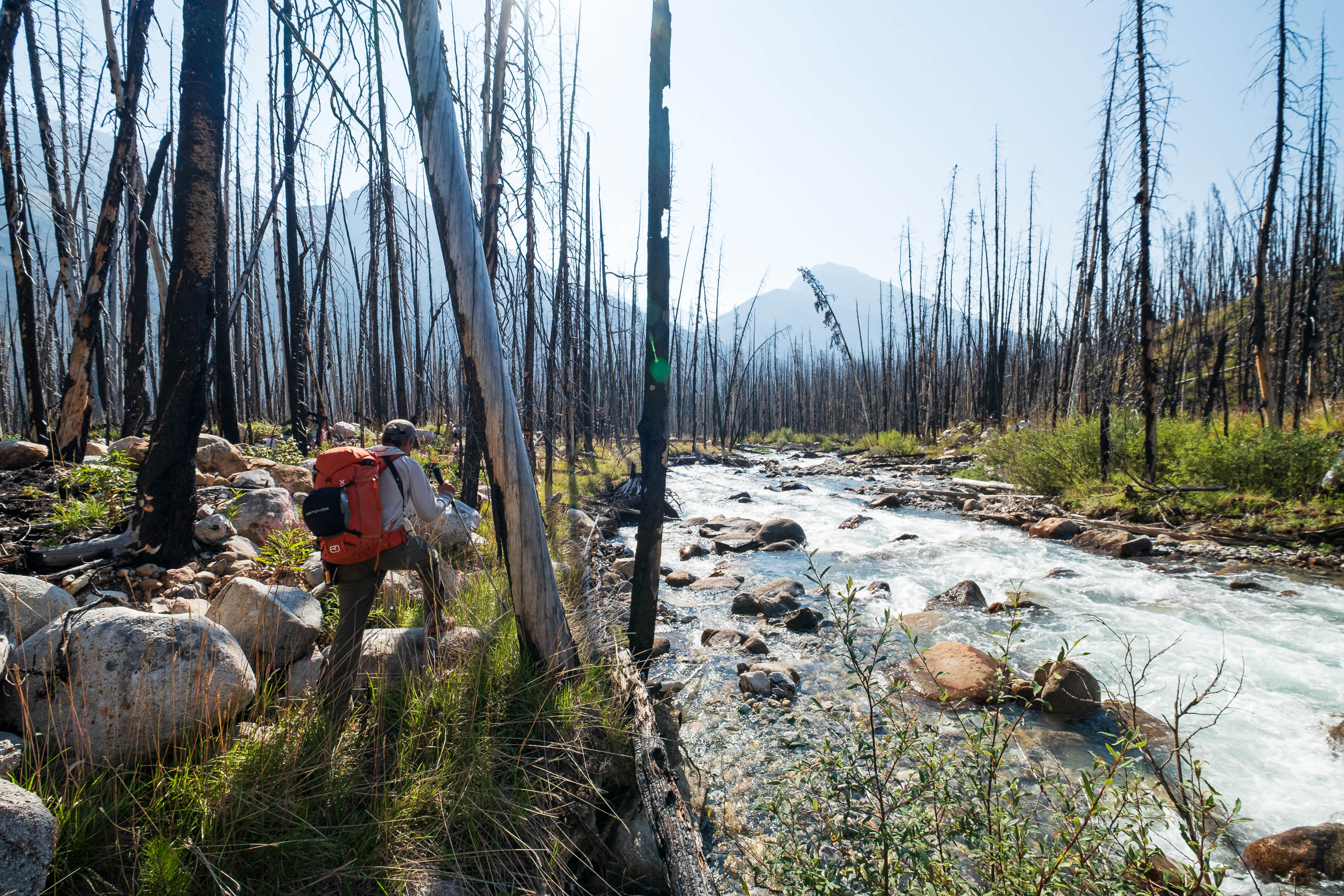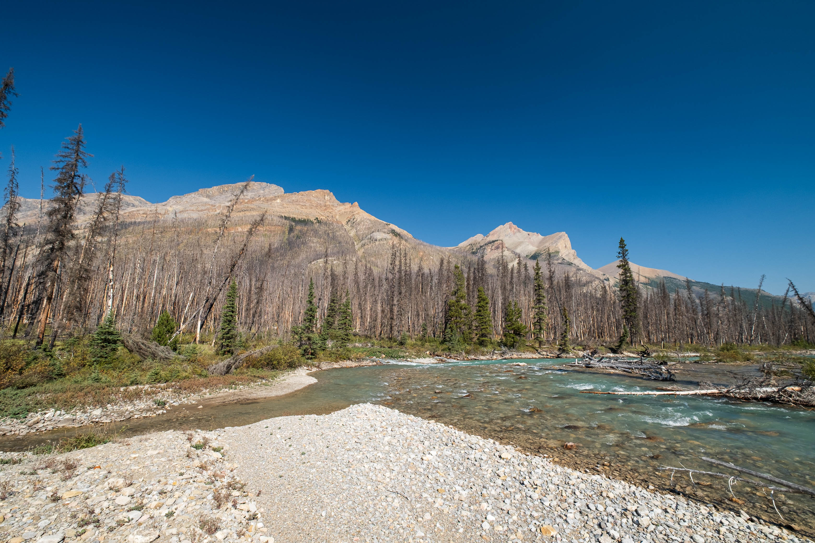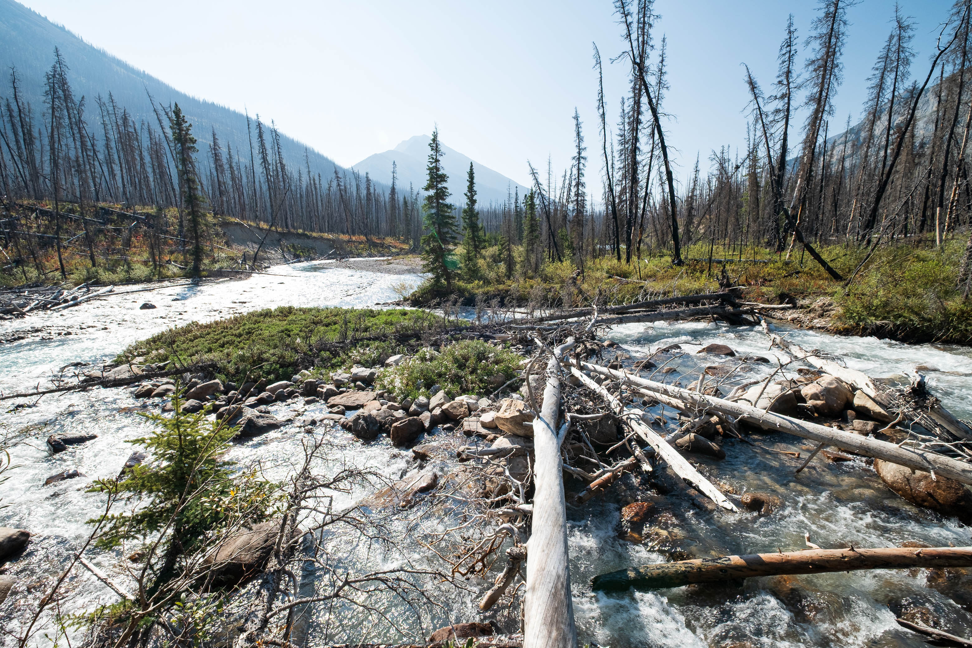 Hiking back down to the Siffleur River through burnt, open forest. Smooth sailing right now, but I can't imagine what this will be like when all these trees eventually topple over!