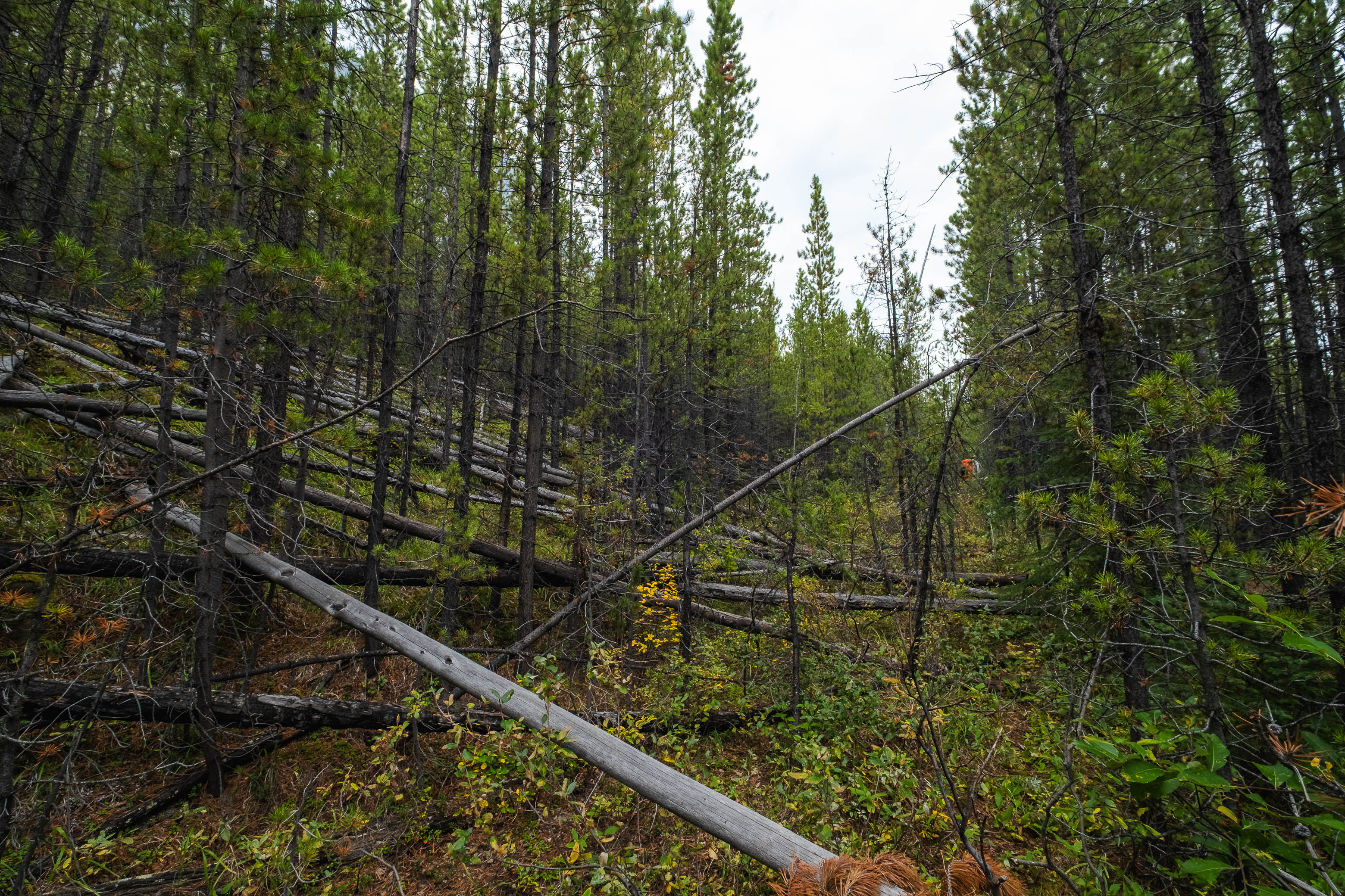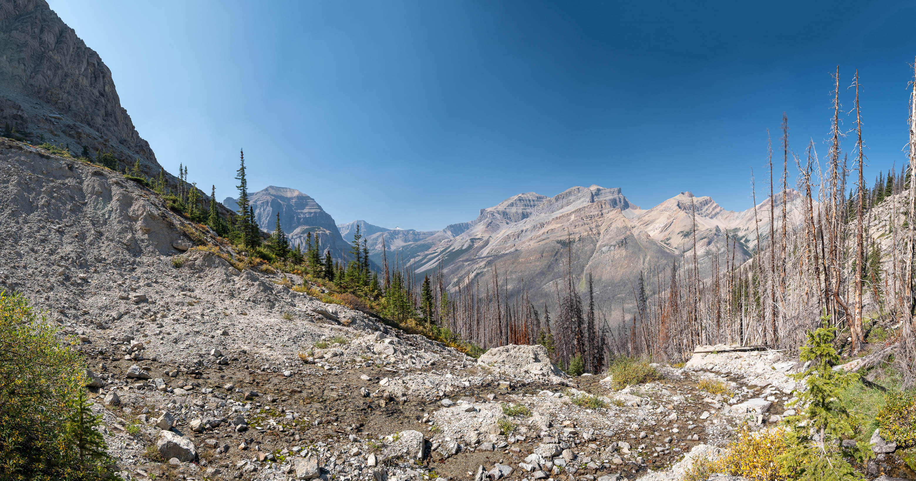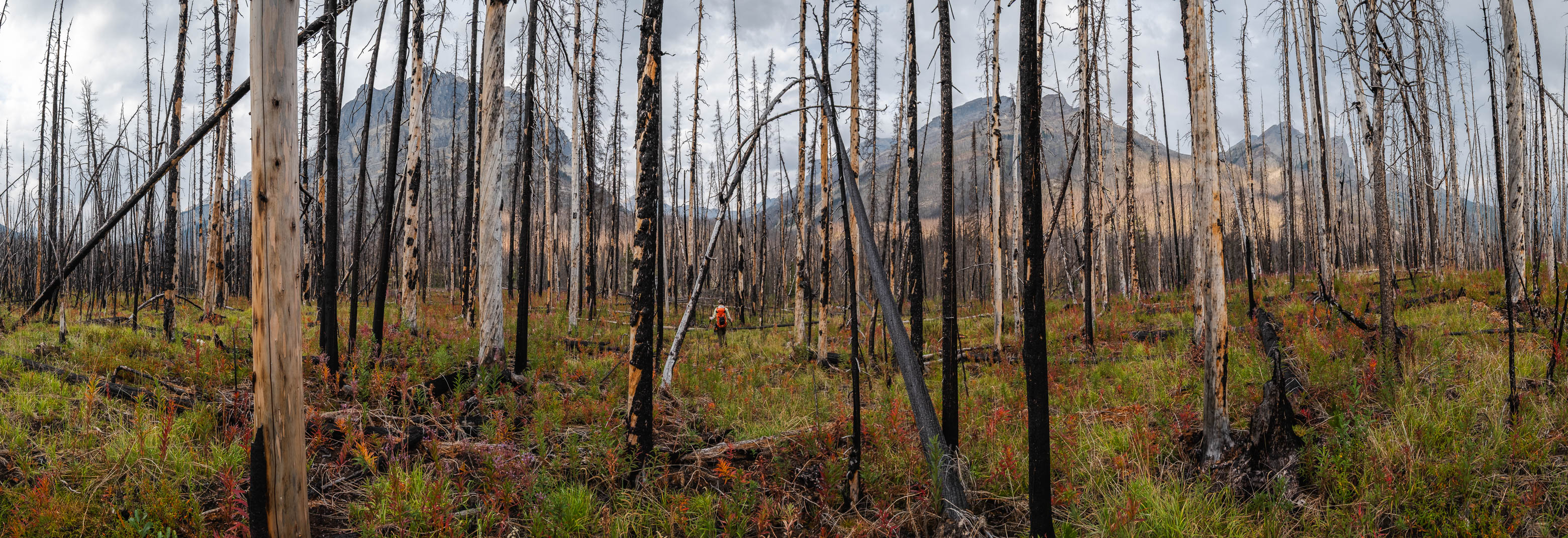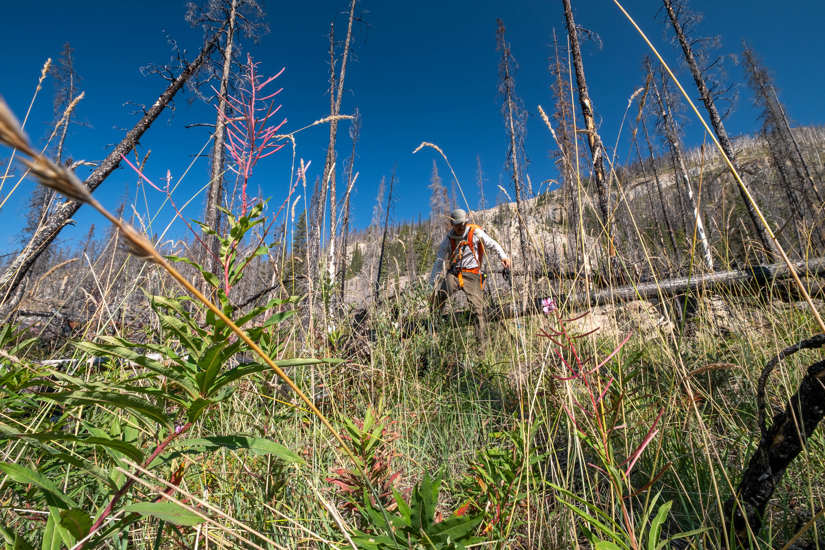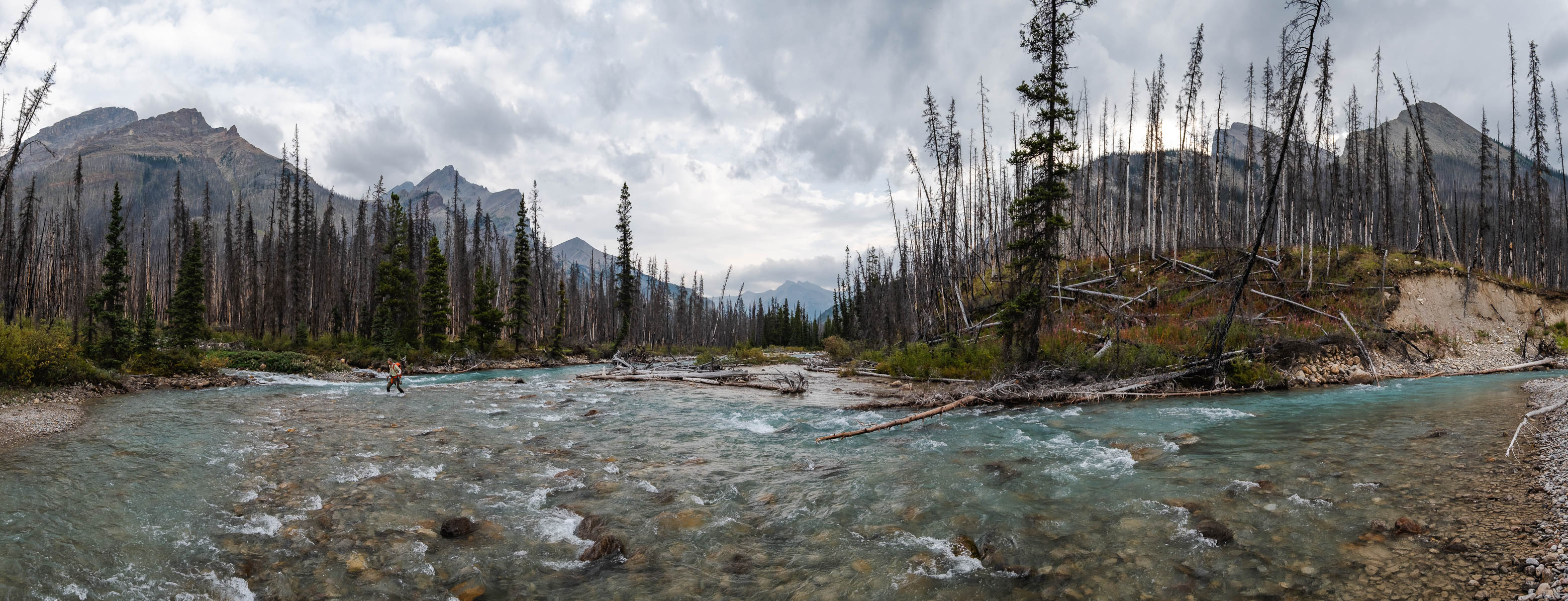 Hiking back down to the Siffleur River through burnt, open forest. Smooth sailing right now, but I can't imagine what this will be like when all these trees eventually topple over!