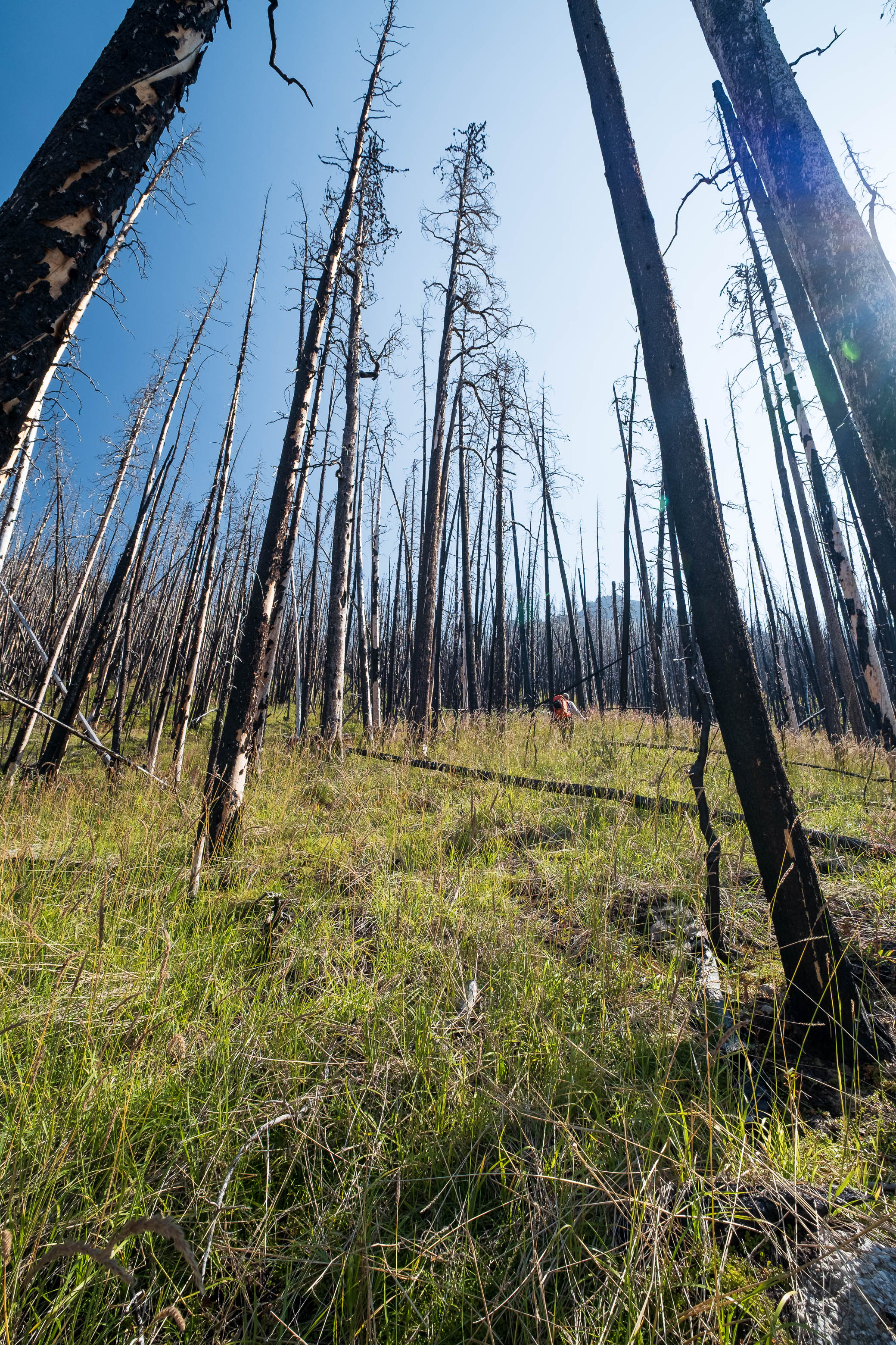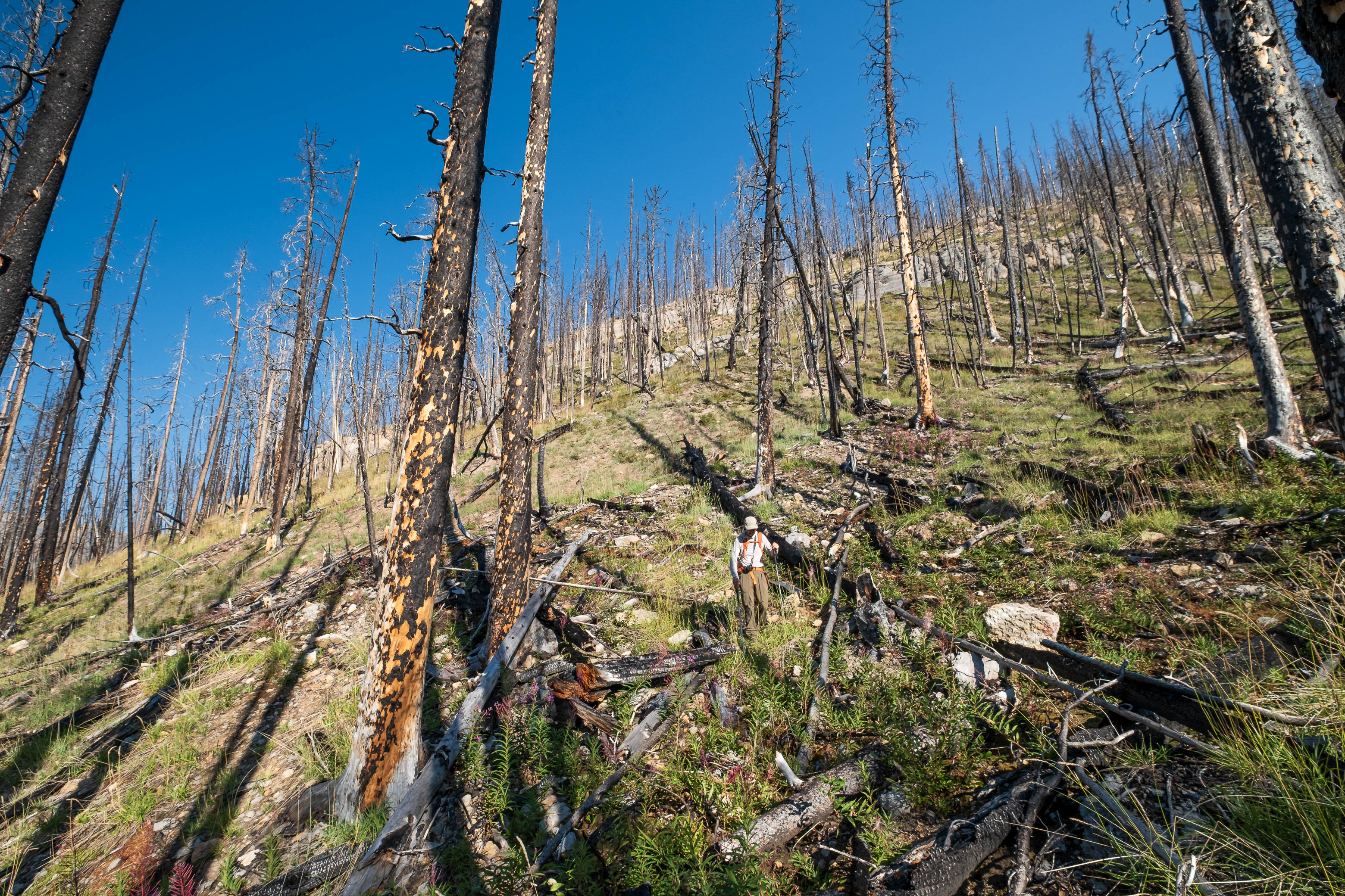 Descending through the burn along Porcupine Creek.