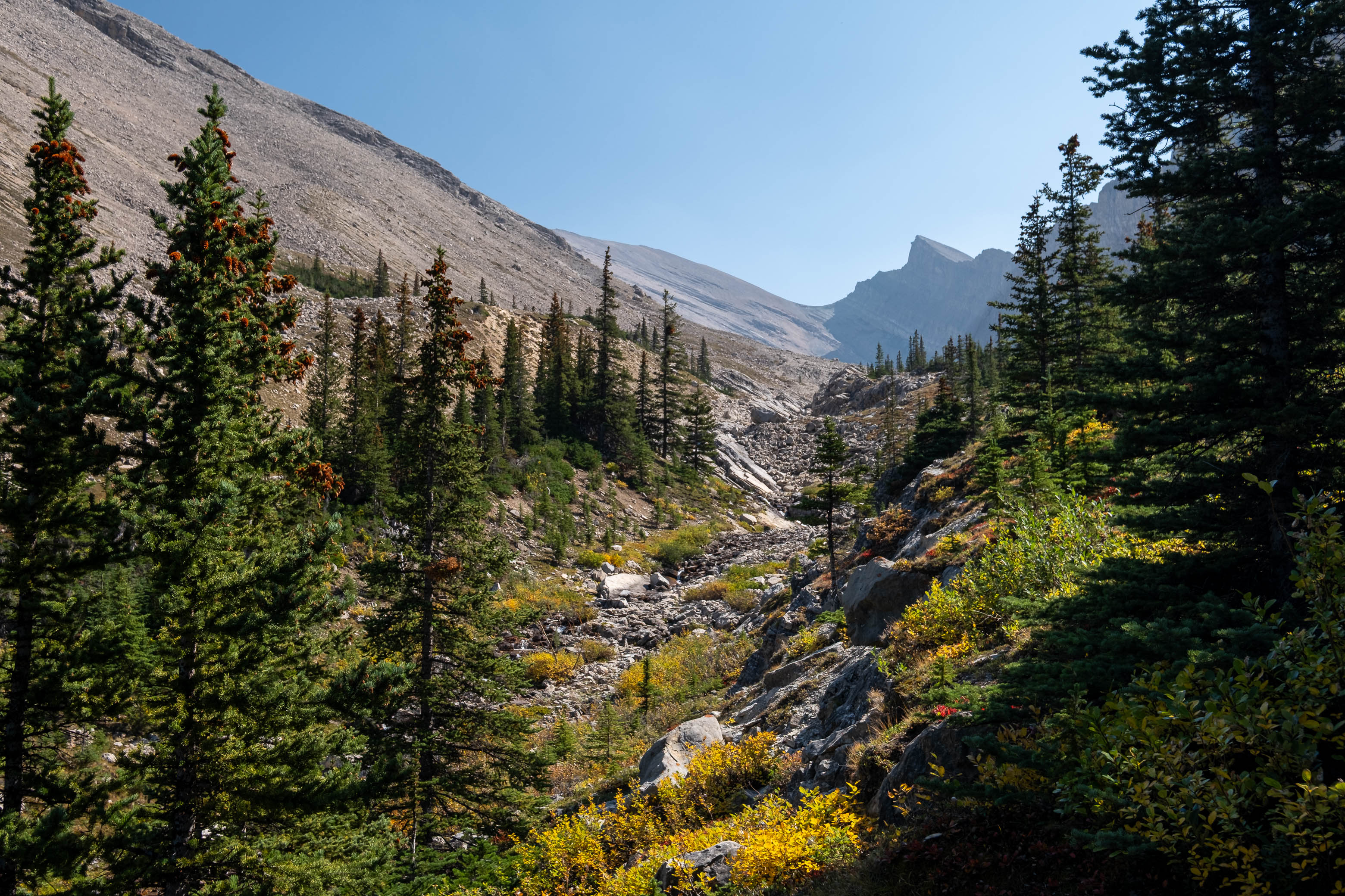 Approaching treeline as we enter "Chortling Marmots Creek" Valley.