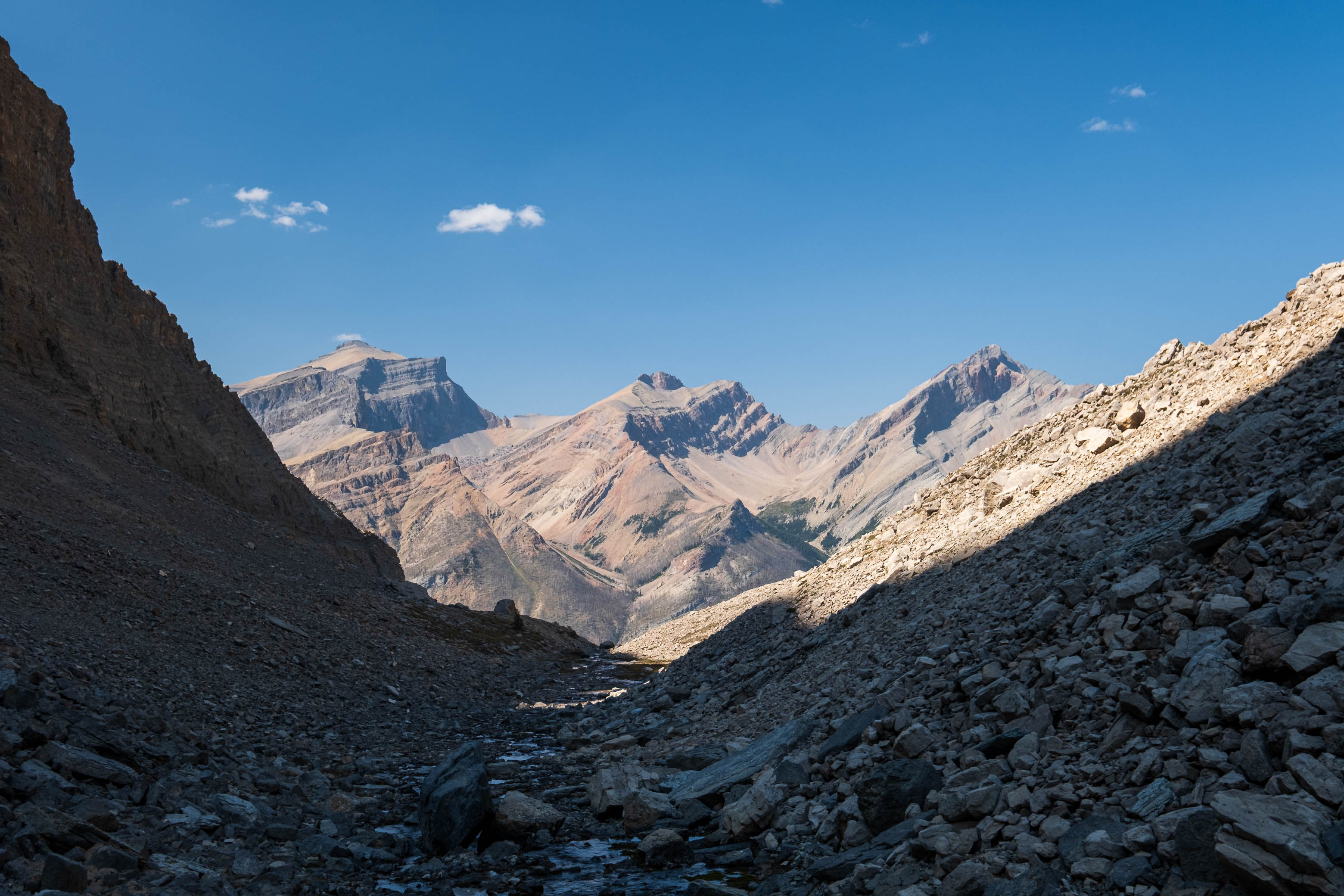 Continuing up the valley alongside "Chortling Marmots Creek". What a luxury it is to have running water!