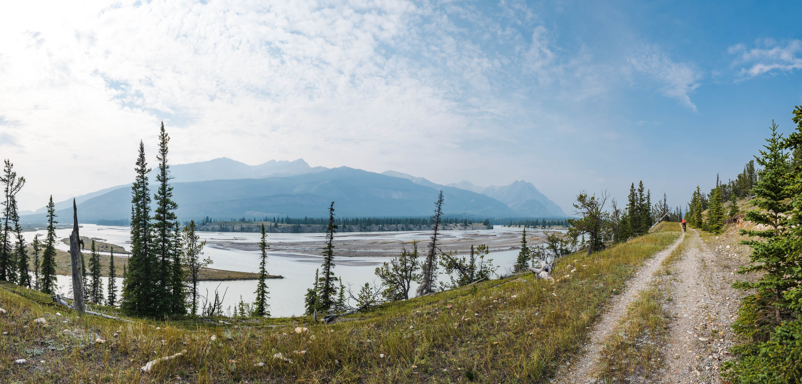 We were beyond grateful to have our bikes for the final 8 km peddle through the Kootenay Plains Ecological Reserve, and rolled up to the parking lot with a handful of families out enjoying the Siffleur Falls Trails on what had turned out to be a beautiful, albeit smokey afternoon.