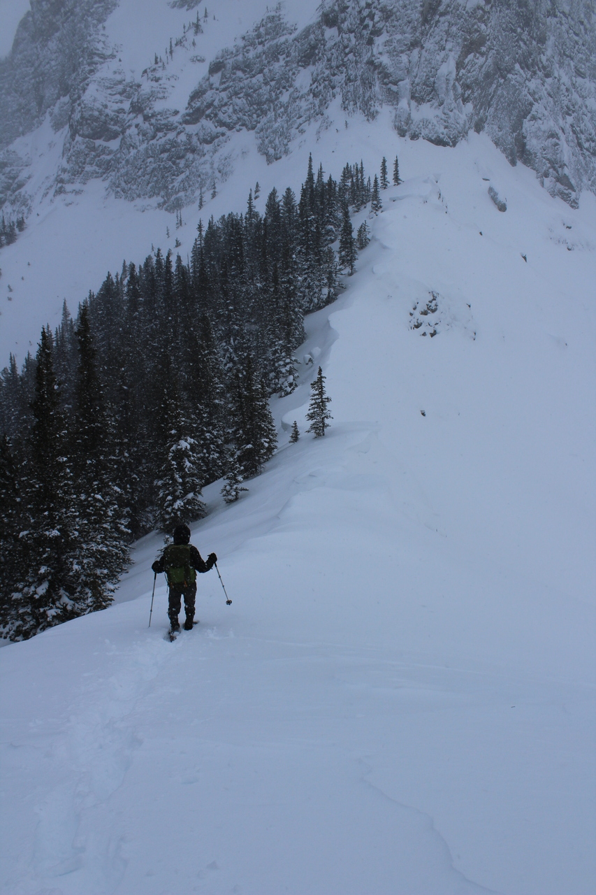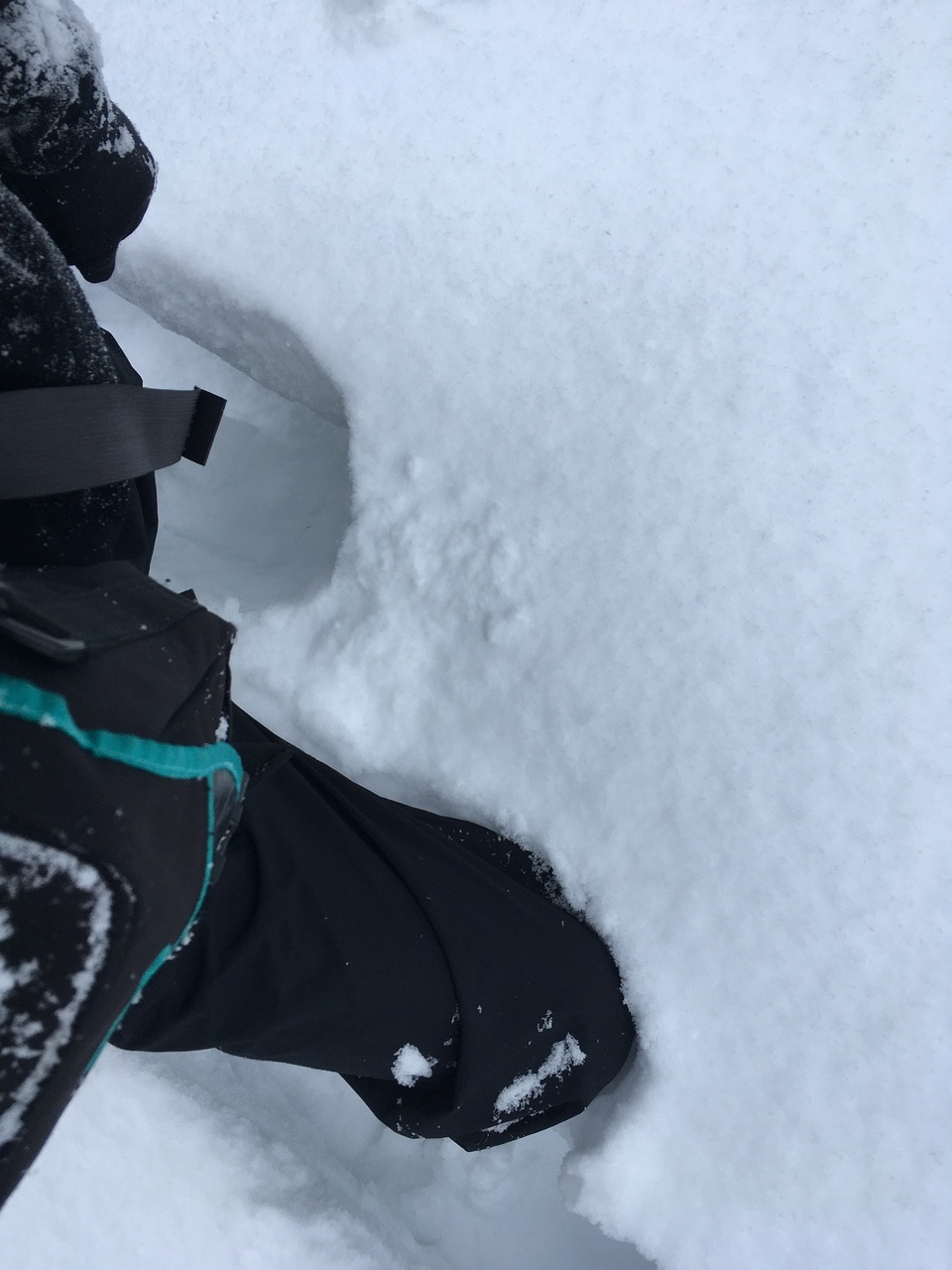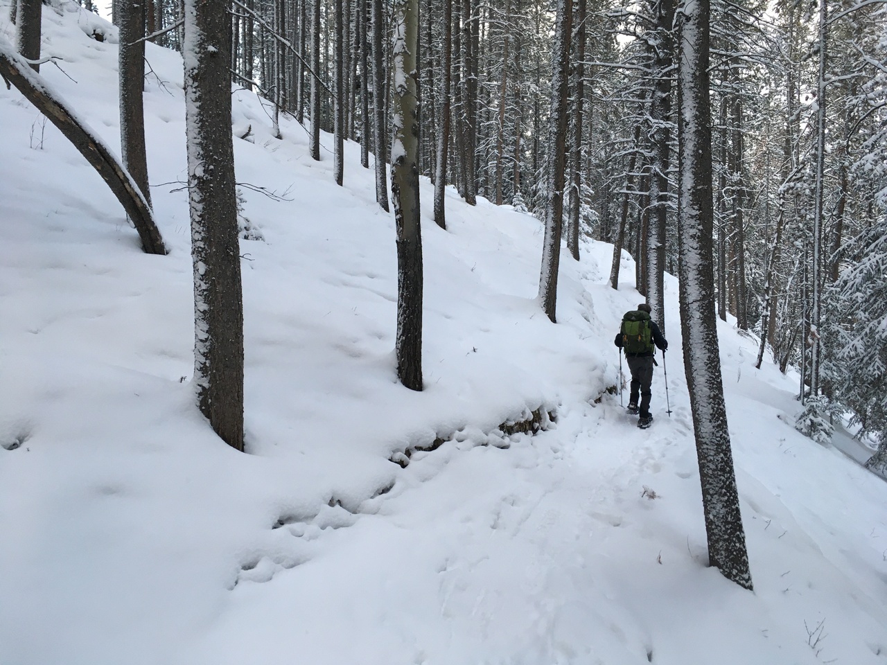 The higher we climbed, the deeper the snow became! Luckily a faint indent of a previous trail led the way...at least for now!