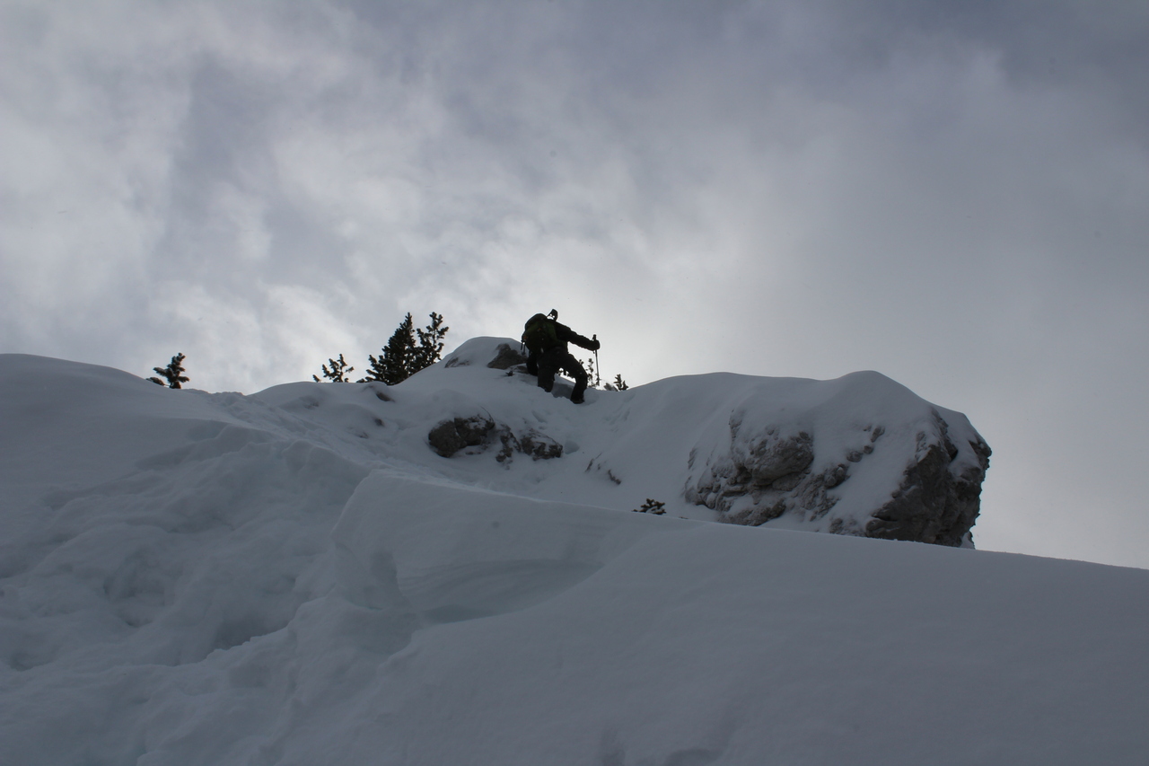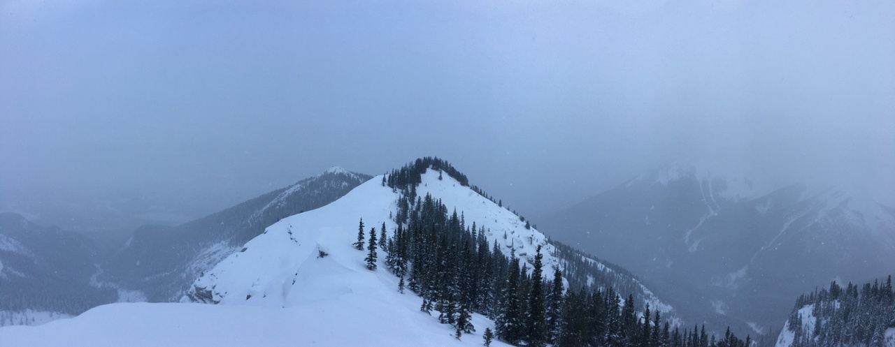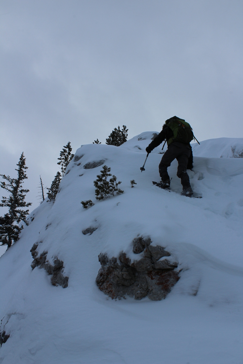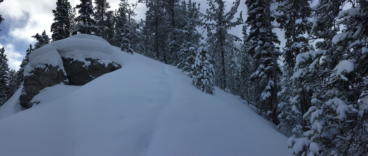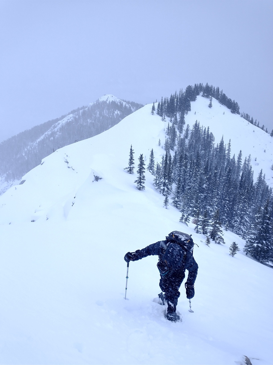 Notes: While just a mere hike in summer, expect some serious trail-breaking and a short, steep crux if ascending directly up the north ridge. An easier bypass can be taken around the east side, which we explored on descent.
